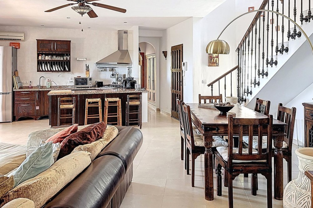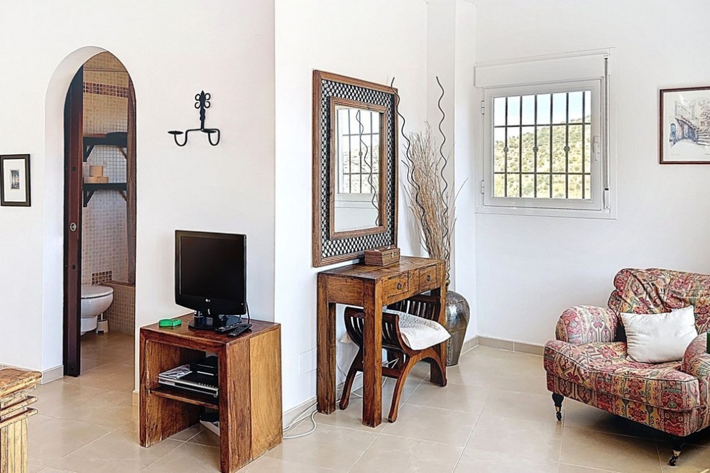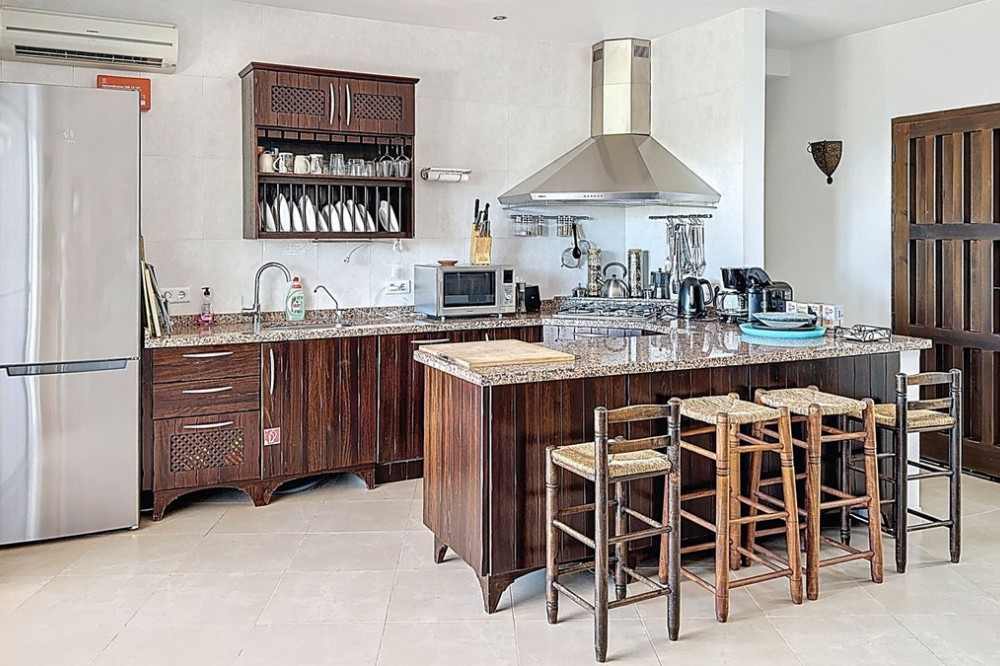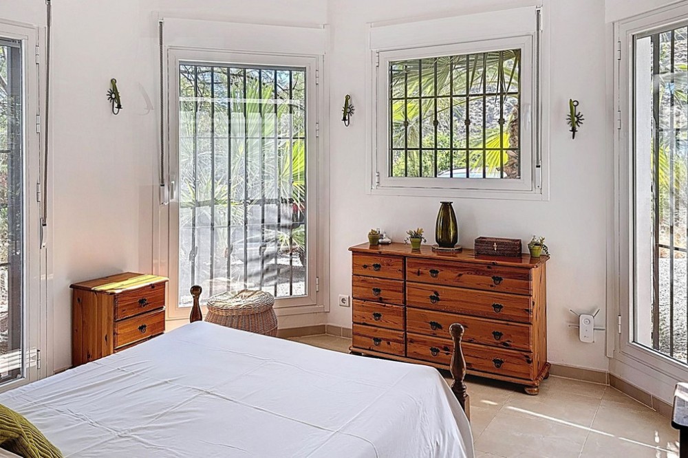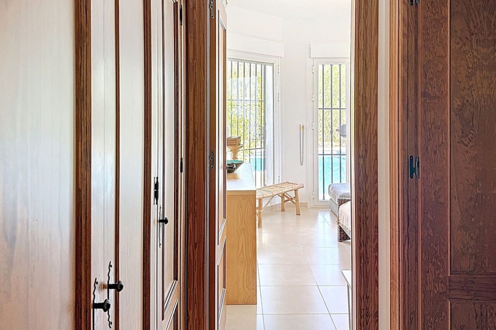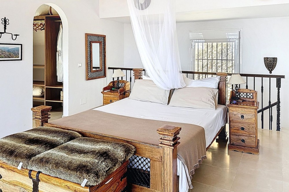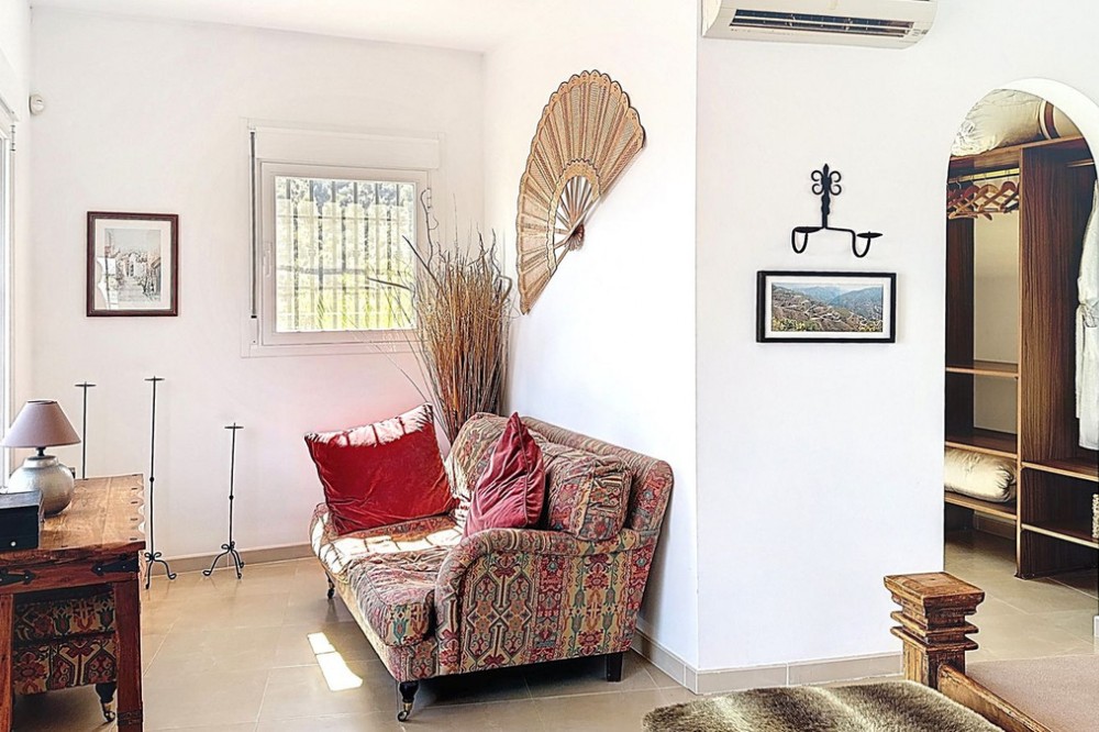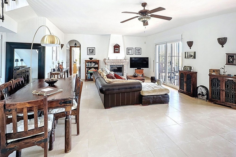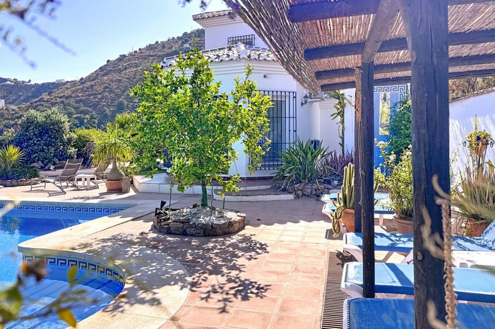 - Are you dreaming of a life under the Spanish sun, surrounded by peace, space and ultimate comfort? This bright and elegant villa, located between Vélez-Málaga and the charming village of Arenas, offers exactly that. With panoramic views over the lush valley and the shimmering Mediterranean Sea, you can enjoy the very best of Andalusia every single day. Large sliding doors in the living room, dining room and modern open-plan kitchen flood the interior with natural light and open directly onto the covered terrace, where outdoor living blends seamlessly with indoor comfort. The inviting living room with its fireplace creates a cosy atmosphere on cooler evenings, while air conditioning ensures a pleasant climate throughout the year. The villa features three spacious bedrooms and three stylish bathrooms, two of which are en suite. The master bedroom is a true highlight, boasting a generous walk-in closet and a private balcony where you can peacefully take in the sea views. Outside, the enjoyment continues effortlessly. The large private swimming pool measuring 10x5 metres provides refreshment and relaxation with unobstructed sea views. The covered terrace is perfect for long summer days and atmospheric evenings, while the private sauna adds a touch of luxury to your daily life. Additional amenities such as a storage room, solar panels, an electric gate and a security system make this property both safe and sustainable. The location is ideal: the beaches of Torre del Mar, the shops of Vélez-Málaga and various facilities are just a short drive away. Málaga airport and popular destinations such as Nerja can be reached in under an hour. Whether you are dreaming of a second home, considering a permanent move, or looking for a valuable investment, this villa combines luxury, comfort and an exceptional location. Easily accessible via a paved road. There is a rental license in place with a strong rental history. A unique opportunity to secure your place under the Spanish sun.