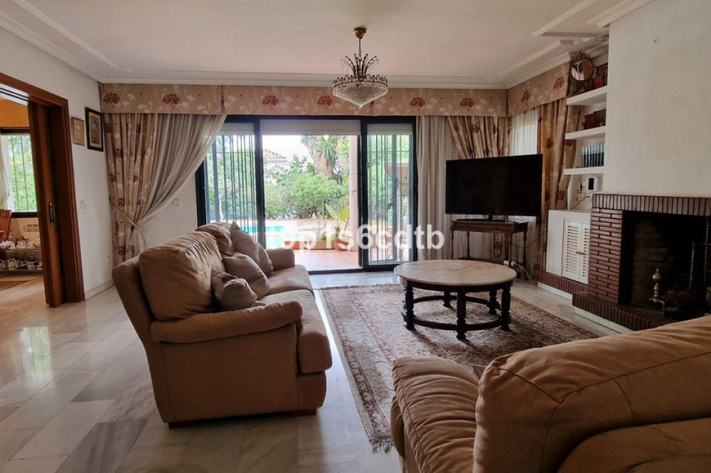 - IDEAL HOME AND INVESTMENT. Fantastic detached villa with beautiful panoramic sea and mountain views, ready for renovation, located in the northern residential area of Marbella's urban center, El Mirador, with all kinds of services nearby and the historic and commercial center just a 3-5 minute drive away. A great opportunity to convert a beautiful Andalusian-Mediterranean style house into a modern home, in a fabulous location, with international schools, public transportation, supermarkets, sports clubs, and top-class golf courses nearby. It also has easy access to the AP-7 and N-340 motorways, and Málaga city and the international airport are just a 40-minute drive away. Currently, it has a multitude of spaces that allow for a wide range of possibilities. The property, distributed over two levels plus a small basement, consists of: - 2 living rooms; one on the lower floor and one on the upper floor, both with fireplaces. - 2 dining rooms; A master bedroom, located next to the ground floor living room, and a separate living room, located next to a large kitchen. The ground floor also includes a hall, a toilet, an office/bedroom, a porch, a laundry room, and a BBQ. The upper floor, in addition to a second hall and the second living room, has two bedrooms with en-suite bathrooms, and two more with a shared bathroom. A balcony. Two of the bedrooms have panoramic views of the sea, and on clear days, Africa and Gibraltar, while the other two have views of Sierra Blanca and La Concha. A garden with mature trees and vegetation, a fantastic pool, charming porches surrounding the house, and covered outdoor parking for two cars. It features: Hot water with solar panels, its own water tank, and a propane tank for heating. An alarm system. In short: This is an ideal property to invest in and convert into an ideal family home or second residence, either for personal use or with a view to renovating and reselling, as it is a highly sought-after and highly valued area of Marbella, ideal for high-end families.