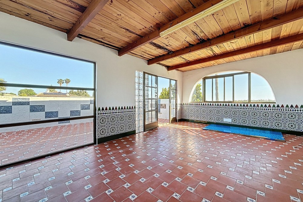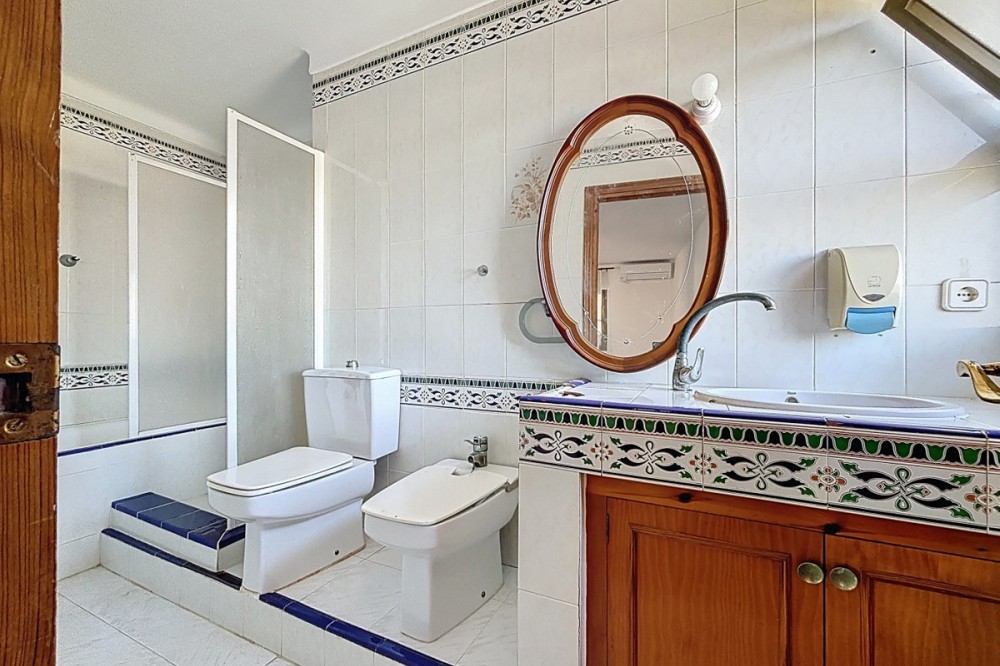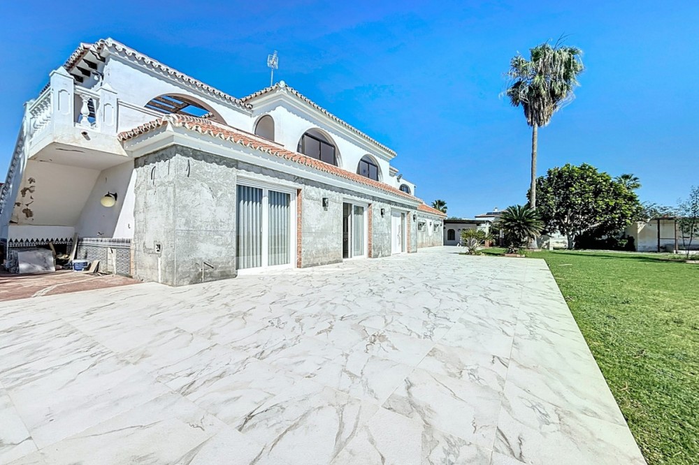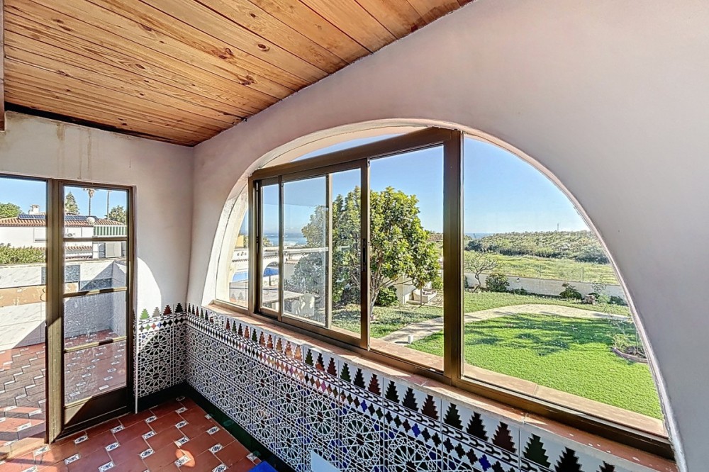 - This villa in Almayate stands out for its spaciousness, versatility and excellent possibilities both as a family home and as an investment. The property has a large garden with a private pool and a cosy guest house, offering an ideal setting to enjoy the outdoors and the Mediterranean climate. The main house is distributed over two floors, each with a separate entrance. On the ground floor, completely renovated in a modern style, we find 4 bedrooms, 3 of them with en-suite bathrooms (currently to be finished), an office, a full bathroom, a toilet, a spacious living room and a functional kitchen. The upper floor has 2 bedrooms and 2 bathrooms, as well as a terrace from which you can enjoy beautiful views of the sea. This level also offers the possibility of further building, further expanding the potential of the house. The guest house, located in the garden, is equipped with a bedroom, bathroom, living room and kitchen, ideal for visitors or for holiday rental. Below the main house there is an additional floor that can be flexibly fitted out as a living space or for various uses, which adds even more possibilities to the property. In addition, the property has two garages and enough outdoor space to park several vehicles comfortably. In addition to all this, there is an independent plot of 2,300 m2 with fruit trees, which provides additional value both for private use and for agricultural or leisure projects. Due to its characteristics and layout, the villa offers great potential for tourist rental type B&B, which makes it a very attractive opportunity both to live in and to invest. We are delighted to be able to present this property to you soon, either personally or via virtual viewing. Because this world is unique - like our Axarquía. In Andalusia. On the Costa del Sol. Here, on the sunny side of life...