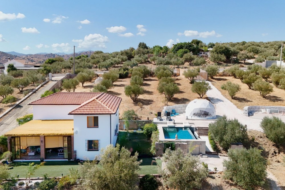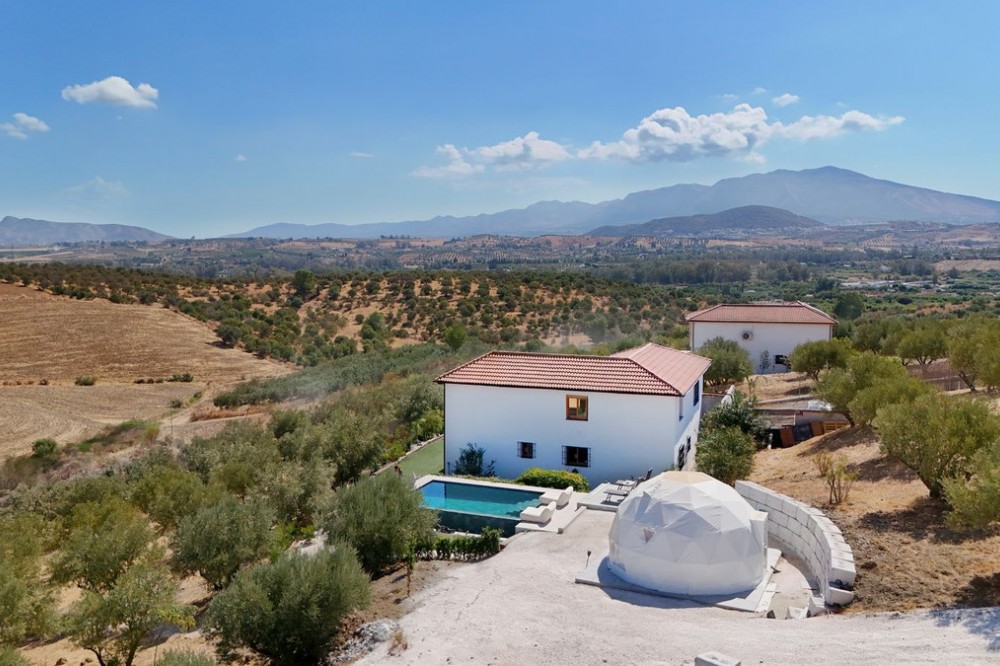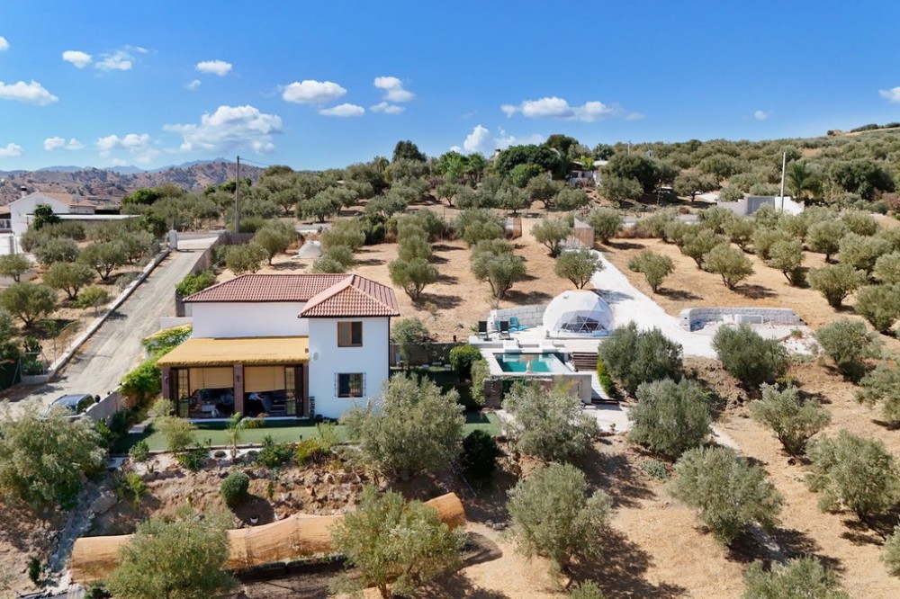 - Charming Finca with AFO, salt water Pool & Prime Location in Coín In a paradisiacal setting, just 13 minutes from Coín, lies this beautiful finca with AFO on a 6,395 m² fenced plot. With 190 m² built over two floors, the property offers comfort, character, and great potential for expansion. Most of the access road is asphalted, except for the last kilometre. Key features: • 2 bedrooms & 2 bathrooms (1 en-suite) • Attic (approx. 80 m²), ideal to convert into an independent apartment with private entrance • Spacious living-dining room • Bright kitchen & storage room • 40 m² glazed terrace – currently used as a second living room with nature views • Beautiful pool surrounded by gardens, a dome and an outdoor yoga area • Small vegetable garden & chicken coop • Only one neighbour – maximum privacy guaranteed Additional amenities: • Double-glazed windows with mosquito nets • Water supply via 10,000-litre tank (to be refilled occasionally) • Approx. 120 olive trees – your own olive oil production Location: • Coín centre – 9 km • Alhaurín el Grande – 14 km • Málaga Airport – 37 km • Marbella – 39 km A unique retreat for nature lovers, combining peace, privacy, and expansion potential in an unbeatable location. Legal Notice: This summary is for informational purposes only and serves only as a guide to potential buyers and does not constitute an offer or contract. Some information has been verified, but each interested party should confirm its accuracy through independent inspection and verification. Statements are made without liability for either the agency or the seller; each client is responsible for their own decisions and search. No statement should be construed as a formal representation; you must conduct your own research and inform yourself. The agency, as an intermediary party, is not responsible for any claim under any circumstances. The agency or its representatives have no authority to make any guarantees or warranties regarding the property. Nothing herein guarantees the good condition of the property, its services, or equipment; you should inspect everything yourself. Photos may not reflect everything; viewing the property in person is recommended. Avoid assumptions about areas not shown in the images. Measurements and square footage are approximate. Mention of modifications or use does not imply approval of permits or regulations. Prices do not include taxes such as VAT or property transfer (ITP), where applicable. The agency may withdraw from the market, modify the listing, or change the price without prior notice.