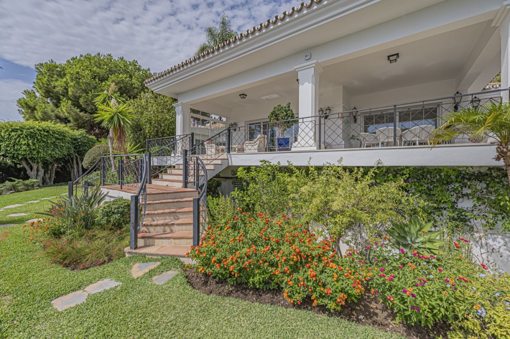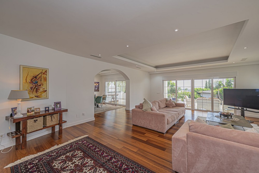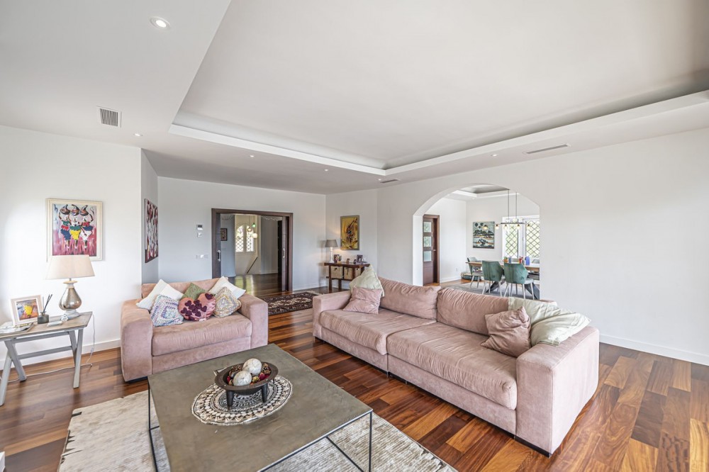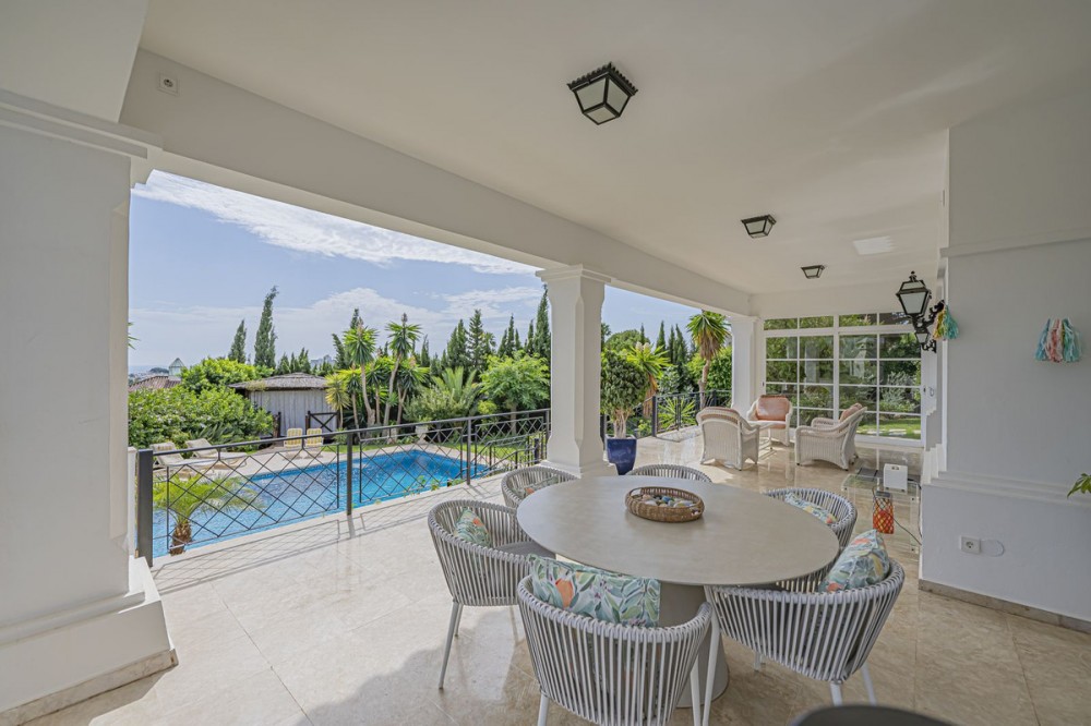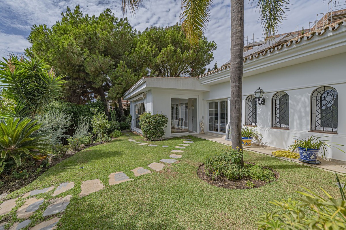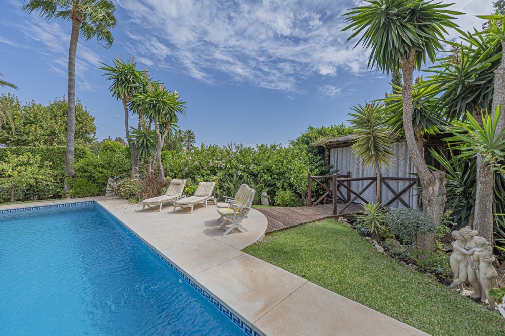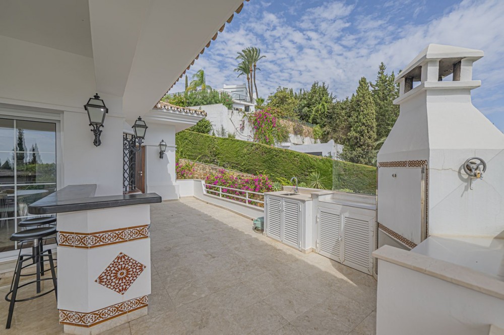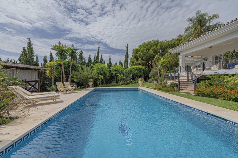 - VILLA WITH LARGE PLOT NEXT TO EL PARAÍSO GOLF Elegant and bright villa located in the exclusive and peaceful area of El Paraíso, next to the prestigious golf courses of El Paraíso and Atalaya, just a few minutes from all amenities and the beautiful beaches of Costalita. The property, comfortable and functional, is mainly distributed on one level plus a semi-basement. On the main floor, you will find three spacious bedrooms with en-suite bathrooms, a large living room with dining area and direct access to a fantastic terrace, as well as a generous independent kitchen and a guest toilet. The lower floor offers a fourth bedroom with bathroom, a cosy sitting area, office, additional toilet, storage room, and a garage for two cars. Outside, the villa sits on a large plot of almost 2,000 m², surrounded by mature gardens and featuring a private swimming pool – ideal for enjoying the Mediterranean lifestyle. An ideal property for those looking for space, comfort, and privacy in an exclusive and quiet area, just minutes away from all services.