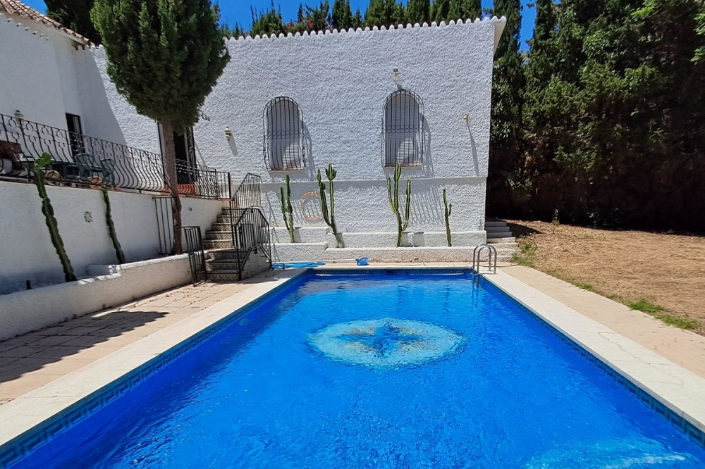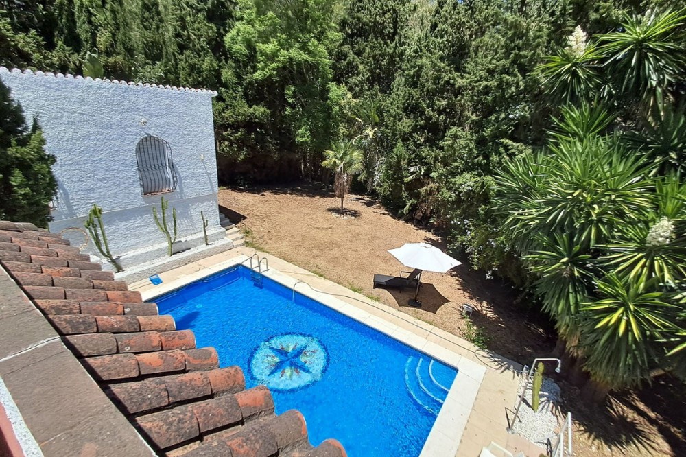 - Spectacular Villa for Sale in Calahonda! This impressive property features 12 rooms in total, currently laid out as 7 bedrooms, offering tremendous potential to adapt the space to your needs. Beyond its 227 m², the villa includes a spacious lower level, providing remarkable extra living space and versatility—perfect for a home cinema, games room, independent apartment, additional bedrooms, or any project you can imagine. Discover this magnificent property, a true gem on the real estate market. With spacious, light-filled rooms, a recently renovated kitchen, and large windows that bring elegance and character, every corner of this villa is designed to be fully enjoyed. The villa stands out for its unique architectural features, such as vaulted ceilings that enhance natural light and stained-glass details at the entrance, giving it a refined and timeless style. Its majestic presence awaits a new owner ready to unlock its full potential. A cozy fireplace adds warmth and personality to the home. Outside, enjoy a private pool, exclusive parking, and the serenity offered by high privacy, as the villa is located at the end of the street. This makes it ideal for a boutique hotel, guesthouse, private activities, or simply a luxurious, secluded family residence. With a vintage style, wooden columns, and two completely separate wings—each with two internal floors and up to three external levels—this property is perfect as a primary residence, holiday home, or hospitality project. Located just minutes from the A7 and AP7, it offers excellent connectivity while maintaining privacy thanks to large pine trees and mature landscaping. This villa combines space, versatility, and privacy, making it a unique opportunity not to be missed. Call now to arrange your visit!