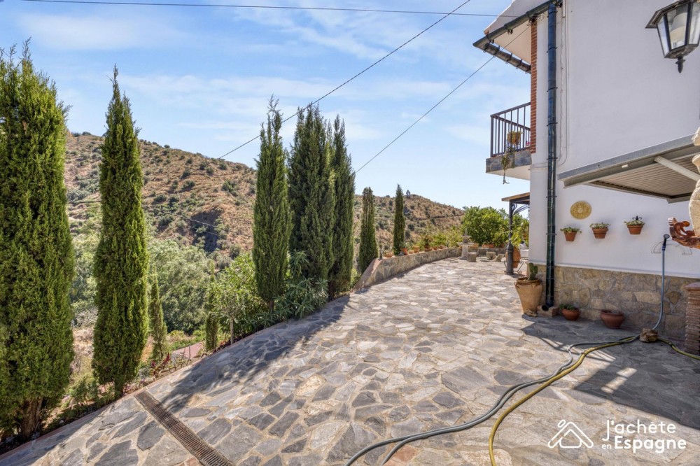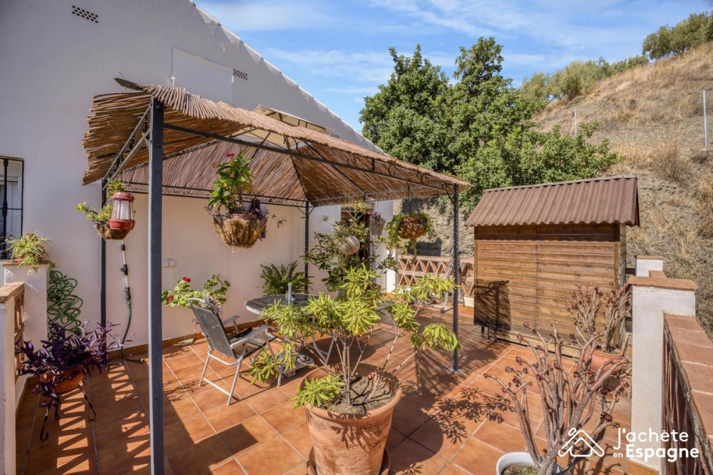 - For Sale – Detached House with Lush Garden and Stunning Nature Views Near La Viñuela – Andalusia, Spain Detached house of 203 m² over two floors | Tree-lined plot with a blooming garden A true haven of peace in the heart of the Andalusian countryside! Located just 8 minutes from the village of La Viñuela, this charming 203 m² home offers a peaceful lifestyle, with no overlooking neighbors and breathtaking open views of the surrounding mountains and countryside. ✅ Property Description: 4 spacious bedrooms, including one on the ground floor 3 bathrooms in total, including one on the ground floor Large, bright living room Generous outdoor terraces on the ground floor + 2 private terraces upstairs accessible from the bedrooms Landscaped garden with fruit trees and a variety of plants and flowers Enclosed garage + driveway with space for multiple vehicles Quiet, green environment with complete privacy An ideal place for lovers of gardening, peace, space, and nature. Location & Access: – 8 min (3.5 km) from La Viñuela and its amenities – 17 min (7.6 km) from Canillas de Aceituno – 22 min (14.6 km) from Vélez-Málaga – 25 min (18 km) from the beaches of Torre del Mar – 50 min (62 km) from Málaga International Airport Easy access: only 20 minutes from the highway exit – including 12 min on a main road and 8 min on a two-way road. Good to Know: This property is ideal as a primary residence, holiday home, or seasonal rental project. No overlooking neighbors, serene setting, generous features throughout.