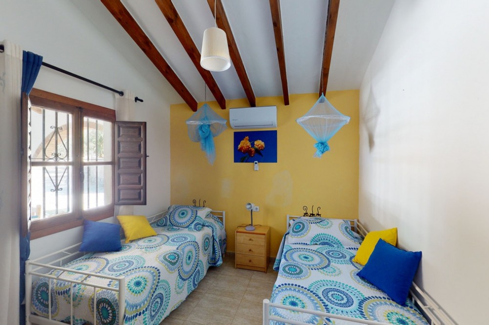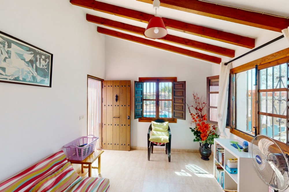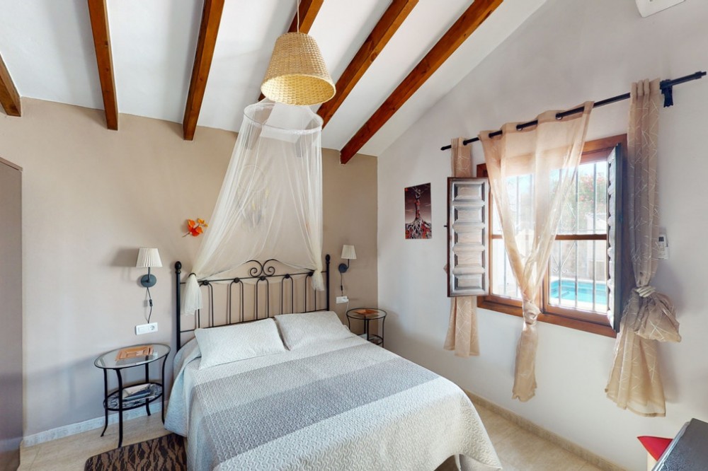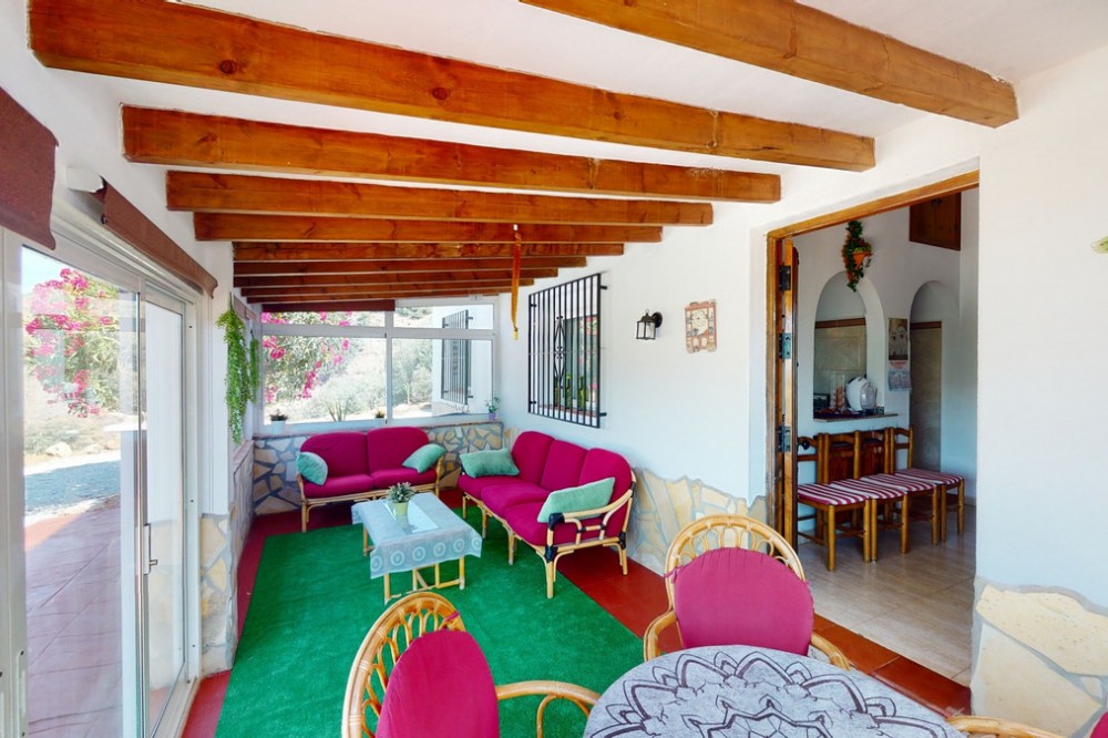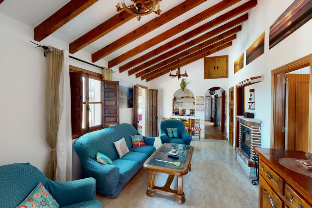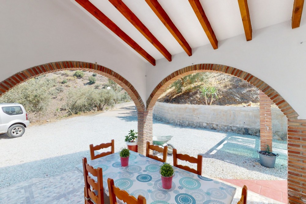 - Beautiful country house, with absolute privacy and spectacular views of the town, the countryside and the mountains, located five minutes from the town of El Borge. It has more than four hectares of land with olive trees, mangoes and vines. It has two large water tanks, one with 3,000L capacity and another one with 100,000L. In the outdoor area there is parking space for more than three vehicles, a pool with sun loungers, a bathroom and barbecue and it also has a small house, that could be made into a separate guest apartment. In the main house we find a large kitchen with a dining room, a spacious living room with a fireplace and an winter garden. There are also two bedrooms and a room, that could be used as another bedroom. One would just have to add a door. A separate guest apartment with an bathroom on-suite is located right next to the main house. The house is licensed for rural rentals and produces interesting annual benefits. This is a perfect home for residential use or as an investment. We are pleased to be able to present this dream property to you soon, either personally or via virtual viewing. Because this world, it is unique - just like our Axarquía. In Andalusia. On the Costa del Sol. Here, on the sunny side of life...
