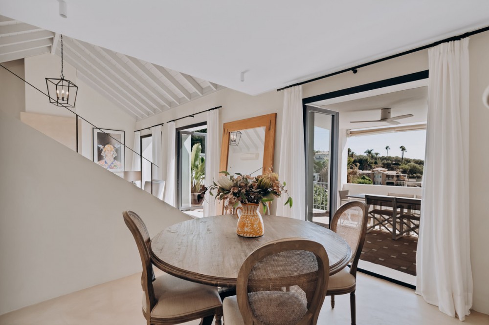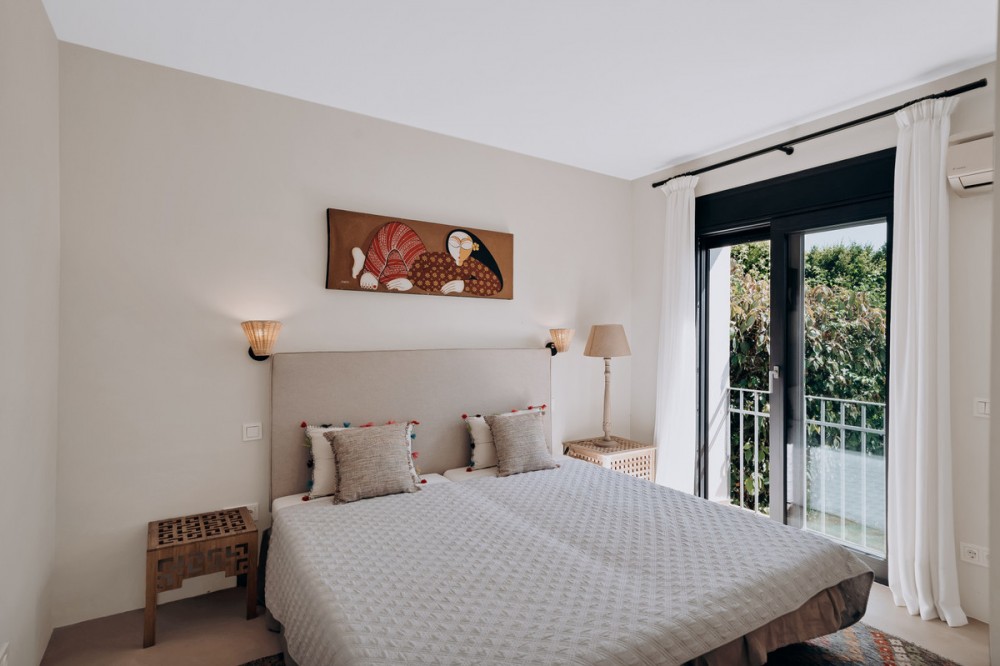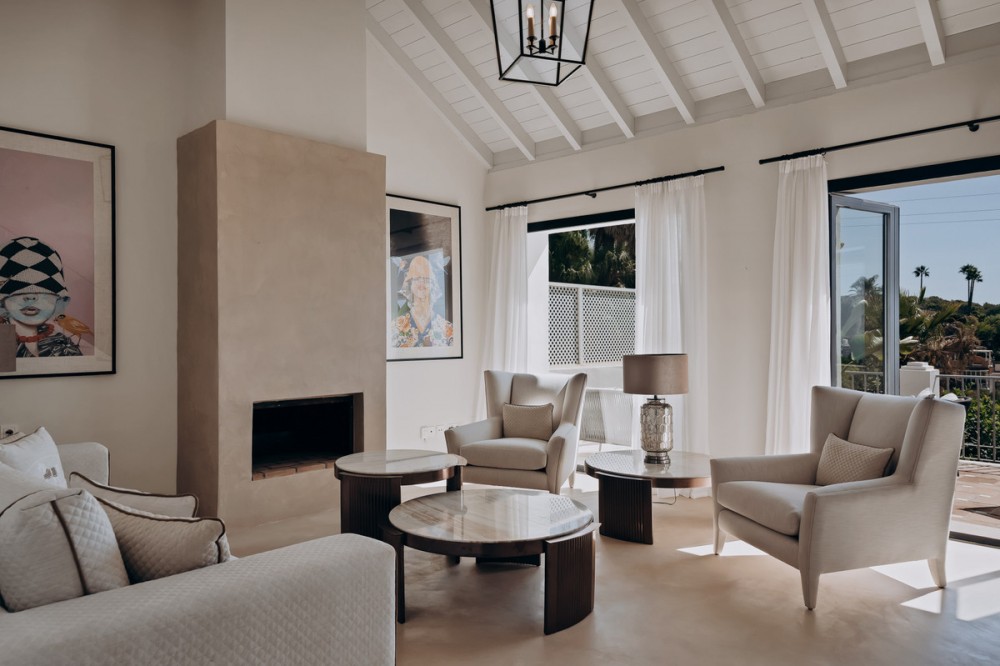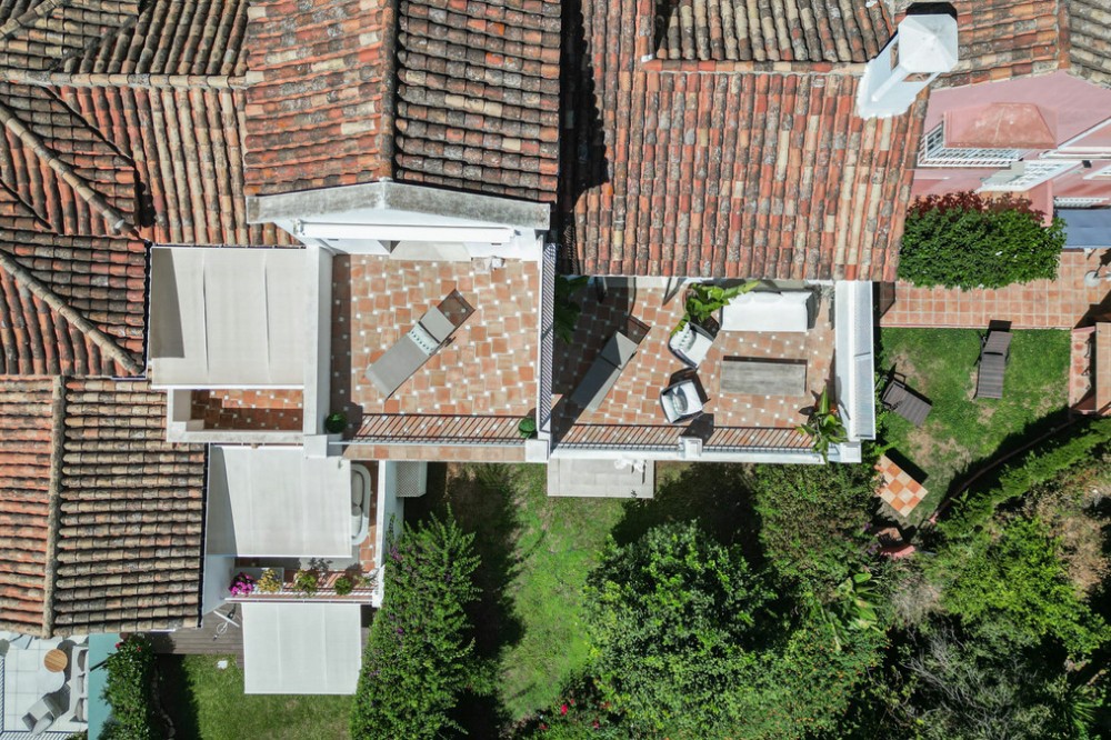 - Located in the exclusive Marbella Hill Village, within the prestigious gated Marbella Hill Club, this elegant townhouse offers a rare combination of charm, privacy, and panoramic views. Just five minutes from Marbella Club, Puente Romano, and the Golden Mile, it enjoys one of the most privileged addresses on the Costa del Sol, nestled between the Mediterranean Sea and La Concha mountain. The entrance sets the tone with a private patio shaded by orange trees and flowering plants, creating a welcoming Mediterranean atmosphere. Inside, the main living area impresses with high ceilings, a real fireplace, and uninterrupted sea views from every window and even from the sofa. The modern kitchen, fitted with premium international brands, connects seamlessly to the dining room and opens onto a south-facing terrace with remote-controlled shades – ideal for enjoying Marbella’s mild climate year-round. Upstairs, the master suite features a stylish ensuite bathroom, a spacious walk-in closet, and a large terrace with stunning sea views. On the garden level, three additional bedrooms and two bathrooms open to a private garden also overlooking the Mediterranean. This floor is completed by a cinema room, storage space, and a laundry room – ensuring both comfort and practicality. With approximately 184 m² of interior space, 55 m² of terraces, and a 149 m² private garden, the property is perfectly oriented to the south-southeast, guaranteeing abundant natural light, sunny mornings, and mild winters. The home is offered ready to move into, with the flexibility to purchase furnished or unfurnished. As part of Marbella Hill Club, residents benefit from 24-hour private security and controlled access, ensuring peace of mind in one of Marbella’s most desirable enclaves. World-class golf courses, exclusive beaches, fine dining, luxury shopping, and the vibrant nightlife of Puerto Banús are all just a short drive away. Whether as a permanent residence, a holiday retreat, or a secure investment, this townhouse offers the best of Marbella living: elegance, comfort, and the perfect balance between sea and mountain.