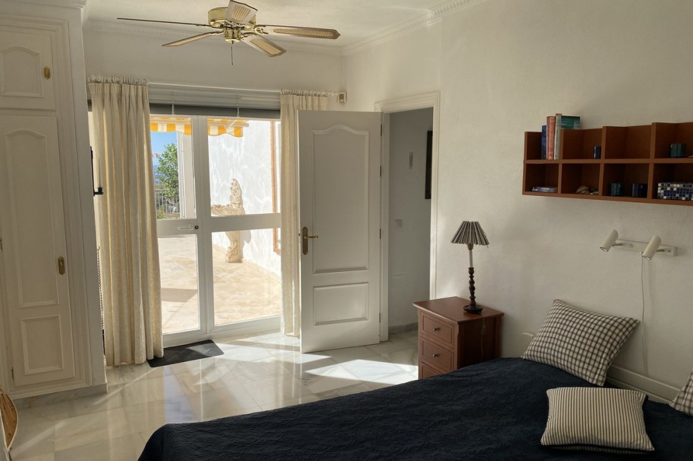 - A RARELY AVAILABLE SINGLE LEVEL VILLA IN A HIGHLY SOUGHT AFTER POSITION CLOSE TO THE WHITE WASHED AND HISTORICAL VILLAGE OF MIJAS Panoramic sea, mountain and country views. South orientation and driveway and garage parking. AT A GLANCE 4 BEDROOMS 3 BATHROOMS - 2 EN SUITE COMPLETE PRIVACY PANORAMIC VIEWS POTENTIAL TO IMPROVE This lovely property is located at an end of a small cul de sac with just 2 other neighboring villas. Electric gates with driveway parking along with a large single garage with additional storage. Entrance porch, reception lobby, spacious lounge/diner with feature fireplace and direct access to a terrace, garden and pool. Fully fitted kitchen, with the easy possibility to enlarge in order to create a kitchen/ breakfast room. Master bedroom with en suite and access to the garden. 3 further double guest bedrooms, one with an en suite and the others served by a family bathroom. OUTSIDE Private gardens, boasting lovely sea views and an 8m x 4m pool. ADDITIONAL FEATURES DOUBLE GLAZING PART AIR CONDITIONING HOT/COLD GAS FIRED HEATING GUTTERING MIJAS VILLAGE 5 MINUTES BEACH AND FUENGIROLA 12 MINUTES MALAGA 25 MINUTES MARBELLA 25 MINUTES