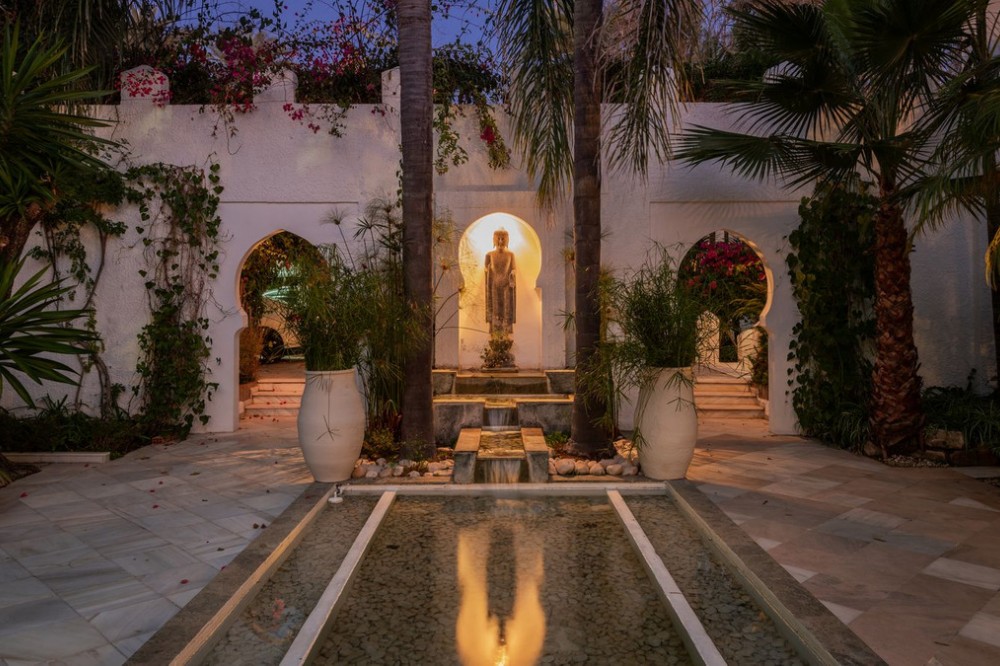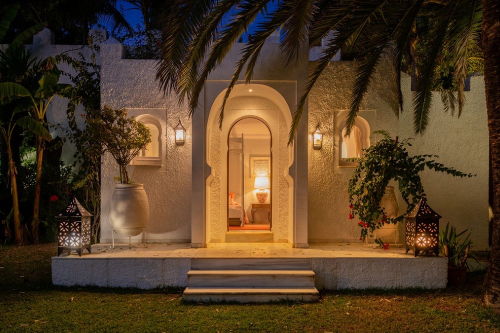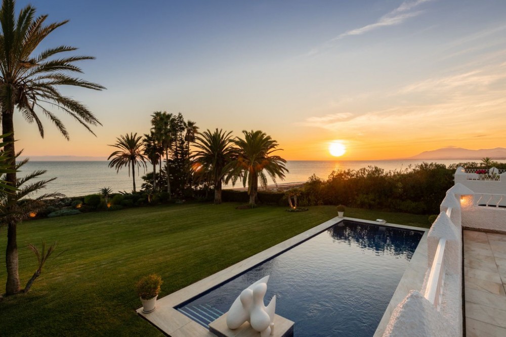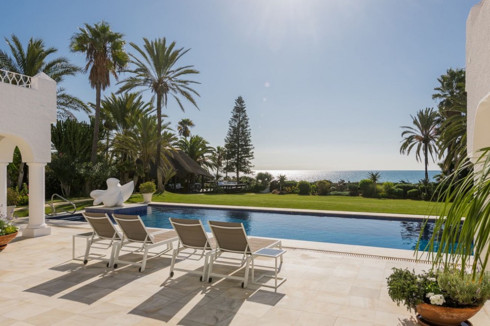 - With its spectacular setting, beautiful mature grounds, luxurious villa and of course unique pedigree, this is truly a unique property in Marbella. There are many impressive villas occupying prime frontline beach locations along the Marbella shoreline, but along the sandy beaches of Los Monteros – the finest address on the east side of town – there is a superb property whose beachfront setting and sea views simply will never be equalled. What’s more, it’s a mansion whose very pedigree is part of the glamorous story of Marbella itself. The former home of American socialite Aline Griffit hand her husband, Luis Figueroa y Pérez de Guzmán el Bueno, Count of Romanones., Villa Annabel was the backdrop to some of Marbella's glitziest parties. She had a circle of high-powered friends that included Jackie Kennedy, Audrey Hepburn and Wallis Simpson, many of whom she hosted at this beach-front house. Marbella is full of exotic-looking villas, but few boast the glitz, mystery and intrigue are woven into the fabric of Villa Annabel, one of the area’s most extraordinary properties. This opulent villa stands in grounds of a little more than an acre Los Monteros, one of Marbella’s most exclusive addresses. Grand and sophisticated, Villa Annabel is ideal for entertaining — especially because the interiors flow seamlessly into a vast terrace and the mature gardens beyond. Indeed, the house was the backdrop for some of Marbella’s most glamorous parties. The story of this splendid beachside villa leaps off the pages of a novel, for it was originally built for the daughter of a Spanish head of state, who settled here in favour of Madrid in the 1950s, attracted by the benevolent climate and lifestyle of Marbella. Already a burgeoning centre of refinement loved by an international set, the town provided her with the company of many of Europe, and indeed the world’s, most elegant and fascinating personages, from royals and business tycoons to top celebrities. The villa, built in privileged private proximity to the beach – a feat that can no longer be copied – stands alone in offering the most stunning views and personal experience of beach, sea, skies and privacy, surrounded as it is by extensive manicured grounds. Together, they envelop the property in a rich variety of floral and seaside tones, textures and fragrances, accompanied by the soundtrack of the sea. Not only is this a singularly beautiful spot, but it is also very private, bordered only by other large properties with extensive garden.