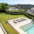 - Sole Agency - Exclusive Listing Barnes Marbella presents this magnificent 9-bedroom villa at La Reserva del Alcuzcuz, a highly sought-after gated community set in quiet, family-friendly streets, with apartments, villas and building plots in verdant surroundings on the Benahavis road. 70% of the municipality of Benahavis has been declared an “area of environmental importance”. Another advantage of this magnificent region is its microclimate, provided by the Serrania de Ronda and the Sierra de las Nieves, a UNESCO Biosphere Reserve. Nestled in the hills to the north of the Los Arqueros golf and country club, the complex boasts breathtaking panoramic views of picturesque surroundings, the Mediterranean Sea and the African coastline. It enjoys a privileged location, in the heart of idyllic nature and just a few minutes' drive from the coast and legendary Puerto Banus. All amenities are nearby: banks, supermarkets, restaurants, shops, cafes, as well as some of the best golf courses and tennis clubs in the region. La Reserva del Alcuzcuz is located just across the road from the entrance to La Heredia, an ideal interpretation of a pretty Mediterranean village with a multitude of local shops and services, including a bistro-bar, a Dutch bakery, and an artisan butcher. The amenities of San Pedro de Alcántara are 5 minutes away, as are the Blue Flag beaches and luxurious facilities of Puerto Banus, Nueva Andalucia's Golf Valley, and Marbella-10. Malaga and Gibraltar International Airports are both less than an hour away. Surrounded by the same high-end properties and lush greenery as Benahavis, this spectacular 1,158 m² villa sits on a large 3,560 m² plot. This stunning property meets modern standards, offering respect for the environment, tranquility, privacy, and luxury. It boasts magnificent views of the Los Arqueros golf course, the lush green hills and pine-covered mountains of the Mediterranean, as well as stunning panoramic views of the coast and sea as far as Africa. This elegant architectural masterpiece, featuring refined features, comprises a ground floor, a first floor, and a basement. It impresses with its spacious and bright living and dining areas, a modern and elegant fully equipped kitchen, 298 m² terraces, 9 suites with private bathrooms, a wine cellar, and a games room. In addition to the living, reception, and entertainment areas, this house also features a laundry room, a storage room, a dressing room, two guest toilets, and a full bathroom for the housekeepers. Glass doors and huge windows allow natural light to flood the entire house. The rooms open onto magnificent terraces, a subtropical garden with lush lawns, landscaped areas, and a sun terrace. A stunning 12 x 6-meter swimming pool with a sea salt filtration system invites you to cool off on hot days or host memorable parties all year round. The Marbella region is renowned for its climate, considered the best in continental Europe, and your pool is heated. A glass-enclosed gazebo and relaxation area complement a fully equipped kitchen, ideal for barbecues and al fresco dining. A private garage can accommodate four of your favorite cars. This high-end contemporary villa embodies the art of luxury living and is offered for sale with numerous features, including an elevator, parquet flooring, underfloor heating and air conditioning throughout, built-in wardrobes, LED lighting, and more. The neutral color palette creates a truly peaceful atmosphere. Ultramodern and relaxing blend seamlessly in this luxury property, seamlessly blending Mediterranean elegance and functionality.