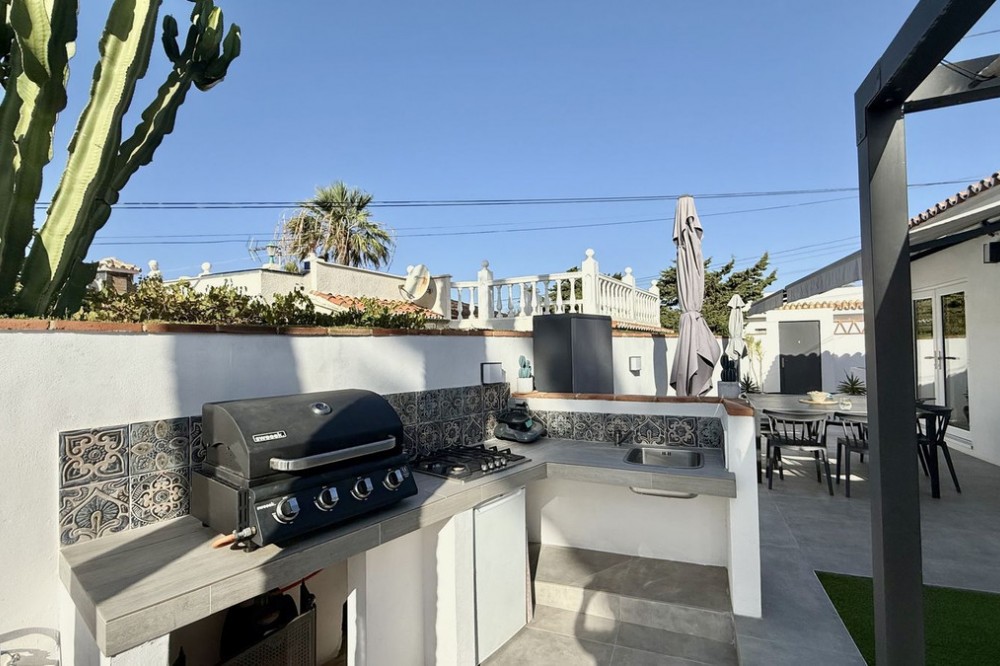 - AMAZING OPPORTUNITY - RENOVATED 3 bedrooms villa with sea views and expansion potential - walking distance to the beach and all amenities! Beautifully decorated villa offers with solarium offers the perfect opportunity for an investor or a family looking for a dream home. Set on a nearly 300 m² private garden plot, the home is just a short walk to the picturesque El Faro beach, one of Mijas' most desirable coastal spots. From the solarium, enjoy stunning sea views and plenty of sunlight all year round – ideal for relaxing or entertaining guests. Whether you're looking for a peaceful family home by the sea or a property with great rental potential, this villa ticks all the boxes. Don't miss out on this unique opportunity! El Faro, Mijas – A Coastal Gem with Andalusian Charm El Faro is a quiet and picturesque seaside area located between Fuengirola and La Cala de Mijas, right in the heart of the Costa del Sol. Known for its relaxed, family-friendly atmosphere, El Faro blends the essence of Mediterranean living with a strategic location just minutes from all local services and attractions. El Faro is also very well connected: just 25 minutes from Málaga Airport and close to golf courses, shopping centers, restaurants, and international schools. Perfect for those looking for peace and quiet without being far from urban conveniences, El Faro is a hidden gem with great investment potential.