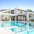 - Spanish Living Group are proud to present this boutique development of 10 modern design villas, set in the privileged area of El Chaparral in Mijas Costa. El Chaparral is an exclusive urbanization of luxury villas situated in between Fuengirola and Marbella and only 20 minutes drive from Malaga airport. The excellent El Chaparral golf course is located only a few hundred meters from the villas. This 18-hole golf course is surrounded by an impressive natural pine forest. This is one of the few places in the world where you find this special variety of pine trees which forms a spectacular scenery with the golf course nestled in between and with views of the sea and the mountains. The picturesque village of La Cala de Mijas is only minutes away by car or a mere 20 minute walk along the beach. In La Cala de Mijas you can find an abundance of nice restaurants, shops, supermarkets and some great wine bars. This area has become increasingly popular in recent years thanks to the fact that the original village has maintained its Andalusian charm while new modern apartments, townhouses and villas have been built in the newer area behind the village, yet less than a kilometer from the beach. The villas all benefit from large open spaces. When entering the property, you find yourself in a grand hall with double height ceilings, leading into a bright and spacious living-room with a fireplace and vaulted ceiling. Adjacent to the living-room, you enter a separate dining area that opens to an amazing state-of-the-art kitchen featuring an impressive cooking island. The ground floor enjoys direct access to a lush Mediterranean garden with a large private swimming pool. The main outdoor terrace is partly open and partly covered with a lovely designed pergola, so you can choose between sun or shade. On the ground floor we can also find a large bedroom with en-suite bathroom as well as a separate guest bathroom and a big utility room. You reach the top floor via a beautifully designed staircase which is an iconic architectural feature in itself. The master suite accommodates a spacious bedroom with views and a private south facing terrace as well as walk-in wardrobe and, of course, a luxury en-suite bathroom. On the top level of the villa there are two more bedrooms with built-in wardrobes and a bathroom. Each property has a private gated entrance leading up to a large covered carport with space for two cars. The properties are fenced off for privacy as well as security. The exterior retaining walls are built with "Casares stones" which are huge decorative boulders that give the properties an aspect of utmost luxury - even from the outside. The buyer has the possibility to buy the villa with an optional basement. This area can include a garage for two to three cars, a guest bedroom, bathroom, storage area as well as a room that could be made into a gym, games room or even a home cinema! Villas with 4 bedrooms, 3 bathrooms, from 1420.000 euros (excl. 10% VAT)