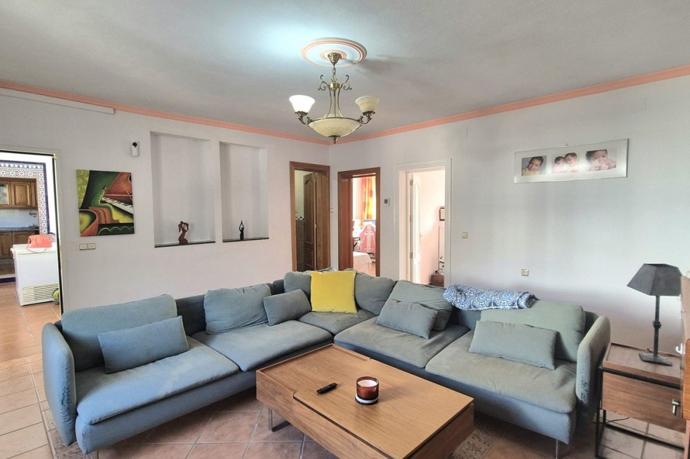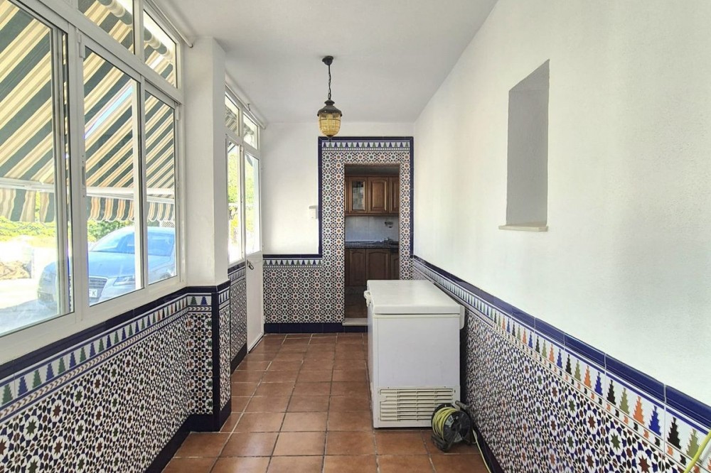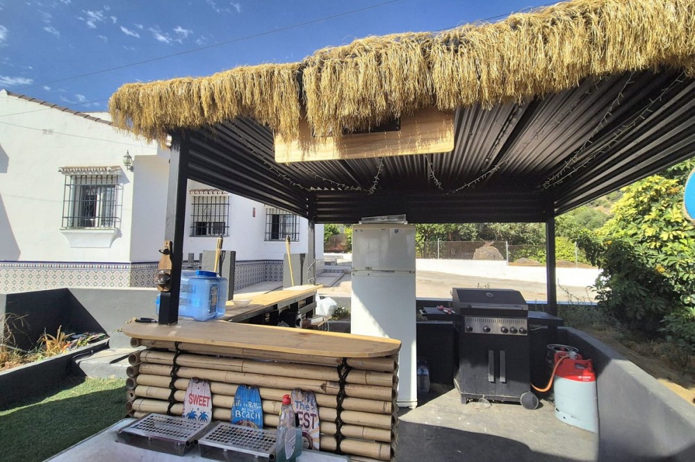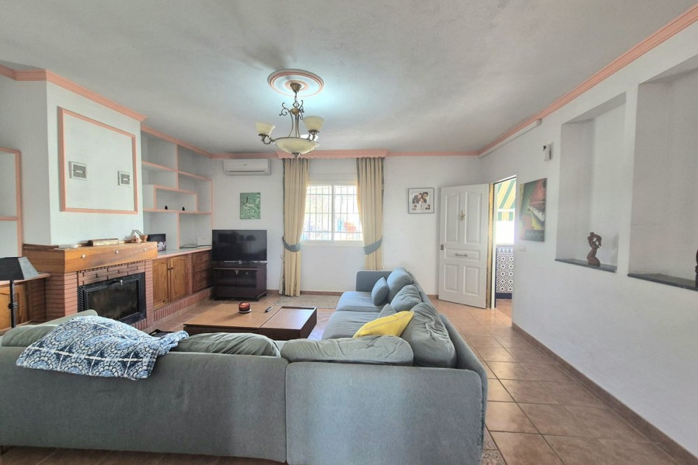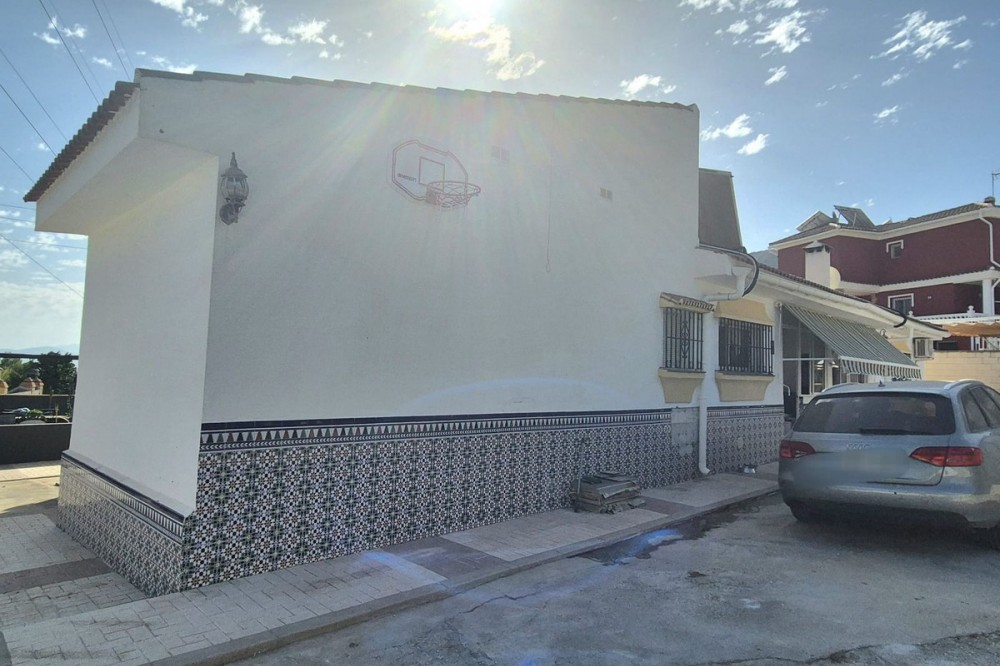 • Fantastic opportunity to purchase this one storey villa in Piños de Alhaurín, Alhaurín de la Torre. The property is located near the top of the urbanisation. You can enter the property which is fully fenced, either by a portal door or sliding electric gates, you have plenty of parking for at least 5 cars. You have several sitting areas and different spaces on the land to use as you wish and all mostly flat. To the left of the property you have a nice seating area with pergolas and outside kitchen with nice views to the valley and a small plunge pool. There are two entrances into the property, the main front door and a back entrance from the parking area into the hallway / kitchen. Through the main entrance you have a mudroom / wardrobe where you have space for coats and shoes, to the left you have the first of two living rooms, next to here you have the fully fitted kitchen, with access to a hallway and outside, to the right of the entrance you have 3 bedrooms and a bathroom. Back into the kitchen along the hallway there is the second large living room with fireplace and 2 bedrooms and a bathroom. This living room and one of the bedrooms has air conditioning. There is solar system water heating. Outside you have at the back space for a pool in the orchard area, there is a converted almacén that now has a living room, 2 bedrooms, a bathroom and a laundry area. Great opportunities here for family, to rent out, run a business... A must see, only a step away from the town and 15 minutes from Málaga airport.