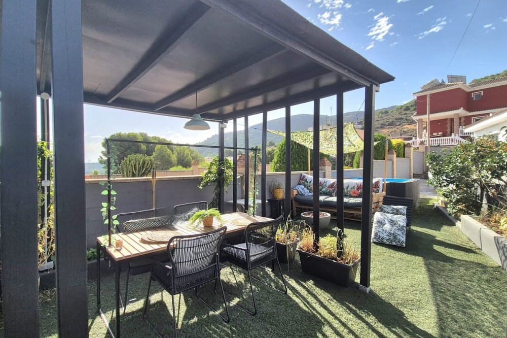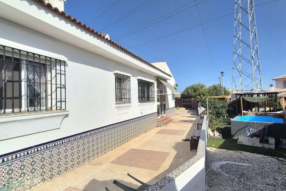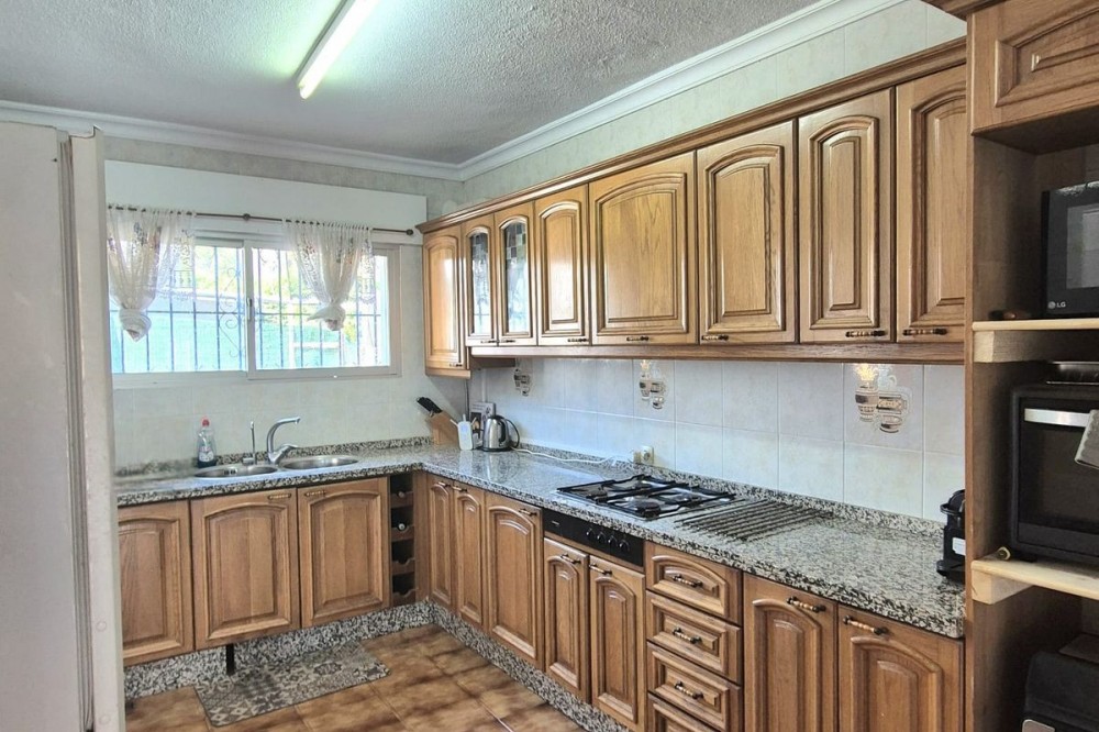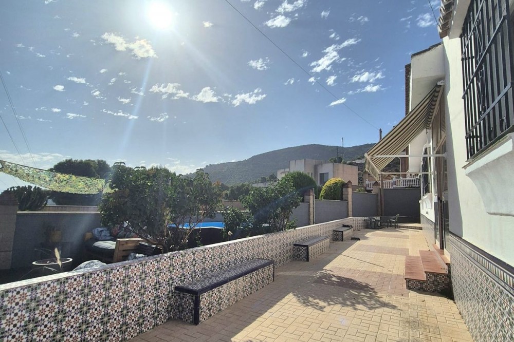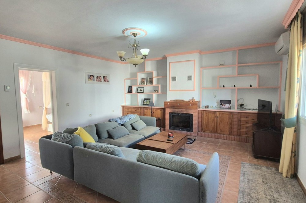 • Fantastic opportunity to purchase this one storey villa in Piños de Alhaurín, Alhaurín de la Torre. The property is located near the top of the urbanisation. You can enter the property which is fully fenced, either by a portal door or sliding electric gates, you have plenty of parking for at least 5 cars. You have several sitting areas and different spaces on the land to use as you wish and all mostly flat. To the left of the property you have a nice seating area with pergolas and outside kitchen with nice views to the valley and a small plunge pool. There are two entrances into the property, the main front door and a back entrance from the parking area into the hallway / kitchen. Through the main entrance you have a mudroom / wardrobe where you have space for coats and shoes, to the left you have the first of two living rooms, next to here you have the fully fitted kitchen, with access to a hallway and outside, to the right of the entrance you have 3 bedrooms and a bathroom. Back into the kitchen along the hallway there is the second large living room with fireplace and 2 bedrooms and a bathroom. This living room and one of the bedrooms has air conditioning. There is solar system water heating. Outside you have at the back space for a pool in the orchard area, there is a converted almacén that now has a living room, 2 bedrooms, a bathroom and a laundry area. Great opportunities here for family, to rent out, run a business... A must see, only a step away from the town and 15 minutes from Málaga airport.