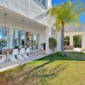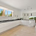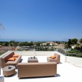 - Stunning contemporary-style villa located within a short distance to one of the best beaches in Marbella. Situated at the end of a cul-de-sac in a very peaceful and family-friendly area of other large villas, just 6 km from the centre of Marbella. Marbella Golf & Country Club and Santa Clara Golf are just a short drive away. This beautiful South-west facing property has been constructed with high-end quality materials. The property is built on 3 floors on a plot of 1438 m2 and is in very good condition. On the ground floor are 2 spacious lounge areas (one with biofuel burner fireplace), large central dining area with high ceiling, modern open-plan fully-equipped kitchen with built-in coffee machine and American fridge/freezer. Alongside the kitchen is a laundry room with washing machine and tumble dryer. There is also a guest toilet. On this level there is direct access through large sliding doors to a 70 m2 covered terrace with lounge area, dining area for 8 people and a large gas BBQ, all overlooking a lawned garden area with sea views. From this garden area there are 10 steps down to the large heated swimming pool which is very private. On the first floor of the property there is a bright seating/gaming area with floor to ceiling windows and 4 very spacious bedrooms, all with en-suite bathrooms and fitted wardrobes. The impressive master suite has spectacular views of the surroundings and the sea from its large private terrace. The second and third bedrooms also have superb sea views from a large, shared terrace. From the first floor are stairs up to the top level of the villa where you will find an impressive 90 m2 roof terrace with a covered dining area equipped with a gas barbecue and refrigerator along with a chill-out area from where you can enjoy majestic panoramic views of the Mediterranean sea and Marbella with its dramatic La Concha mountain range. The property has 2 gated driveway areas with parking for at least 6 vehicles. It is being sold fully furnished and also benefits from cream marble flooring, double glazing, hot & cold integrated air conditioning, electric persianas in the bedrooms, underfloor heating in bathrooms, alarm system and wireless Sonos home audio. The urbanisation is very quiet and safe with 24h security patrol. In the direct area you can find a selection of restaurants, supermarket, bakery, paddle/tennis court, gym/fitness centre and a children’s playground. Along the lovely sandy beach in both directions, there are a variety of restaurants, Spanish chiringuitos and beach clubs.