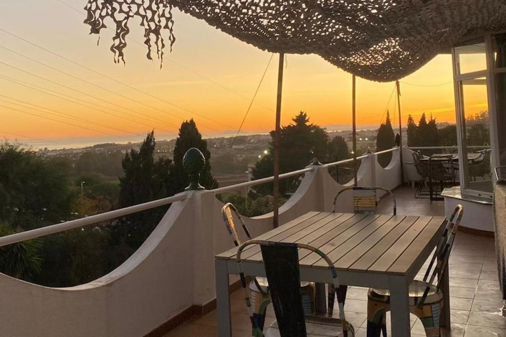 - Charming Mediterranean Villa with Panoramic Sea Views This elegant villa combines classic Andalusian style with generous outdoor spaces, offering a serene, bright, and welcoming atmosphere. Its white architecture, open terraces, and traditional details give it a unique Mediterranean charm from the very first moment. The property is distributed over two levels and designed to provide comfort throughout. On the main floor, you will find a spacious fully equipped kitchen with direct access to a sunny terrace — perfect for enjoying outdoor breakfasts. This level also includes a cozy living room and a guest toilet. The lower floor features the sleeping area, with three bright bedrooms, all with direct access to large private terraces, and two full bathrooms. The terraces, surrounded by greenery and offering spectacular sea and nature views, create the ideal setting for relaxation and disconnection. The villa also offers private parking with capacity for at least three vehicles and sits on a generous plot that ensures privacy and space to enjoy the authentic Mediterranean lifestyle. A unique opportunity for those seeking a home with character, open views, and a peaceful environment, just minutes from the beach, shops, and leisure areas. Ideal as a family home, holiday residence, or high-potential investment.