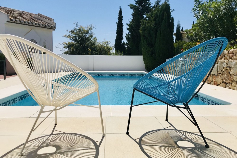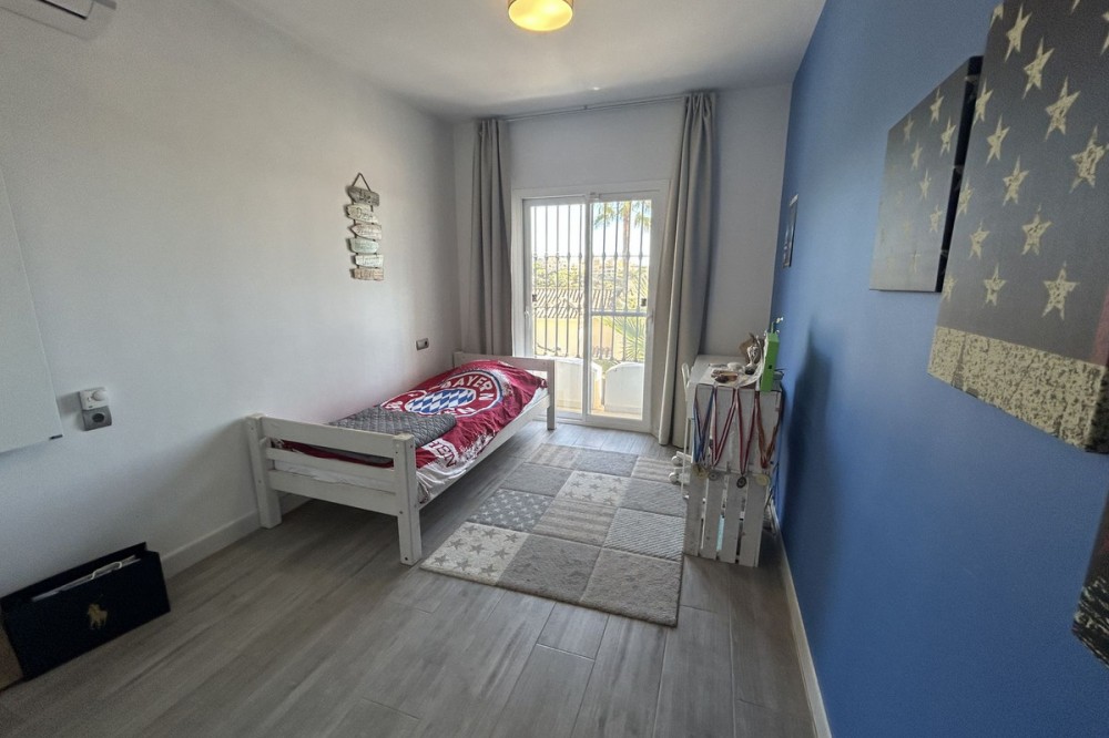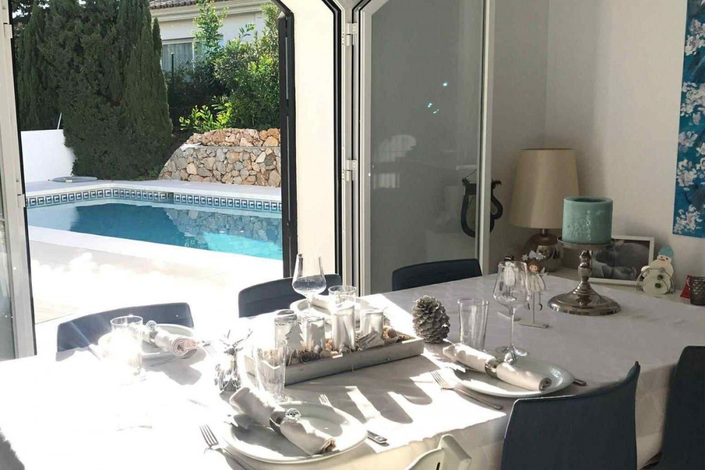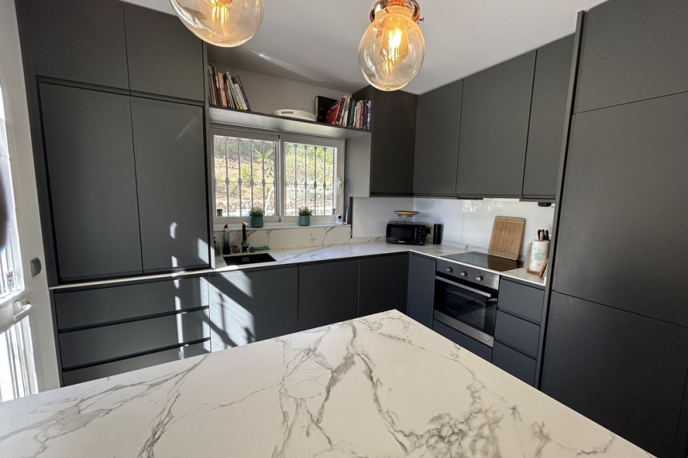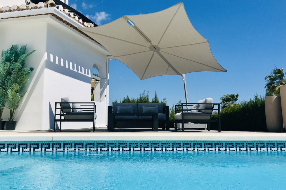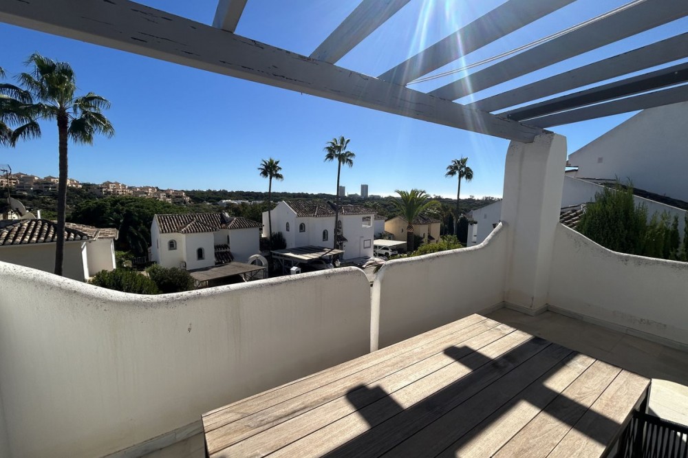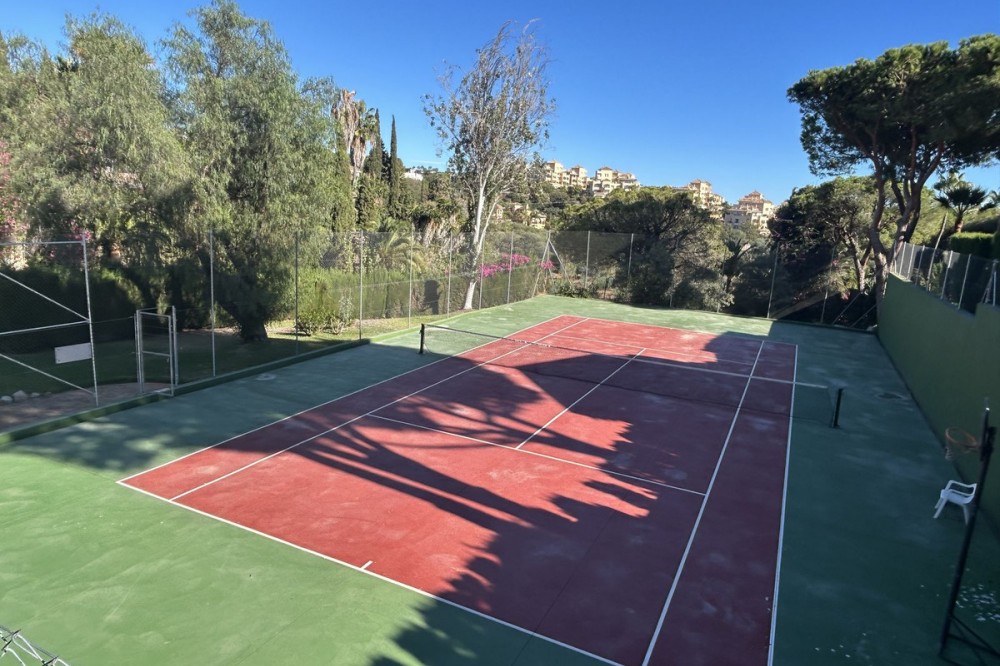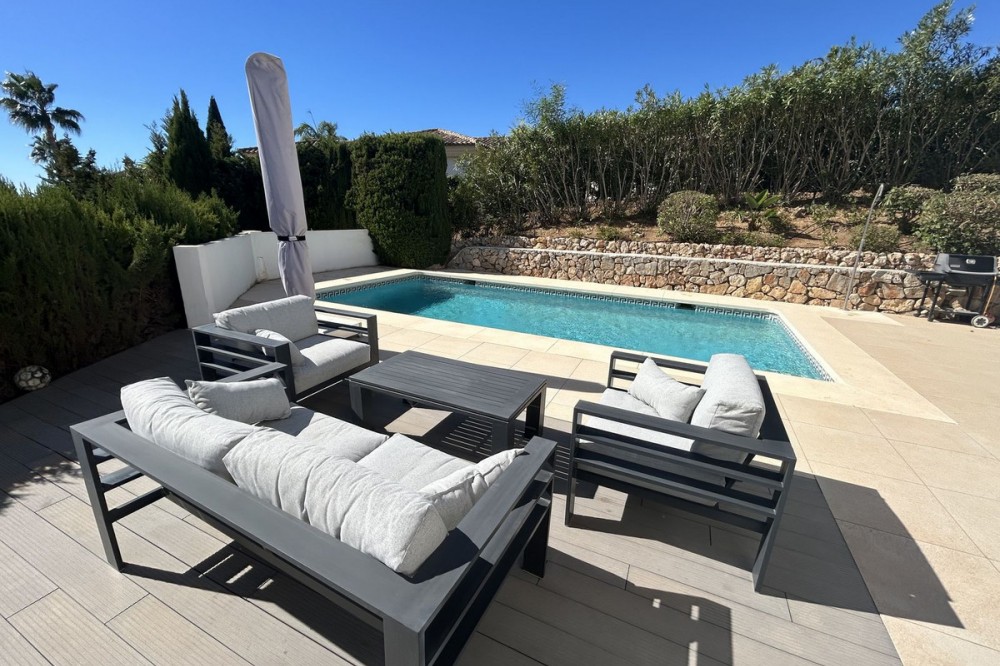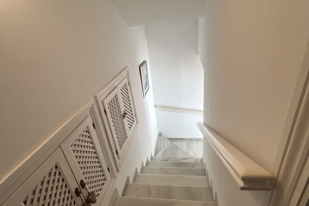 - Discover this beautiful detached Villa that offers an abundance of privacy, nested in the heart of Elviria. Situated in a well maintained gated residential community of 19 Villas, it's surrounded by nature and is only a 5 minute drive away from sandy beaches and amenities. Refurbishments in 2019 included converting the ground floor and garage area into an ample game & family room which can be used as a 5th bedroom. This entire floor can also be transformed into a separate 1 bedroom apartment with open plan living room and kitchen. It has a lot of natural light thanks to a large window and 2 double glass doors that lead outside. You access the property up a private driveway with 2 parking spaces. Going up few stairs you then enter the Villa and find yourself in the bright open concept design, where the living room, dining room and kitchen blend together effortlessly, keeping everything within easy reach. From the living room with a fireplace, you access a sunny terrace with pergola from where you can enjoy nice views to the sea and surroundings. From the dining room and fully fitted modern kitchen you access the private pool area with a large terrace and fenced garden. This entire main level has a seamless, practical and functional flow, adding 2 bedrooms and a bathroom with walk in shower and underfloor heating. The living & dining room as well as the 4 bedrooms and game room offer high-quality infrared heaters by Redwell, known for energy efficiency, they are maintenance-free and feature safety thermostats to prevent overheating. On the upper floor you find the main bedroom with a large bathroom with underfloor heating and a terrace with pergola from where you have lovely sea views. Once you go down to the lower level you find another large bedroom with access to the garden, a good sized bathroom with a walk in shower, the laundry room and the ample game room where you have a large double sliding door with electric shutters and a lot or wardrobe storage space. As mentioned before, this can be used as a 5th bedroom or can be made into a cozy apartment. The Villa is on a 568m2 plot which is part of the Acacias Park community but for private use only and the gardens are maintained by your own gardener. Other features of this property include: gated community with modern app-controlled access. Sea views. Private pool with outdoor shower, fenced in garden, terraces and BBQ. Infrared heaters. Rain gutters. Solar panels for water heating. New air conditioning units with filters. Preinstalled alarm system. Electric underfloor heating in the 2 main bathrooms. Fireplace in the living room. Partially furnished. In addition, the complex offers a large communal pool with club house and BBQ area and a Tennis court. Mediterranean charm and prime location provide both tranquility and convenience making this a hidden Gem in one of Marbella's most desirable and prestigious areas. Within a 5 minute drive you will find bars, restaurants, cafes, shops and facilities for comfortable living. There are golf courses, famous tennis and beach clubs and schools within a short distance: The Málaga International Airport is a 30 minute drive away. The center of Marbella is less than a 10 minute drive away.