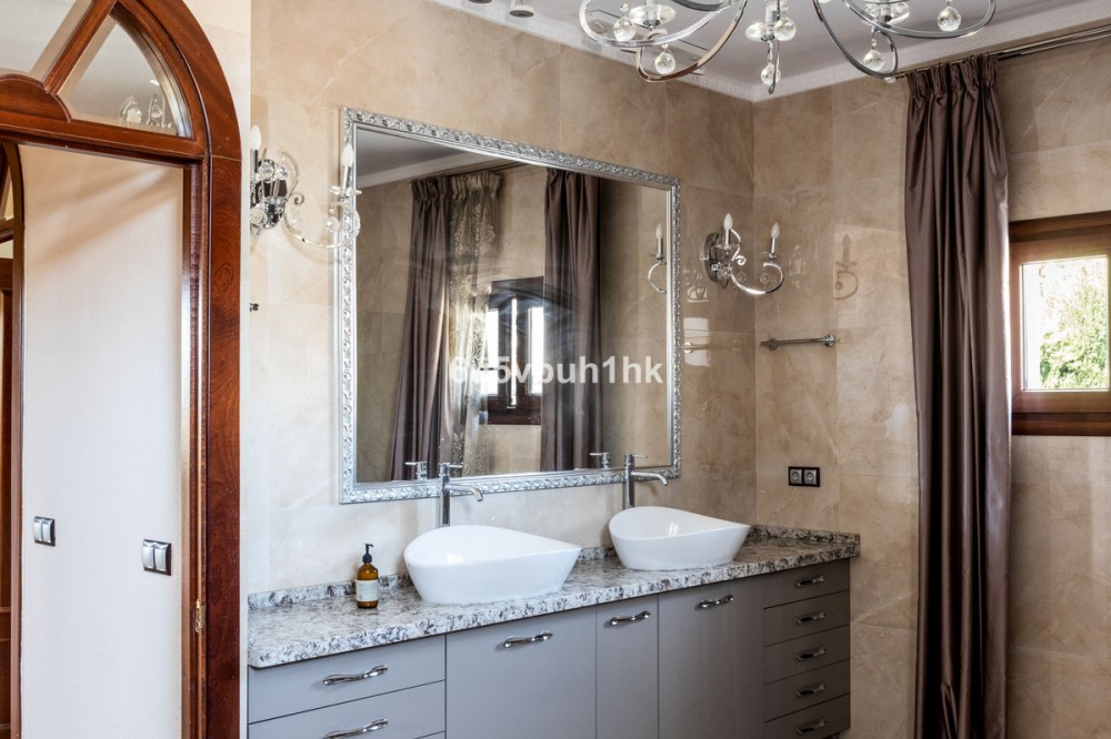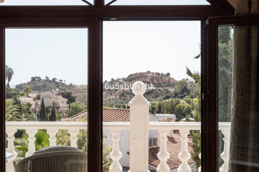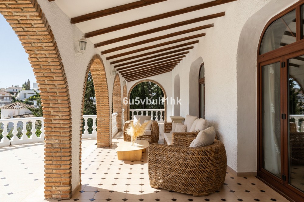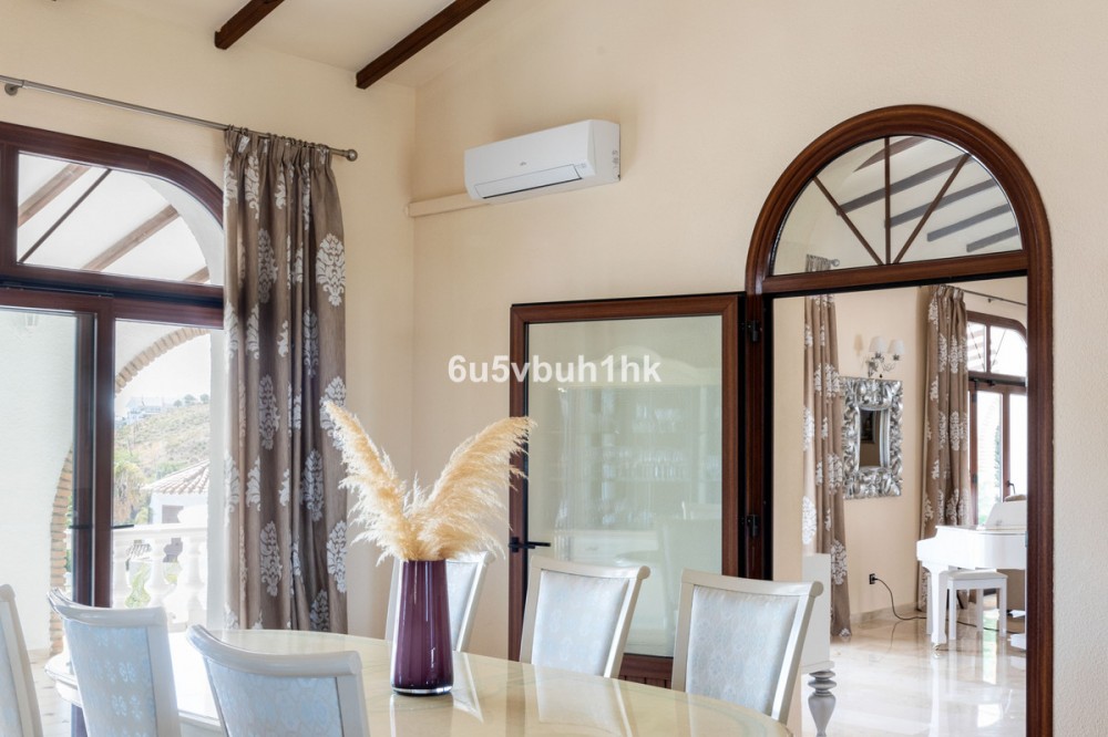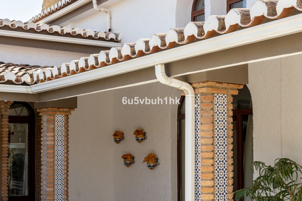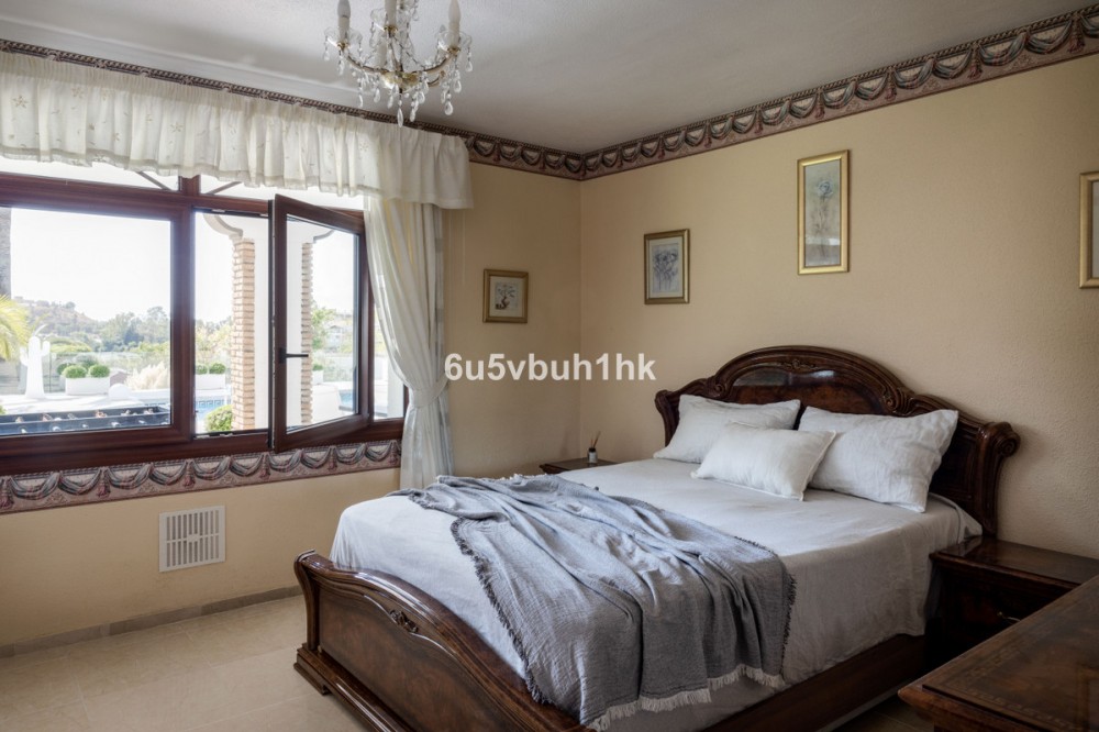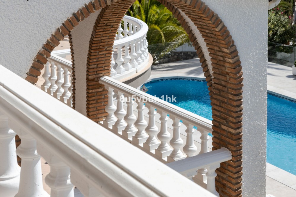 - Your own private paradise, Villa Palmeras, in the middle of Costa del Sol. This property hides a huge amount of wonderful details. The entrance floor has a large hall, dining room, a kitchen, a utility room, lots of terrace space, a large courtyard, a two-car garage and an entrance to the north wing of the building, which has a huge suite with its own bathroom, a walk-in closet and its own terrace. There are 5 bedrooms on the ground floor, each with their own bathroom. In addition, there is one separate room, as well as a bathroom for guests and, of course, access to the pool area. You will not have a sense of being cramped in this place. Inside and out you have a lot of space everywhere. The plot is a so-called double plot. The orientation of the house is towards the south and the swimming pool area gets sun all day. The pool is lit, so it's amazing even at dusk, and there's also a separate shower. The building is in very good condition, as a large amount of money has been spent on renovations and upgrades. There is a wonderful, well-maintained garden with an automatic irrigation system. The location is peaceful, there is a supermarket and schools nearby, and the services of Arroyo de la Miel and the train station are about a 15-minute walk away. The lovely Benalmádena Pueblo is only a 5 minute drive away, the beaches 10 minutes away and Benalmádena Marina 15 minutes away. This is our exclusive listing. Contact us and we will book a viewing for you!