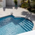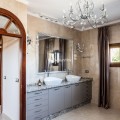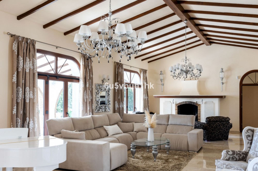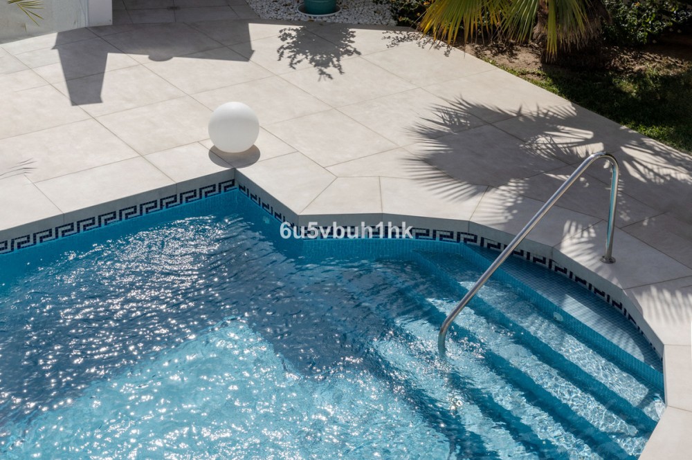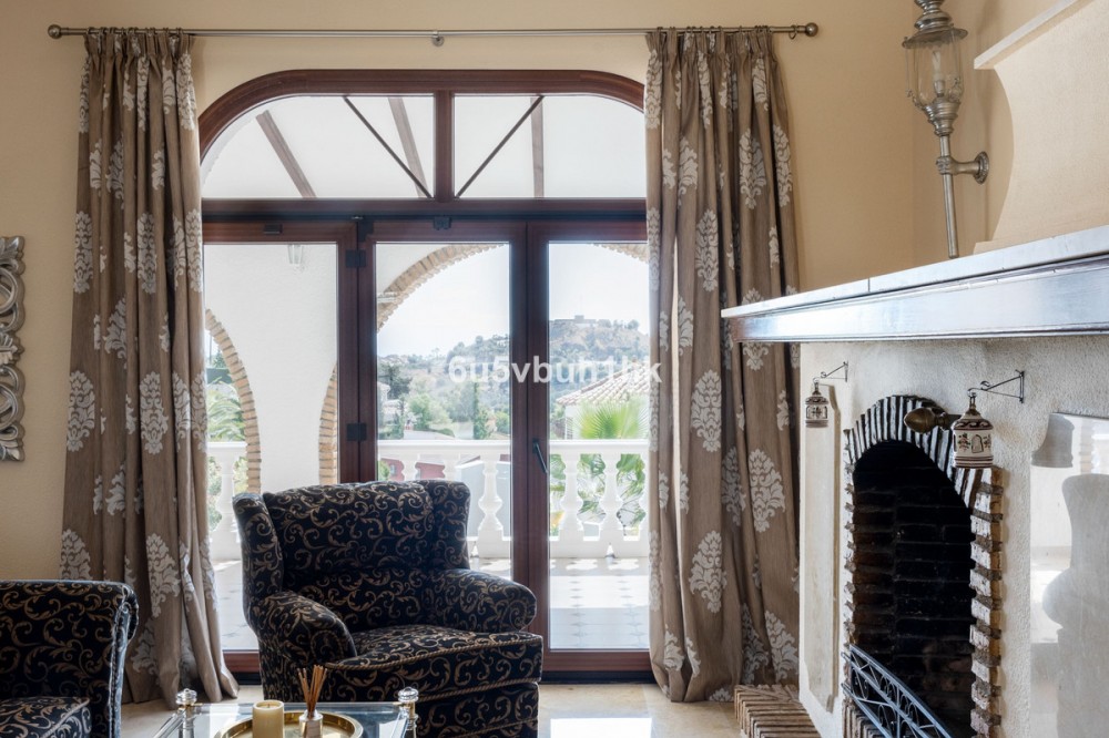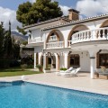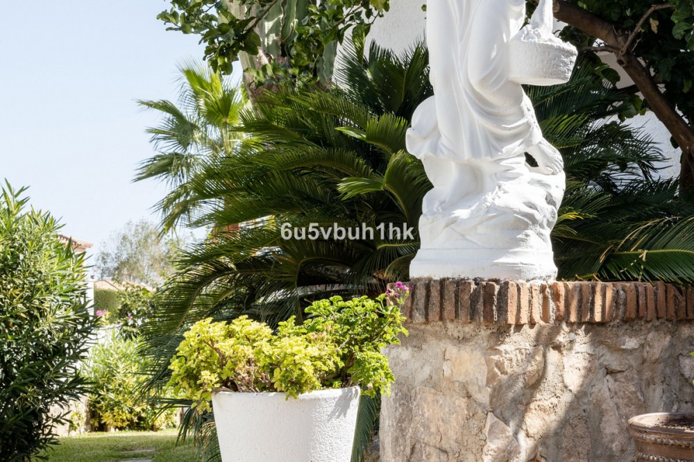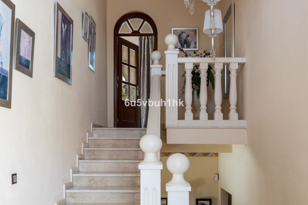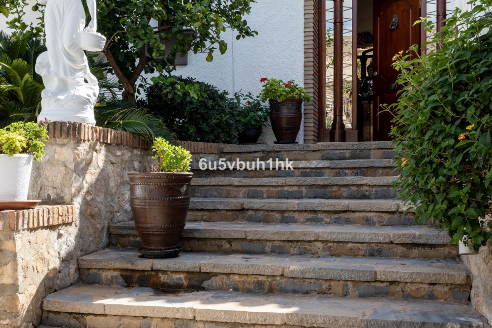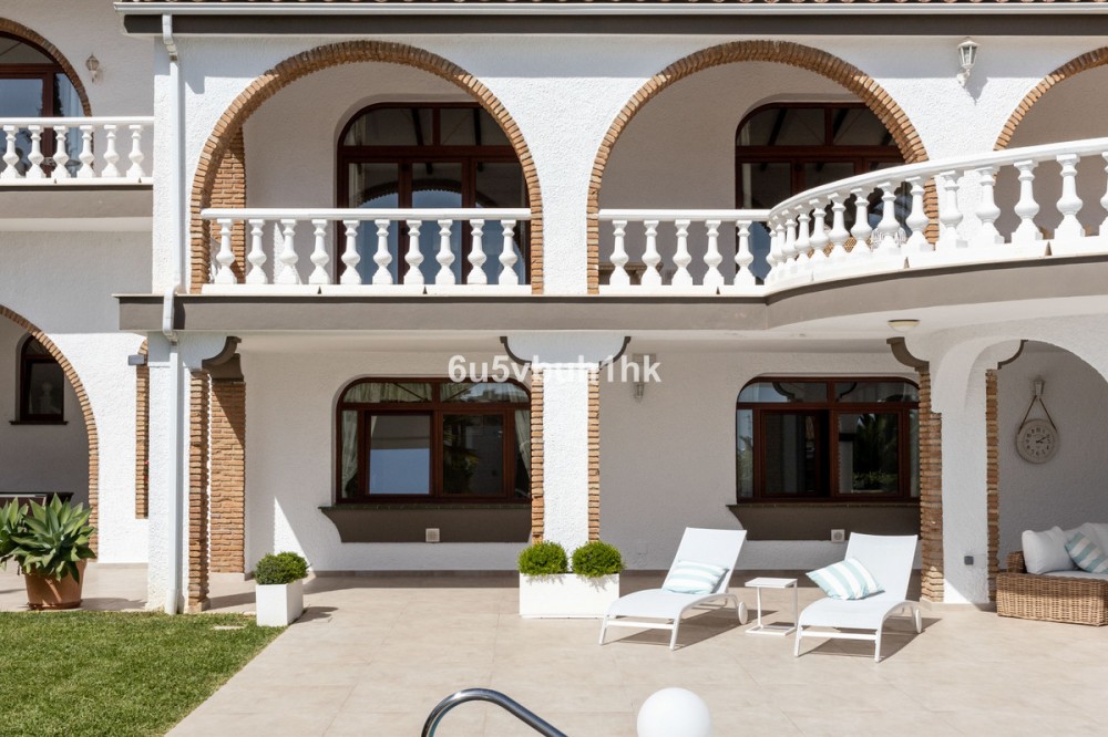 - Your own private paradise, Villa Palmeras, in the middle of Costa del Sol. This property hides a huge amount of wonderful details. The entrance floor has a large hall, dining room, a kitchen, a utility room, lots of terrace space, a large courtyard, a two-car garage and an entrance to the north wing of the building, which has a huge suite with its own bathroom, a walk-in closet and its own terrace. There are 5 bedrooms on the ground floor, each with their own bathroom. In addition, there is one separate room, as well as a bathroom for guests and, of course, access to the pool area. You will not have a sense of being cramped in this place. Inside and out you have a lot of space everywhere. The plot is a so-called double plot. The orientation of the house is towards the south and the swimming pool area gets sun all day. The pool is lit, so it's amazing even at dusk, and there's also a separate shower. The building is in very good condition, as a large amount of money has been spent on renovations and upgrades. There is a wonderful, well-maintained garden with an automatic irrigation system. The location is peaceful, there is a supermarket and schools nearby, and the services of Arroyo de la Miel and the train station are about a 15-minute walk away. The lovely Benalmádena Pueblo is only a 5 minute drive away, the beaches 10 minutes away and Benalmádena Marina 15 minutes away. This is our exclusive listing. Contact us and we will book a viewing for you!