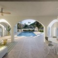 - Frontline Golf Villa with Mexico–Tulum Inspired Design in Guadalmina Alta Set directly on the fairways of the prestigious Real Club de Golf in Guadalmina Alta, this exceptional four-bedroom villa offers a unique blend of natural serenity, elegant contemporary design, and direct access to one of Marbella’s most sought-after golf courses. Designed with a warm Mexico–Tulum aesthetic, the interiors feature natural textures, earthy tones, and an effortless indoor–outdoor flow. The open-plan living and dining area, complete with a real wood-burning fireplace, connects seamlessly to spacious terrace and garden overlooking the pool and golf fairway. The fully equipped designer kitchen includes a central island, Quooker tap providing filtered drinking and instant boiling water, and top-quality appliances. Each of the four bedrooms includes an en-suite bathroom. Throughout the villa, soft lighting, refined materials, and thoughtful details create an atmosphere of understated luxury. Outdoors, the southwest orientation ensures sunlight from morning until sunset. The landscaped garden features multiple chill-out areas, ideal for entertaining or relaxing in total privacy. Sustainable living is enhanced by solar panels, an advanced alarm system, and energy-efficient installations throughout. Sold fully furnished with bespoke designer pieces, the villa is ready to move into and represents a rare opportunity to acquire a frontline golf home combining style, comfort, and prime location in Guadalmina Alta.