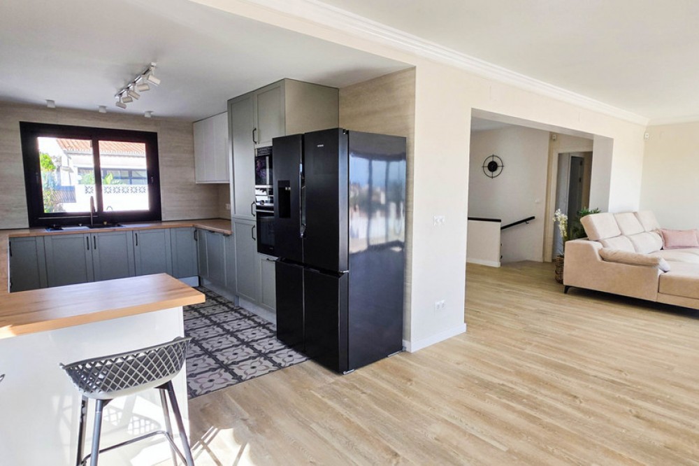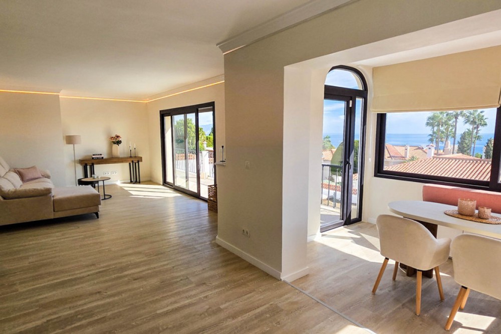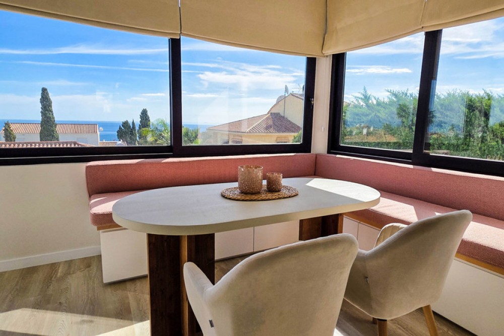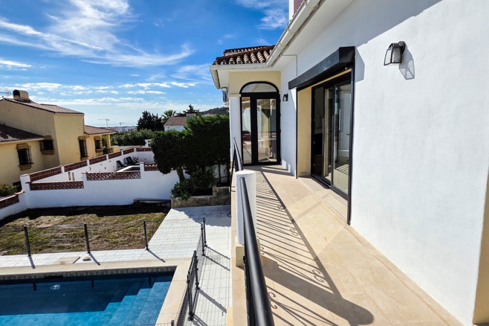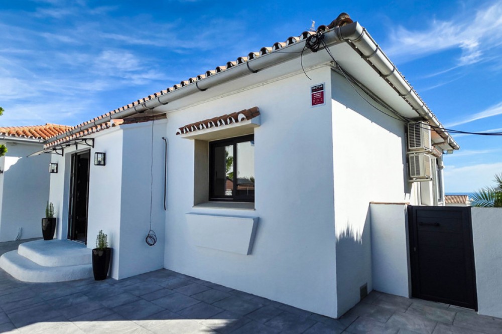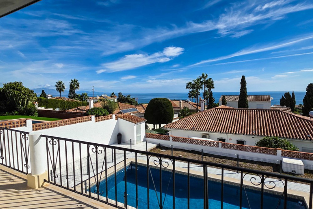 - This beautifully refurbished villa in Manilva offers modern comfort, high-quality finishes, and sweeping sea views, all within walking distance of the beach. Designed with both style and practicality in mind, this property is as good as brand new and ready to move into. The villa features four spacious bedrooms and three bathrooms, each finished with quality materials and fittings. Plenty of storage space throughout the house. The bathrooms benefit from underfloor heating, while new, individually controlled air-conditioning units have been installed in every room to ensure year-round comfort. The kitchen is equipped with top-quality appliances, and the open-plan design allows natural light to flow throughout the home. Accessibility has been thoughtfully incorporated, with a stair lift and wheelchair-friendly layout, making it ideal for all generations. Outside, a private swimming pool and sun terrace offer an inviting space to enjoy the panoramic sea views and Mediterranean climate. A garage provides secure parking and additional storage. Located in a quiet yet convenient area of Manilva, this home is close to the beach, marina, restaurants, and local amenities — perfect for relaxed coastal living. Málaga Airport is approximately 1 hour away by car, while Gibraltar Airport can be reached in around 30 minutes. This is a rare opportunity to acquire a fully renovated, energy-efficient villa with exceptional sea views and high-quality features throughout.