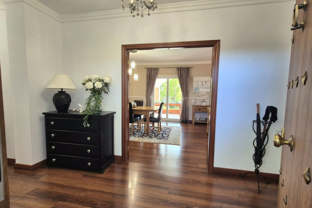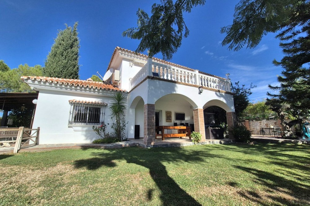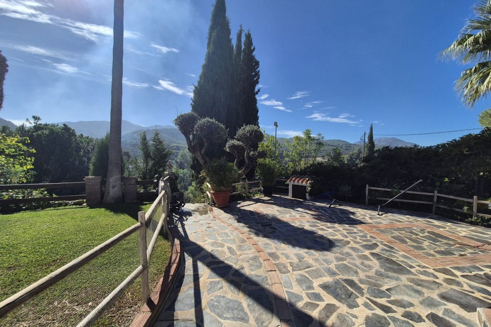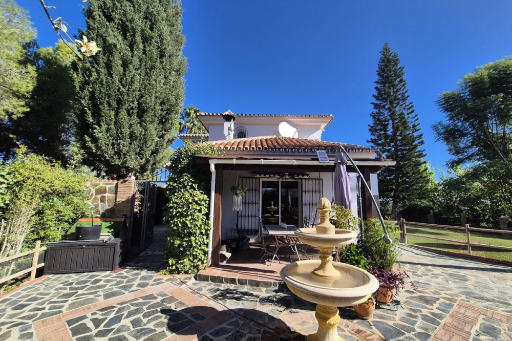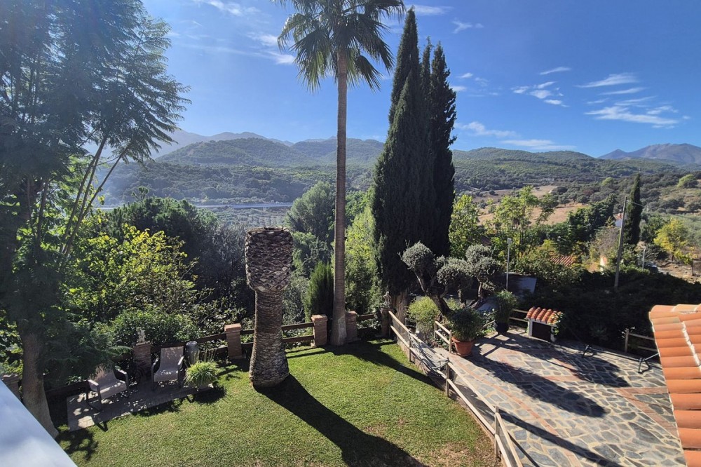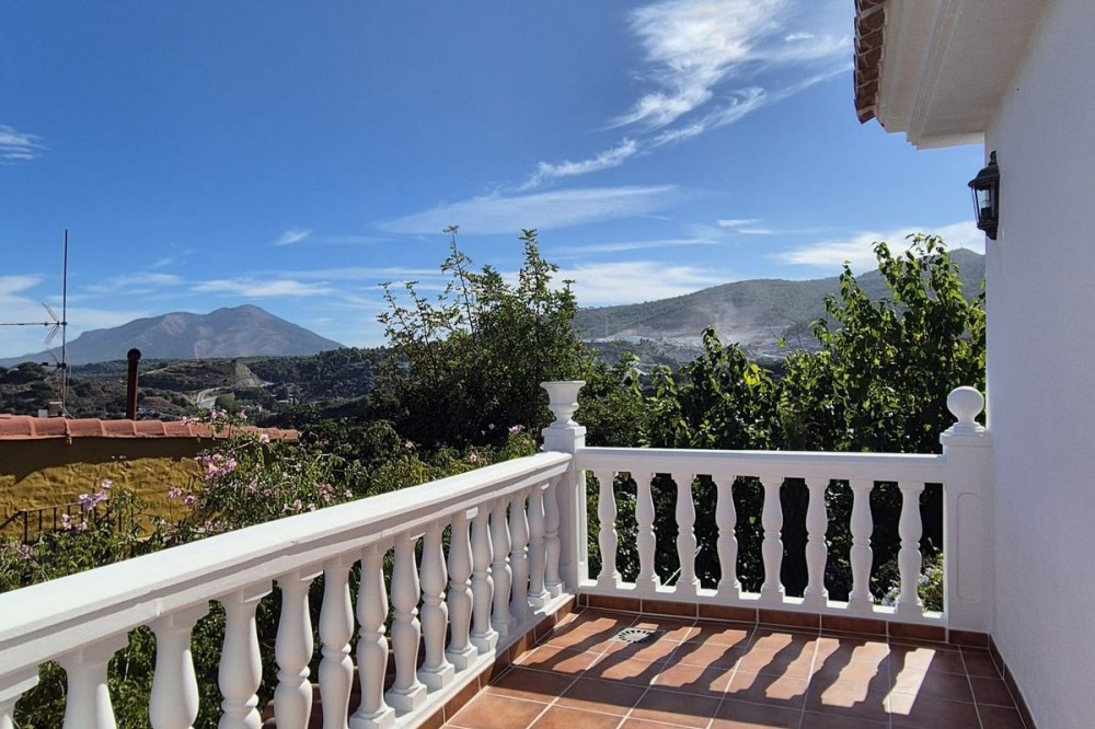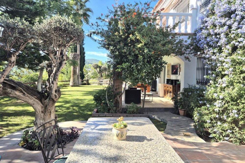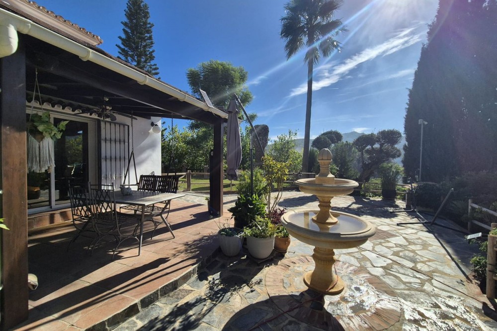 - For Sale – Spacious and luxurious villa on the outskirts of Coín, Málaga. This beautiful, high-quality villa offers space, comfort, and elegance in a peaceful location just outside of Coín. Built over two floors, the property features a thoughtful layout and quality finishes throughout. The property is approached from a pair of pedestrian gates which leads to a high security entrance door into a large bright hallway with a lovely wooden floor. From here you can access the bright, south facing living/dinning room with access to the back terraces and gardens, also the kitchen, ground floor bedroom with ensuite shower room or proceed upstairs to the first floor. Living/Dinning room. Surrounded by windows and sliding patio doors, flooding the space with natural light. It features a fan-assisted wood burning fire and a hot and cold A/C unit. There are two covered terraces which offer a space for entertaining or relaxation. Also there is a door leading into the kitchen. Fully fitted Kitchen. The generous sized kitchen is equipped with Bosch double fan assisted ovens and microwave oven, also a Bosch gas 5 ring hob with extract fan. In addition there is a Miele bbq, Siemens dishwasher, very large double sink, two integrated refuse bins. Integrated full length fridge and freezer, two larder cupboards. There is a generous size gray and white marble peninsular incorporating storage cupboards and a double wine fridge. The kitchen leads onto the utility room. Utility room. Ample size with fitted units housing an American fridge/freezer, another integrated Bosch dishwasher and a Siemens washing machine, double stainless steel sinks and a tumble dryer, security glazed back door leading to courtyard. Downstairs bedroom with ensuite shower room. Large double bedroom with fitted double wardrobes, with radiator for central heating, North facing window over looking front garden. The ensuite is fitted with nk Porcelanosa fittings, bidet, toilet and shower, double sinks, tilt and turn window, oil heated towel rail, accessed from central heated lobby. Curved staircase to upper floor. To the right of the stairs is the study/bedroom/office. Further along the landing which has A/C unit is the family bathroom with toilet, bidet, sink in housing unit with storage and bath with shower, radiator for central heating, tilt and turn window and storage cupboard. Next to the bathroom is another large double bedroom with single door onto private balcony, double fitted wardrobes radiator for central heating. Master bedroom suite. Double in size with one of the original bedrooms converted into a spacious walk in dressing room with ample wardrobes and storage. The master bedroom features an elegant elevated sleeping area with patio doors leading onto a large private balcony. There is a spa bathroom ensuite with double sinks with fitted cupboards underneath. A large spa bath jacuzzi, bidet and toilet with heated towel rail. There is air-conditioning throughout the suite. Outside. The grounds to this villa has serval levels, the upper level has the house with an extensive garden, lawn, terraces and beautiful views of the surrounding Mountains, forest, countryside and national park. There are stairs leading down to the carport where there is a covered garage for two cars plus additional parking, all accessed by electric large vehicle gate. There is a drive which leads down to the lower levels of the gardens and a large above ground swimming pool 5 x 10 metres. There is a small building housing a sink, fridge and nk potcelanosa toilet for convenience. There are lots of fruit trees, shrubs, and plants in the gardens. There are security cameras fitted to the property for peace of mind. This villa is ideal for families or those who work from home, offering ample space and privacy. A video and floorplans are available upon request. It offers complete privacy, has its own well, mains electricity, and reliable Wi-Fi. The access is excellent, with a paved road just 5 minutes from the center of Coín, 15 minutes to Marbella, 20 minutes to the beach, and 25 minutes to Málaga and the airport.