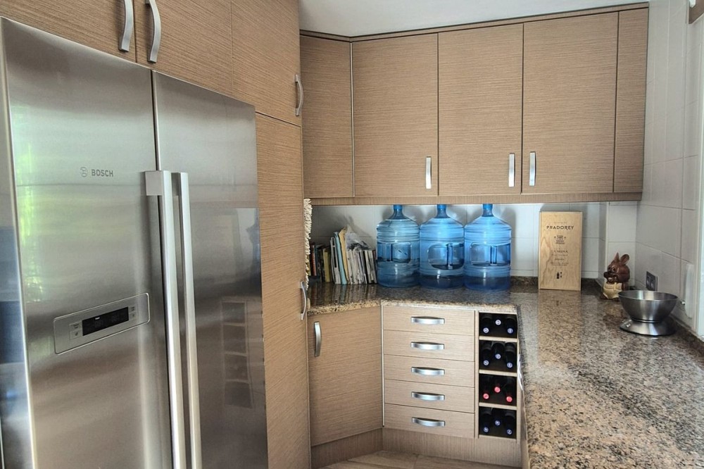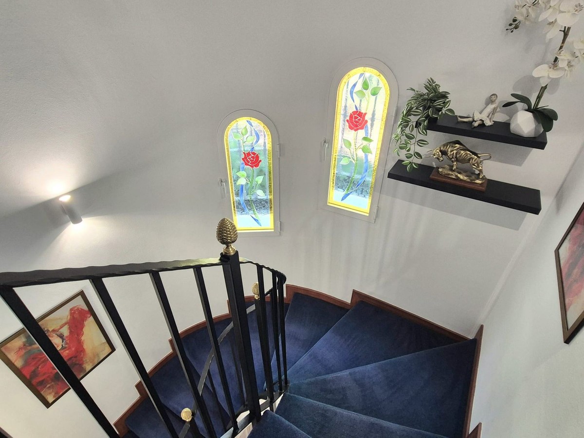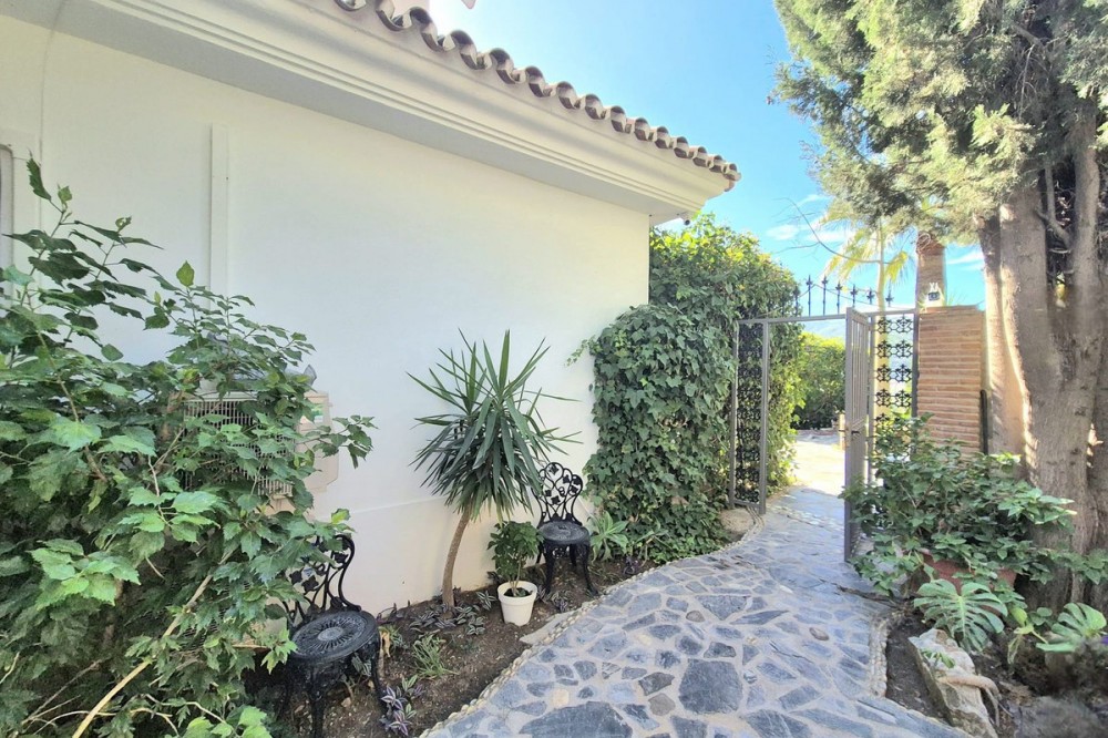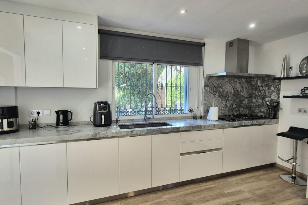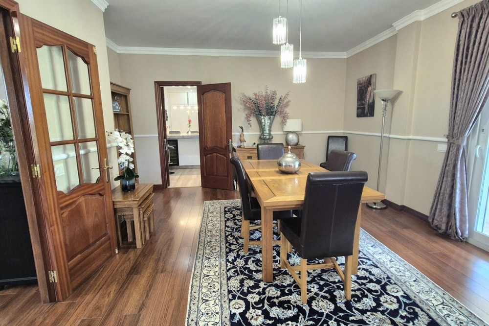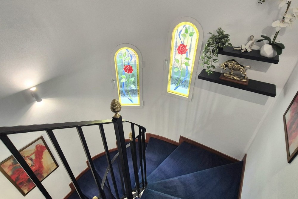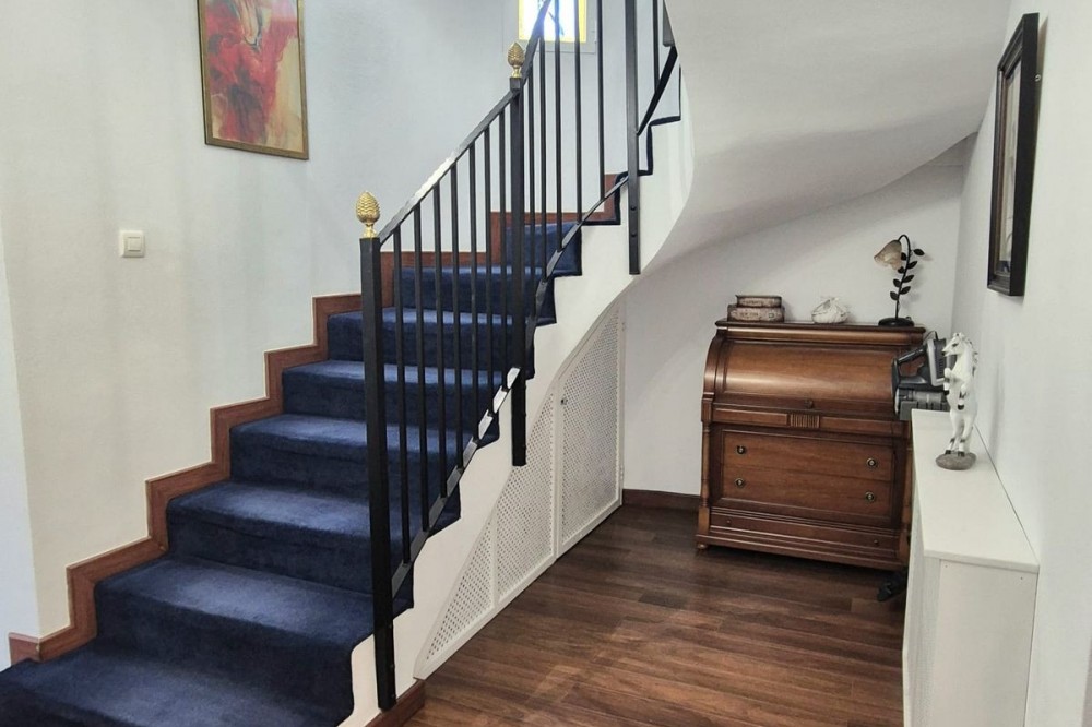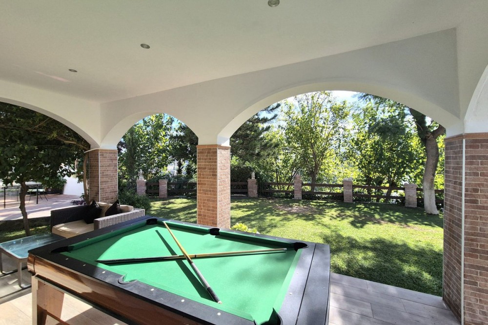 - For Sale – Spacious and luxurious villa on the outskirts of Coín, Málaga. This beautiful, high-quality villa offers space, comfort, and elegance in a peaceful location just outside of Coín. Built over two floors, the property features a thoughtful layout and quality finishes throughout. The property is approached from a pair of pedestrian gates which leads to a high security entrance door into a large bright hallway with a lovely wooden floor. From here you can access the bright, south facing living/dinning room with access to the back terraces and gardens, also the kitchen, ground floor bedroom with ensuite shower room or proceed upstairs to the first floor. Living/Dinning room. Surrounded by windows and sliding patio doors, flooding the space with natural light. It features a fan-assisted wood burning fire and a hot and cold A/C unit. There are two covered terraces which offer a space for entertaining or relaxation. Also there is a door leading into the kitchen. Fully fitted Kitchen. The generous sized kitchen is equipped with Bosch double fan assisted ovens and microwave oven, also a Bosch gas 5 ring hob with extract fan. In addition there is a Miele bbq, Siemens dishwasher, very large double sink, two integrated refuse bins. Integrated full length fridge and freezer, two larder cupboards. There is a generous size gray and white marble peninsular incorporating storage cupboards and a double wine fridge. The kitchen leads onto the utility room. Utility room. Ample size with fitted units housing an American fridge/freezer, another integrated Bosch dishwasher and a Siemens washing machine, double stainless steel sinks and a tumble dryer, security glazed back door leading to courtyard. Downstairs bedroom with ensuite shower room. Large double bedroom with fitted double wardrobes, with radiator for central heating, North facing window over looking front garden. The ensuite is fitted with nk Porcelanosa fittings, bidet, toilet and shower, double sinks, tilt and turn window, oil heated towel rail, accessed from central heated lobby. Curved staircase to upper floor. To the right of the stairs is the study/bedroom/office. Further along the landing which has A/C unit is the family bathroom with toilet, bidet, sink in housing unit with storage and bath with shower, radiator for central heating, tilt and turn window and storage cupboard. Next to the bathroom is another large double bedroom with single door onto private balcony, double fitted wardrobes radiator for central heating. Master bedroom suite. Double in size with one of the original bedrooms converted into a spacious walk in dressing room with ample wardrobes and storage. The master bedroom features an elegant elevated sleeping area with patio doors leading onto a large private balcony. There is a spa bathroom ensuite with double sinks with fitted cupboards underneath. A large spa bath jacuzzi, bidet and toilet with heated towel rail. There is air-conditioning throughout the suite. Outside. The grounds to this villa has serval levels, the upper level has the house with an extensive garden, lawn, terraces and beautiful views of the surrounding Mountains, forest, countryside and national park. There are stairs leading down to the carport where there is a covered garage for two cars plus additional parking, all accessed by electric large vehicle gate. There is a drive which leads down to the lower levels of the gardens and a large above ground swimming pool 5 x 10 metres. There is a small building housing a sink, fridge and nk potcelanosa toilet for convenience. There are lots of fruit trees, shrubs, and plants in the gardens. There are security cameras fitted to the property for peace of mind. This villa is ideal for families or those who work from home, offering ample space and privacy. A video and floorplans are available upon request. It offers complete privacy, has its own well, mains electricity, and reliable Wi-Fi. The access is excellent, with a paved road just 5 minutes from the center of Coín, 15 minutes to Marbella, 20 minutes to the beach, and 25 minutes to Málaga and the airport.