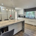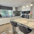 - For Sale – Spacious and luxurious villa on the outskirts of Coín, Málaga. This beautiful, high-quality villa offers space, comfort, and elegance in a peaceful location just outside of Coín. Built over two floors, the property features a thoughtful layout and quality finishes throughout. The property is approached from a pair of pedestrian gates which leads to a high security entrance door into a large bright hallway with a lovely wooden floor. From here you can access the bright, south facing living/dinning room with access to the back terraces and gardens, also the kitchen, ground floor bedroom with ensuite shower room or proceed upstairs to the first floor. Living/Dinning room. Surrounded by windows and sliding patio doors, flooding the space with natural light. It features a fan-assisted wood burning fire and a hot and cold A/C unit. There are two covered terraces which offer a space for entertaining or relaxation. Also there is a door leading into the kitchen. Fully fitted Kitchen. The generous sized kitchen is equipped with Bosch double fan assisted ovens and microwave oven, also a Bosch gas 5 ring hob with extract fan. In addition there is a Miele bbq, Siemens dishwasher, very large double sink, two integrated refuse bins. Integrated full length fridge and freezer, two larder cupboards. There is a generous size gray and white marble peninsular incorporating storage cupboards and a double wine fridge. The kitchen leads onto the utility room. Utility room. Ample size with fitted units housing an American fridge/freezer, another integrated Bosch dishwasher and a Siemens washing machine, double stainless steel sinks and a tumble dryer, security glazed back door leading to courtyard. Downstairs bedroom with ensuite shower room. Large double bedroom with fitted double wardrobes, with radiator for central heating, North facing window over looking front garden. The ensuite is fitted with nk Porcelanosa fittings, bidet, toilet and shower, double sinks, tilt and turn window, oil heated towel rail, accessed from central heated lobby. Curved staircase to upper floor. To the right of the stairs is the study/bedroom/office. Further along the landing which has A/C unit is the family bathroom with toilet, bidet, sink in housing unit with storage and bath with shower, radiator for central heating, tilt and turn window and storage cupboard. Next to the bathroom is another large double bedroom with single door onto private balcony, double fitted wardrobes radiator for central heating. Master bedroom suite. Double in size with one of the original bedrooms converted into a spacious walk in dressing room with ample wardrobes and storage. The master bedroom features an elegant elevated sleeping area with patio doors leading onto a large private balcony. There is a spa bathroom ensuite with double sinks with fitted cupboards underneath. A large spa bath jacuzzi, bidet and toilet with heated towel rail. There is air-conditioning throughout the suite. Outside. The grounds to this villa has serval levels, the upper level has the house with an extensive garden, lawn, terraces and beautiful views of the surrounding Mountains, forest, countryside and national park. There are stairs leading down to the carport where there is a covered garage for two cars plus additional parking, all accessed by electric large vehicle gate. There is a drive which leads down to the lower levels of the gardens and a large above ground swimming pool 5 x 10 metres. There is a small building housing a sink, fridge and nk potcelanosa toilet for convenience. There are lots of fruit trees, shrubs, and plants in the gardens. There are security cameras fitted to the property for peace of mind. This villa is ideal for families or those who work from home, offering ample space and privacy. A video and floorplans are available upon request. It offers complete privacy, has its own well, mains electricity, and reliable Wi-Fi. The access is excellent, with a paved road just 5 minutes from the center of Coín, 15 minutes to Marbella, 20 minutes to the beach, and 25 minutes to Málaga and the airport.