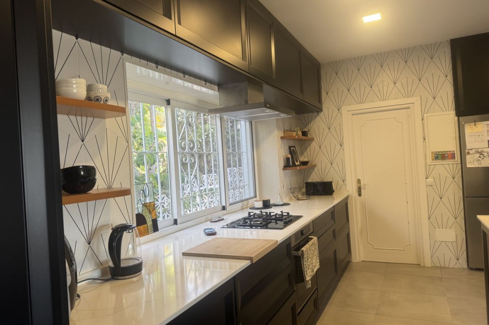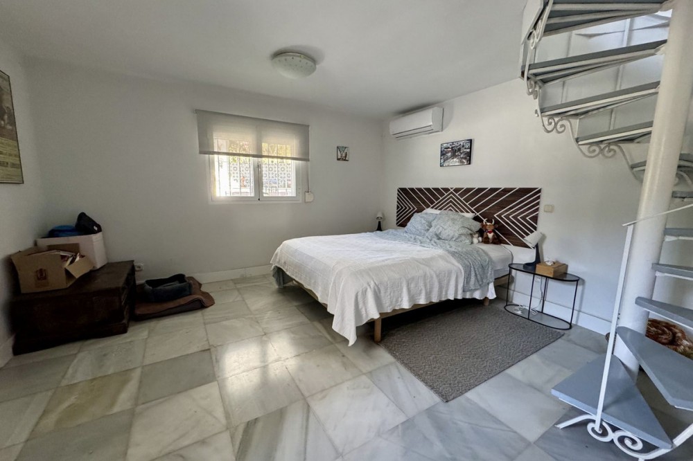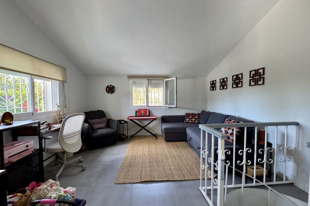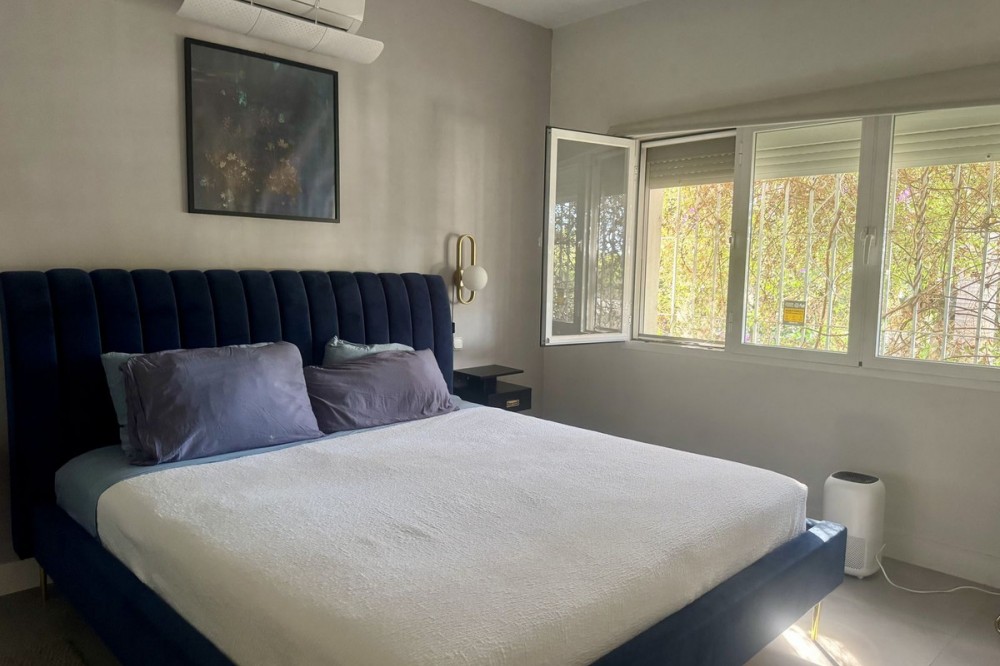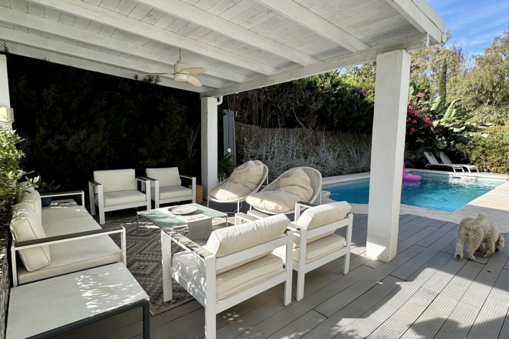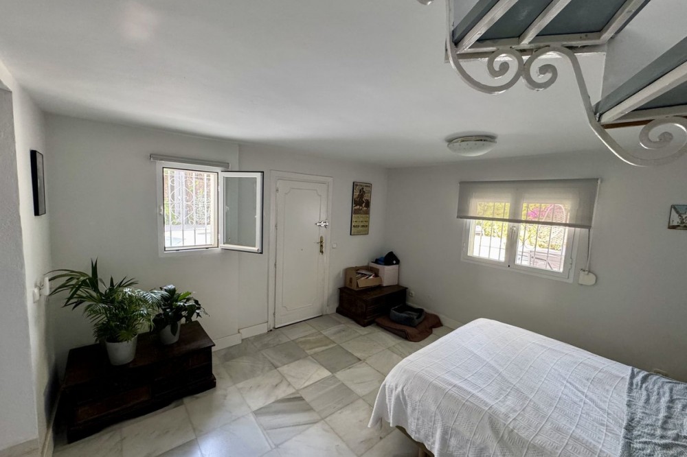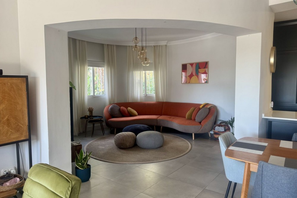 - Detached villa in El Real Panorama, Marbella Renovated detached villa just a few meters from the beach and a five-minute drive from the city center. Located in Marbella East, it is in a quiet residential area, inhabited all year round and very well connected. The property has a built area of 230 m² and a plot of 770 m² with a private garden and swimming pool. It is distributed over two floors and has a living room, dining room, kitchen, 4 bedrooms, 3 bathrooms, guest toilet, porch, terrace, and patio. Very sunny, south-facing. It also has parking within the property. Layout: Main floor: entrance hall, living room, separate dining room, three bedrooms, two of them with bathrooms, guest toilet, patio, and south-facing porch with sea views. Ground floor: garage, bedroom with bathroom, and access to the porch, garden, and pool. It is a very pleasant house due to its location, layout and beautiful garden with swimming pool and barbecue. Electricity is supplied by solar panels.This property is located in a privileged location, just a few minutes' walk from both the beach and the city center, which can be reached by enjoying a stroll along the wonderful “Senda del Litoral,” a wide wooden walkway that runs along the entire coast of Marbella. In addition, there are prestigious schools and a large shopping center, La Cañada, nearby, where you can find a wide variety of services, shops, and restaurants. Real Panorama borders the exclusive and quiet area of Río Real, with golf courses such as the Río Real Golf Course and Santa Clara Golf. It is also close to the famous Trocadero Arena restaurant. Opposite the property is the “Parque del Mediterraneo,” a green lung on a 40,000 m² plot on Pinillo Beach. This park has numerous areas for outdoor sports, volleyball and beach soccer courts, children's areas, walking trails, and spaces for practicing yoga, as well as an outdoor auditorium and 250 parking spaces. It is an area undergoing significant urban development, with established and luxurious residential complexes such as La Finca de Marbella, The List, Soul, and Santa Clara. With a project such as the luxurious and prestigious “Four Seasons.” Factors that will increase the value of the property in the coming years. The location of this property is also very convenient for those who travel frequently, as it is half an hour from Malaga airport.
