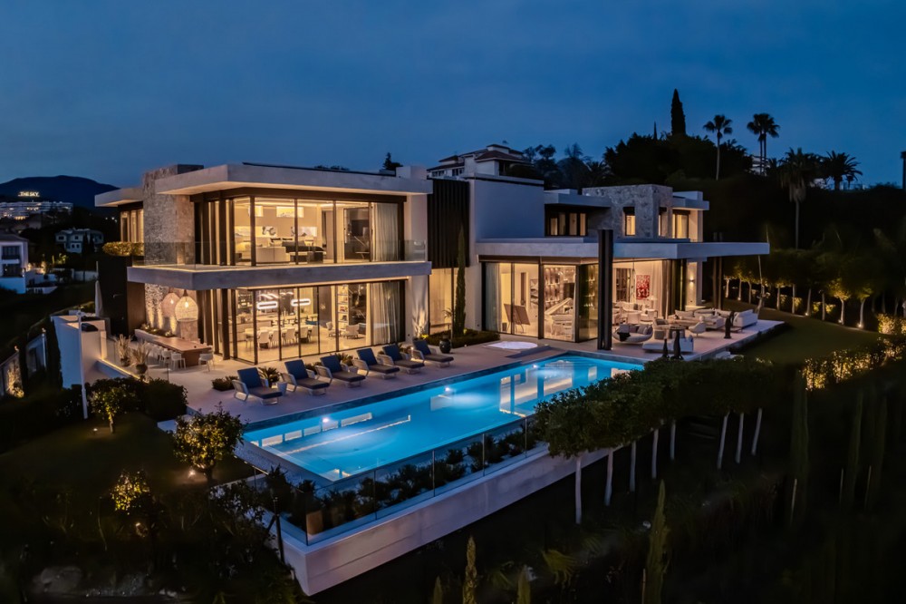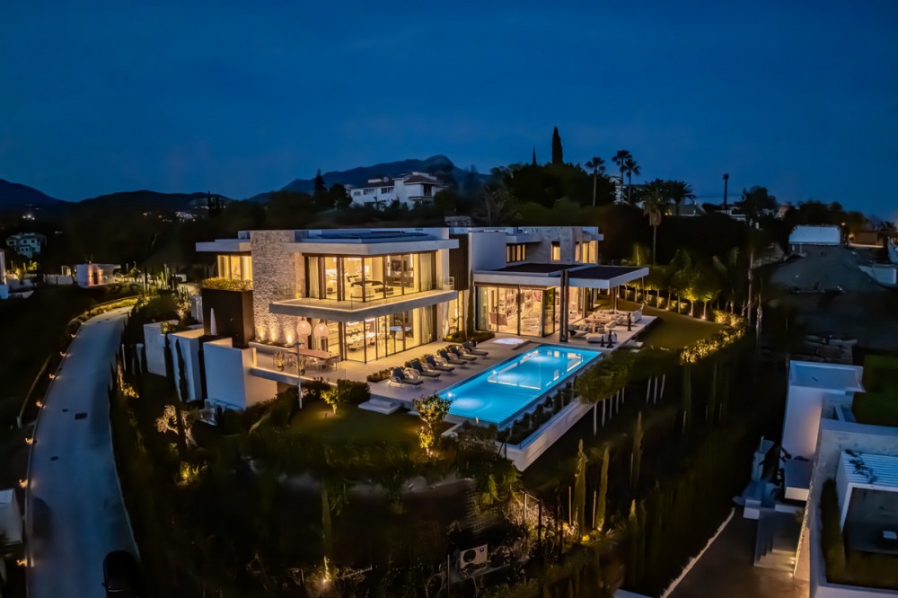 - Welcome to The Hills 12, a landmark of refined luxury in the prestigious La Quinta enclave. This extraordinary villa sits on a generous 2,650m² plot with a built area of 1.451m², thoughtfully designed to deliver an unmatched lifestyle experience. Boasting seven opulent bedrooms, each tailored for ultimate comfort and privacy, the home includes a lavish master suite complete with a spacious walk-in closet and a spa-inspired bathroom. Every room is a sanctuary of style and relaxation, enhanced by panoramic views that stretch across the Mediterranean coastline and lush green landscapes. At the heart of the home lies a breathtaking living area, defined by soaring ceilings and full-height glass sliding doors that seamlessly disappear into the walls, blurring the line between indoors and out. The natural light floods the space, accentuating the fine finishes and drawing the eye out to the expansive terraces, tranquil garden, and infinity pool beyond. This open-concept layout creates a fluid connection with the outdoors, offering an inviting atmosphere for both intimate moments and large-scale entertaining. Adjacent to this stunning lounge is a state-of-the-art kitchen, a masterpiece of modern design and functionality. Outfitted with top-of-the-line appliances, a large central island with integrated cooktop, and sleek matte cabinetry, it’s a culinary space worthy of a private chef. A cozy breakfast nook by the panoramic windows and adjacent dining area ensure that every meal, whether casual or formal, is enjoyed with a spectacular backdrop. The kitchen’s aesthetic perfectly balances minimalism with warmth, making it both stylish and practical. Beyond the core living areas, The Hills 12 is a sanctuary of amenities designed for indulgence and convenience. From the private wine bodega and tranquil sauna to the professional-grade gym, home office, and even a helipad, this residence is crafted for a lifestyle of seamless luxury. The garden, carefully landscaped with sculptural greenery and artistic flair, complements the architectural elegance of the home. Whether relaxing in the indoor spa, entertaining by the pool, or unwinding in the home cinema, this is a home where every detail enhances both functionality and beauty.