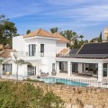 - Modern Eco-Friendly Luxury Villa in Las Lomas del Marbella Club Nestled in one of Marbella’s most prestigious locations, this fully renovated contemporary villa combines luxury, sustainability, and cutting-edge technology. Situated on a quiet cul-de-sac in the exclusive Las Lomas del Marbella Club, the property offers privacy, panoramic sea views, and effortless modern living. Step inside and you’re greeted by light-filled spaces, elegant design, and natural materials that create a sense of calm sophistication. The open-plan living area flows seamlessly to the terrace and infinity pool, framed by a drought-resistant garden designed for beauty and ease. This is a smart, energy-efficient home that truly takes care of itself — and of you. Solar panels power the property, storing enough energy to keep it running day and night. A solar thermal system heats the water, while intelligent climate control keeps every room perfectly balanced year-round. The heart of the home — a Bulthaup kitchen fitted with Gaggenau appliances — reflects understated perfection. Every element, from the handcrafted Roman Clavero front door to the designer lighting, has been selected with precision and purpose. Security, comfort, and connectivity are seamlessly integrated. From the SONOS sound system and app-controlled features to the private shared road serving just three homes, this property is both peaceful and future-ready. Key Features: • 4 Bedrooms | 4 Bathrooms • Plot Size: 1,154 m² • Built Area: 622.58 m² • (Ground floor: 195 m² | First floor: 68 m² | Basement: 237 m² | Terraces: 121.5 m² total) • Full Renovation: Completed 2023–2024 • Year Built: 2004 | First Occupation License: July 2005 Sustainability & Energy Efficiency: • This villa is energy self-sufficient, designed to operate sustainably while maintaining the highest comfort standards. Solar Power System: • Equipped with a SolarEdge 10 KW inverter, 28 SunPower solar panels (410 Wp each), and SolarEdge optimizers for every panel. • The system produces approximately 70 kWh per day—double the household’s daily energy needs—storing excess energy in a 14 kWh SolarEdge battery system. Solar Thermal Hot Water System: • Daikin Solar Thermal installation ensures eco-friendly hot water production. Daikin Climate Control: • Integrated Airzone system for individual room heating and cooling, controllable via AirzoneCloud App. Water Systems: • Advanced purification, pressure, and backup storage with two 1,000L tanks. Interior Highlights - Every detail reflects modern sophistication and premium European craftsmanship. • Kitchen: Bulthaup System b3 with Gaggenau appliances, Miele dishwasher, Bora Professional induction cooktop, and Quooker COMBI+ system (7L instant hot water tank). • Windows: A++ UV-coated glazing in Cortizo aluminum frames for maximum efficiency and low maintenance. • Fireplace: Rocal Arc 50V with heat recovery system. • Finishes: Painted with Farrow & Ball interior colors for a refined aesthetic. • Lighting: Designer LED lighting throughout, featuring brands such as Luce Plan, DeltaLight, Lumina, Modular, Occhio, Vibia, Eichholtz, and Focus-Lighting (outdoor). Outdoor Living: • Infinity Pool: Overlooks the Mediterranean and blends seamlessly into the modern, drought-resistant garden. • Electric Mosquito Screens: Fully enclose the ground-floor terrace for year-round enjoyment. • Private Shared Road: Only three properties share access, enhancing both privacy and security. Technology & Comfort: • Smart Systems: Solar, thermal, security, and climate systems all connected to dedicated apps. • Security: Target Alarm system with 7 cameras (app-controlled). • Sound: Full-house SONOS system (including garage and basement). • Connectivity: UTP cabling in every room. Additional Features: • Pet washing station in the utility room, Daikin installations, and designer ceiling fans. Summary: This modern, eco-conscious family home in Marbella’s Golden Mile offers a perfect balance of sustainability, luxury, and smart technology. Combining elegant design with European quality craftsmanship, it’s a turnkey residence for those seeking a future-ready Mediterranean lifestyle.