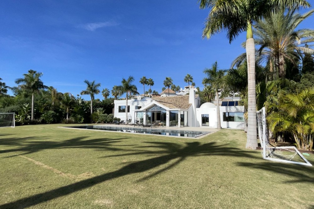 - Independent Villa with Panoramic Sea and Golf Views Elegant, recently renovated independent villa that combines contemporary style with a warm and functional atmosphere. Set within an exclusive residential area with 24-hour security, this property offers privacy, comfort, and exceptional panoramic views of the sea and golf course. Spread over three levels, the villa features 5 bedrooms, 4 full bathrooms, and a guest toilet. The main floor stands out for its bright and spacious living area, which enjoys generous natural light and direct access to the terraces and garden, where one can appreciate the open views. The modern, fully equipped kitchen connects seamlessly with the dining areas, creating a comfortable and practical layout for everyday living. Outside, the landscaped garden offers a peaceful atmosphere, ideal for relaxing or enjoying the Mediterranean climate. Located just a few minutes from the most exclusive areas of the Costa del Sol, this villa represents a unique opportunity for those seeking a refurbished home with privileged views in a secure and distinguished setting.