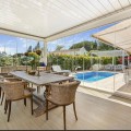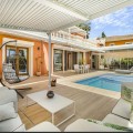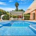 - Stunning Italian style villa ideal for a family. This immaculate home is furnished to luxury standard and is situated within a 3 minute drive of the Golden Mile in a quiet area. Impressive hall area with guest toilet leading to the main living room with fireplace. On one side is a private office room, on the other side a beautiful fully fitted kitchen with breakfast area and access to the front terrace with large dining area which has glass curtains. Swimming pool outdoor seating area, barbecue and wraparound garden area. On this level there is a double bedroom en-suite and guest toilet. The 1st floor contains the master suite with walk in dressing room, plus a good sized bedroom suite with private study and leisure room. The basement level has a double bedroom en-suite and a superbly fitted out large cinema and games room with gym equipment. Also on this level a sauna and power shower and toilet and a utility room with access to the garage. The property is in pristine condition and has high quality fittings and appliances throughout. Property highlights Luxurious Italian-style villa perfect for families Prime location within a 3-minute drive of the Golden Mile Spacious living room adorned with a fireplace Outdoor amenities include a swimming pool, seating area, barbecue space, and a well-maintained wraparound garden Ground floor features a double bedroom with an en-suite bathroom and a guest toilet Master suite with a walk-in dressing room and a private study and leisure room A state-of-the-art cinema and games room equipped with gym facilities, sauna, power shower, toilet, and a utility room with garage access Impeccably maintained property with top-tier fittings and appliances, ensuring a luxurious living experience Alarm Amenities near Barbeque Basement Cinema room Close to schools