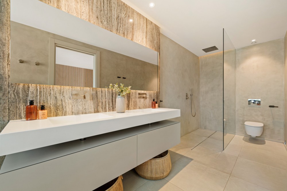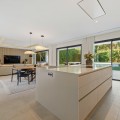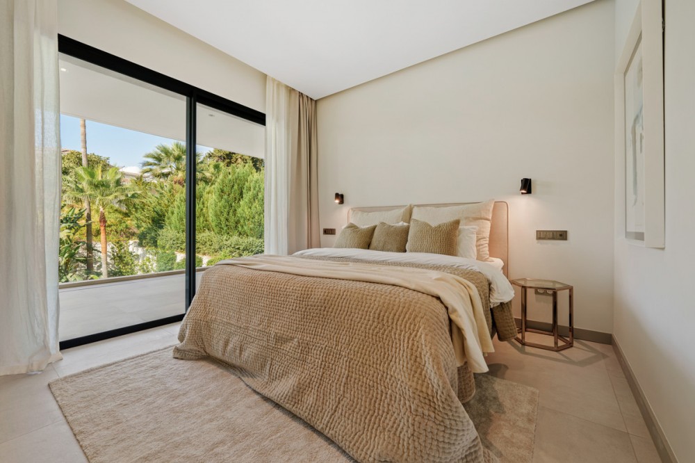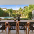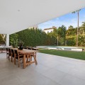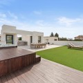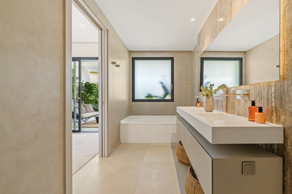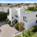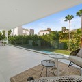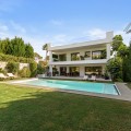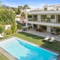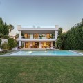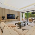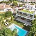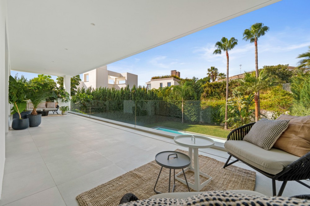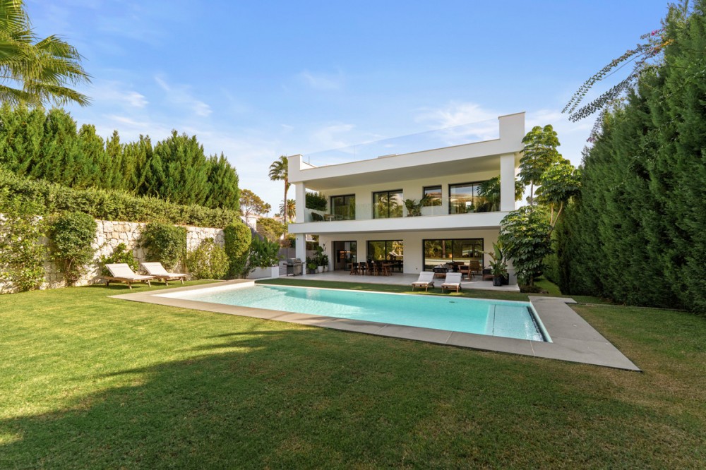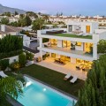 - Located in the sought-after area of Nueva Andalucía, just minutes from Puerto Banús, Villa Jardin is a beautifully presented contemporary villa combining style, comfort, and functionality. The home features open-plan living areas with large sliding doors that seamlessly connect the interior with the outdoor spaces. Natural light fills the spacious lounge and dining areas, while the modern kitchen is equipped with sleek cabinetry and a generous island for casual dining. The property offers multiple stunning terraces and a private garden with a pool, creating the perfect setting for relaxation and entertaining. The rooftop solarium adds an exceptional touch, complete with a jacuzzi, outdoor dining area, and built-in barbecue, all framed by panoramic views of the surrounding neighbourhood. Each bedroom is designed with sophistication and warmth, featuring fitted wardrobes and elegant ensuite bathrooms. Additional highlights include a private cinema and entertainment room, a fully equipped home gym, and a secure private garage. Villa Jardin is an ideal modern residence in one of Marbella’s most desirable locations, offering refined living close to beaches, golf, and all amenities.