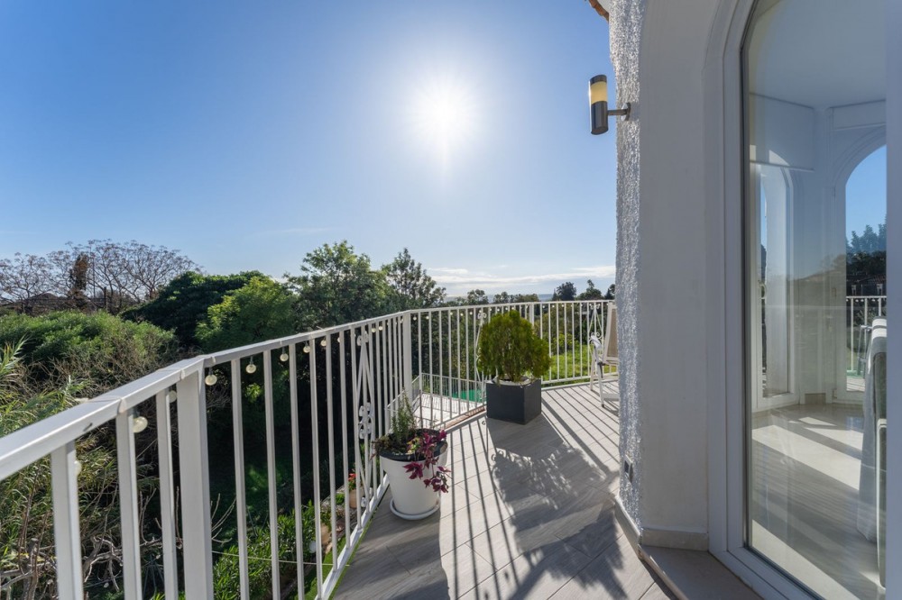 • Charming Fully Renovated Villa with Stunning Views and Ideal Location in Mijas This beautifully reformed 3-bedroom, 3-bathroom en-suite villa offers the perfect combination of tranquility and convenience. Just minutes from the picturesque whitewashed village of Mijas Pueblo and a short 5-minute drive to Fuengirola’s golden beaches, this home provides effortless access to the best of the Costa del Sol. A nearby bus stop enhances everyday convenience. The bright and airy living room features floor-to-ceiling windows that flood the space with natural light and showcase breathtaking views. Next to it is a newly renovated, fully fitted kitchen with an island and a charming dining area, ideal for memorable gatherings. A cozy sunroom extends from the kitchen, providing a perfect spot to enjoy the stunning surroundings year-round. From here, step out onto a wrap-around terrace—perfect for relaxing while taking in the panoramic scenery. The lower level boasts a private master suite with a stylish bathroom, fitted wardrobes, and a spacious layout offering complete privacy. Nearby, a functional laundry/storage room enhances daily convenience and provides direct access to the garage and outdoor area. Another generously sized en-suite guest bedroom is also on the lower level, ensuring both comfort and privacy for visitors. At the base of the stairs, you’ll find direct access to the pool, as well as a versatile office space—ideal for remote work or personal projects. Designed for both relaxation and entertainment, the outdoor area includes a private pool, a covered carport, a garage, and a gated driveway with additional parking. Blending charm, modern amenities, and a prime location, this villa is a rare find in the heart of the Costa del Sol. Don’t miss the opportunity to make it yours—contact us today for more information!