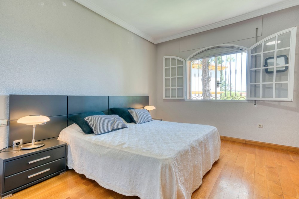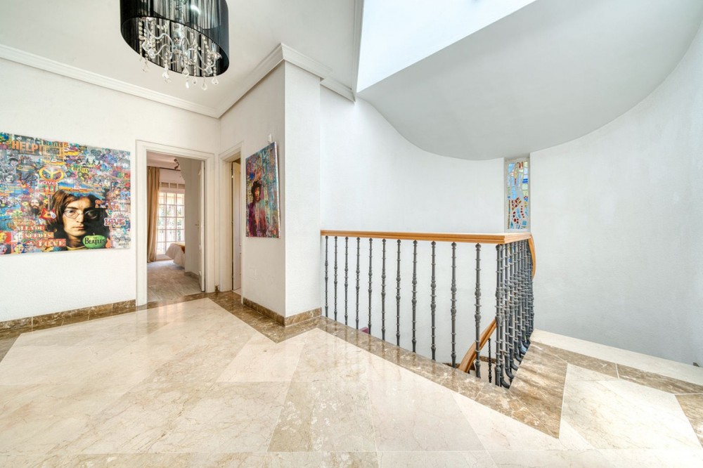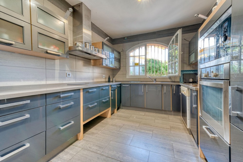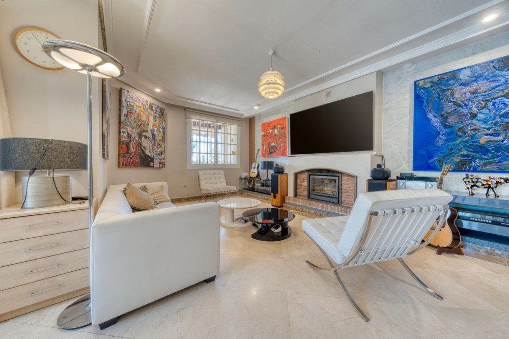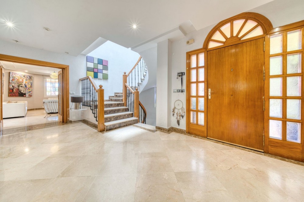 - Detached villa in El Coto, Mijas – Style, privacy and a privileged location Located in one of the most exclusive residential areas of Mijas Costa, this magnificent villa offers a peaceful and family-friendly environment, just a few minutes from the centre of Fuengirola, renowned schools, green areas and all essential amenities. An ideal property for those seeking comfort, space and quality of life on the Costa del Sol. Main features • Type: Detached house or villa • Built area: 447 m² • Usable area: 400 m² • Plot: 800 m² • Year of construction: 1989 • Condition: Excellent condition Interior layout • 4 spacious bedrooms, all with natural light and fitted wardrobes. • 3 full bathrooms, one of which is en suite to the master bedroom. • Large living-dining room with high ceilings, fireplace and direct access to the terrace and garden. • Library or reading room, ideal as an office or work area. • Separate, fully equipped kitchen with modern appliances, dining area and pantry. • Storage room and laundry area. Exterior and leisure areas • Private garden with established vegetation and automatic irrigation. • Private swimming pool with complete privacy, perfect for enjoying the Mediterranean climate. • Large terrace and barbecue area, ideal for family gatherings or outdoor dinners. • Private garage with space for several vehicles. Facilities and extras • Air conditioning. • High-quality flooring. • Large windows that provide natural light throughout the day. • Sunny orientation. • Property ready to move into. Location Located in El Coto (Mijas), a residential area highly valued for its tranquillity and proximity to: • Schools, supermarkets, pharmacies and restaurants. • Quick access to the A-7 motorway and AP-7 motorway. • Only 5 minutes by car from the centre of Fuengirola and its beaches. • Close to golf courses, bus and train stations. If you are looking for a spacious villa with privacy in one of the best areas of Mijas, this is your opportunity. Contact us today for more information or to arrange a private viewing.