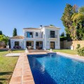 - Luxury Frontline Golf Villa – 5 Bedrooms, 4 Bathrooms - Mijas Golf This immaculate luxury villa sits proudly on the 15th hole of the prestigious Los Olivos Golf Course, offering spectacular panoramic views and an unbeatable lifestyle. Set on an 800 m² secure, private plot, the home enjoys a South to South-East orientation, ensuring beautiful morning light and all-day sunshine. Spread across three levels, the villa has recently undergone extensive internal and external upgrades, enhancing its modern, inviting feel. Main Level The entry floor provides seamless single-level living with an emphasis on entertainment and comfort. A bright lounge and dining area feature elegant dividing doors, allowing for either an open-plan layout or a cosy, intimate atmosphere. Both spaces flow directly onto the manicured gardens, infinity pool, and breathtaking golf views. The newly renovated kitchen is fitted with premium Smeg appliances, multiple coolers, a wine fridge, and a separate utility room equipped with brand-new washing machines and dryer. The utility room opens onto its own private terrace. This level also includes two spacious bedrooms, one with an ensuite bathroom, both with large patio doors offering direct access to the garden. A stylish guest WC completes this floor. Upper Level Upstairs you will find two beautifully appointed master suites, each with its own bathroom and access to a large shared terrace—perfect for enjoying the stunning surroundings. Marble flooring flows throughout, complemented by air conditioning in every room and a feature fireplace in the lounge. Lower Level / Basement Completely renovated, this level is designed for entertainment and relaxation. It features a fully fitted kitchen, large TV screens, and generous space for gatherings with family and friends. A gym, a spacious master bedroom with ensuite, and two storage rooms are also found on this floor. The private garage comfortably accommodates three vehicles. Additional Features Infinity pool with frontline golf views Recently painted inside and out Secure detached villa Move-in ready, no work required Modern, spacious, and ideal as a full-time residence or luxury holiday home A truly exceptional home offering space, comfort, and first-line golf living at its finest. Viewings at your convenience—contact us today!