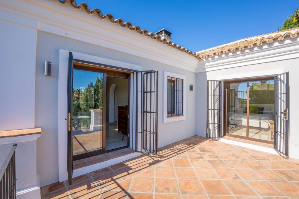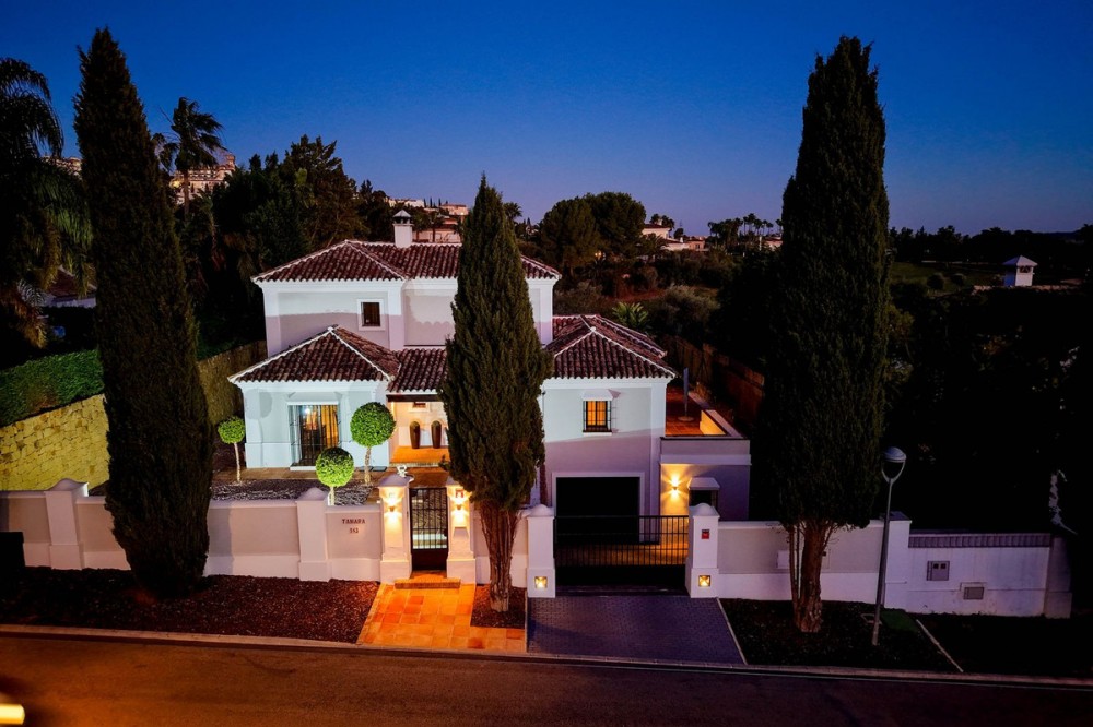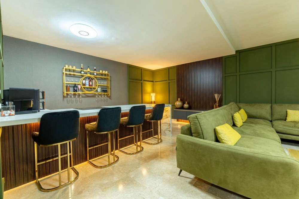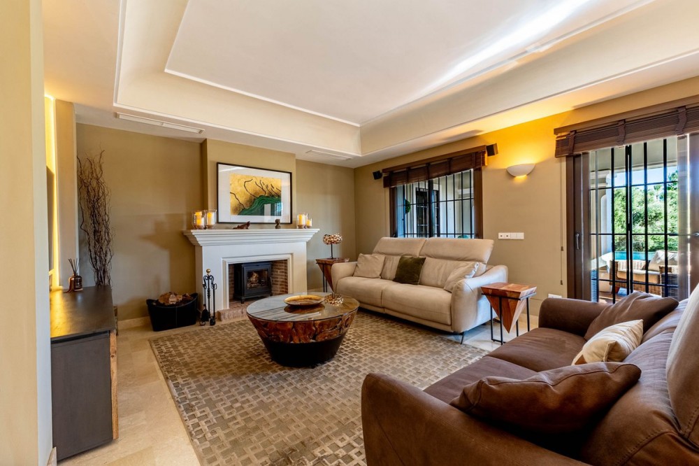 - Luxury Frontline Golf Villa – 5 Bedrooms, 4 Bathrooms - Mijas Golf This immaculate luxury villa sits proudly on the 15th hole of the prestigious Los Olivos Golf Course, offering spectacular panoramic views and an unbeatable lifestyle. Set on an 800 m² secure, private plot, the home enjoys a South to South-East orientation, ensuring beautiful morning light and all-day sunshine. Spread across three levels, the villa has recently undergone extensive internal and external upgrades, enhancing its modern, inviting feel. Main Level The entry floor provides seamless single-level living with an emphasis on entertainment and comfort. A bright lounge and dining area feature elegant dividing doors, allowing for either an open-plan layout or a cosy, intimate atmosphere. Both spaces flow directly onto the manicured gardens, infinity pool, and breathtaking golf views. The newly renovated kitchen is fitted with premium Smeg appliances, multiple coolers, a wine fridge, and a separate utility room equipped with brand-new washing machines and dryer. The utility room opens onto its own private terrace. This level also includes two spacious bedrooms, one with an ensuite bathroom, both with large patio doors offering direct access to the garden. A stylish guest WC completes this floor. Upper Level Upstairs you will find two beautifully appointed master suites, each with its own bathroom and access to a large shared terrace—perfect for enjoying the stunning surroundings. Marble flooring flows throughout, complemented by air conditioning in every room and a feature fireplace in the lounge. Lower Level / Basement Completely renovated, this level is designed for entertainment and relaxation. It features a fully fitted kitchen, large TV screens, and generous space for gatherings with family and friends. A gym, a spacious master bedroom with ensuite, and two storage rooms are also found on this floor. The private garage comfortably accommodates three vehicles. Additional Features Infinity pool with frontline golf views Recently painted inside and out Secure detached villa Move-in ready, no work required Modern, spacious, and ideal as a full-time residence or luxury holiday home A truly exceptional home offering space, comfort, and first-line golf living at its finest. Viewings at your convenience—contact us today!