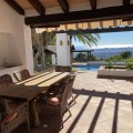 • A STUNNING VILLA, IN ONE OF THE MOST COVERTED LOCATIONS IN MIJAS. ONE OF THE FINEST RESIDENCIES TO COME TO MARKET IN RECENT TIMES. PANORAMIC SEA VIEWS AND TOTAL PRIVACY. ONE OF THE BEST VIEWS TO BE HAD ON THE COAST! South orientation, secure gated and car port parking. AT A GLANCE 3/4 LARGE DOUBLE BEDROOMS 4 BATHROOMS - ALL EN SUITE IMMACULATE CONDITION THROUGHOUT RENOVATED TO A HIGH STANDARD POTENTIAL TO ENLARGE SUPERB LANDSCAPED GARDENS Electric gates leading to a sweeping driveway and an upper car parking area for 4 vehicles. Lower level double car port and additional hard standing. Entrance porch leading to a reception lobby, storage and a cloakroom. Superb open plan lounge with vaulted and beamed ceilings and a dramatic, full height feature chimney and fireplace. Adjacent to the lounge is a formal dining area with access, via large double doors, to a large covered terrace with a built in barbecue and newly fitted summer kitchen. This is an amazing place to entertain and to enjoy al fresco dining at its best, while soaking in the astonishing views beyond. Off the dining area is a fully fitted, high quality kitchen/breakfast room with granite work surfaces, breakfast bar and an American style fridge/freezer. Neighboring the kitchen is a breakfast area, additional storage and a wine cooler. Split level to the lounge is a mezzanine level which is currently used as a TV room and study. Equally this area could be used as an additional bedroom. Off the reception hallway steps lead to the first of the double guest bedrooms. This is a delightful room with access to the garden and boasting a large en suite with a free standing egg bath, twin wash hand basins and a large walk in shower. Off the bedroom is a large walk in wardrobe. Leading from the dining area is an expansive Master bedroom with a luxury en suite with twin wash hand basins and a large walk in shower. Split level to the sleeping area is a large sitting area and a range of wardrobes. Just a few steps down from the dining area leads to a further large guest bedroom with direct access to the garden and a further high quality en suite, again with twin wash hand basins and a large walk in shower. Leading from the kitchen there is external access that leads to a storage room, and also to a larger self contained area which is currently used for storage with an en suite bathroom. This area could easily be converted to become a small, self contained apartment. On the other side of the kitchen a door takes you to a covered walkway that leads to the car port. This area could very easily be converted into a further bedroom en suite and also enjoys the most spectacular of views. A new car port area could easily be erected at the end of the driveway. OUTSIDE The large garden affords total privacy whilst encapsulating the amazing country, mountain and sea views. The garden is a special feature of this unique property. It is a sylvan paradise set amidst a plethora of mature plantings, too numerous to list. Parts of the garden are a myriad of parkland style pathways with wonderfully cared for borders and natural stone walls. Majestic palms soar into the blue haven and all that can be heard is birdsong. Further covered and uncovered terraces make this a place ideal for extensive entertaining. The 10m x 4m pool is serviced by a thatched cabana and further seating areas. Further store rooms and gardeners’ space complete the outside areas. ADDITIONAL FEATURES GAS CENTRAL HEATING (not used by the current owner) AUTO IRRIGATION TO THE GARDEN BUILT IN WARDROBES AIR CONDITIONING - HOT/COLD UNDER FLOOR HEATING TO THE BATHROOMS CERAMIC TILED FLOORS ALARM SYSTEM LOCATION This beautiful villa is located in a prestigious, villa only urbanisation very close to the white washed and historical village of Mijas and just a short drive to the vibrant beach resort of Fuengirola. The villa is sold fully and tastefully furnished, subject to an agreed and signed inventory. We cannot recommend more highly the viewing of this exceptional residence which will appeal to the most discerning of buyers. DRIVING TIMES MIJAS VILLAGE 2 MINUTES FUENGIROLA/BEACH 8 MINUTES MALAGA 20 MINUTES MARBELLA 25 MINUTES