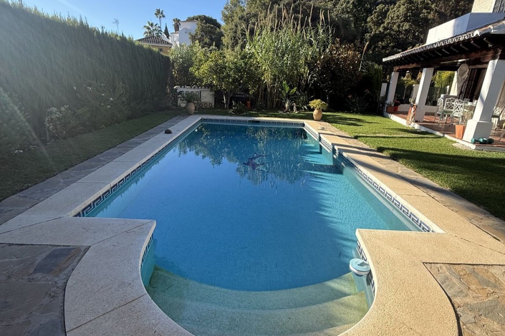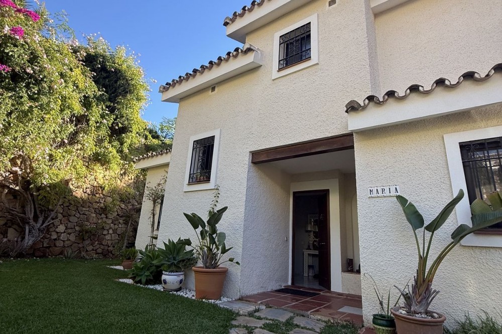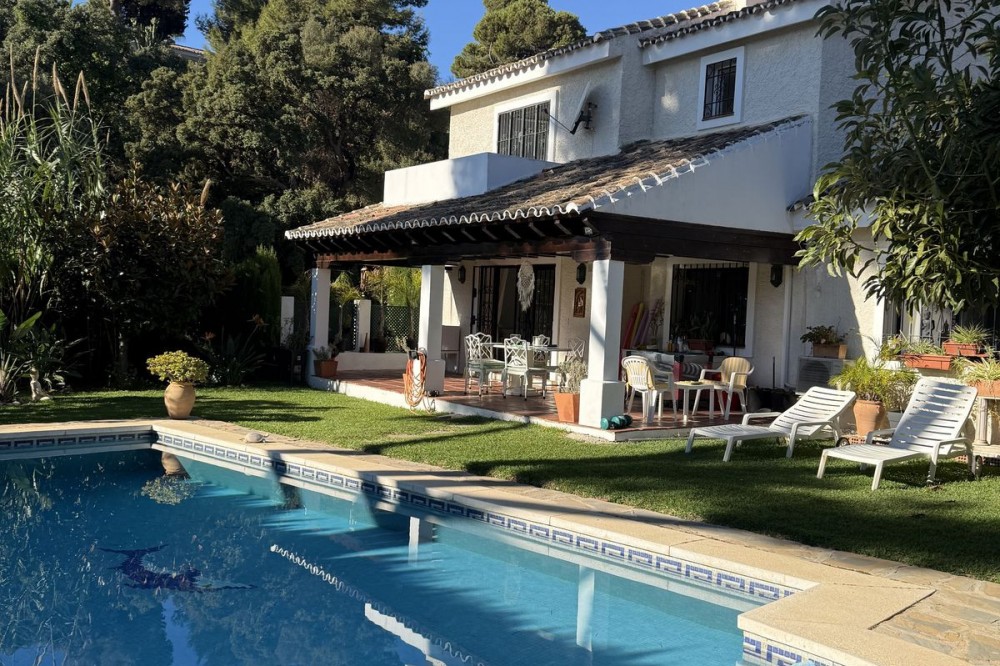 - Nestled in the heart of Calahonda, Mijas, this captivating detached villa offers a harmonious blend of comfort and elegance. Boasting four spacious bedrooms and two well-appointed bathrooms, Each bedroom is a sanctuary of comfort, designed to provide a restful retreat after a day of exploring the vibrant surroundings. this home is designed for those who appreciate luxury and style. As you step inside, you are greeted by a Grand Entrance lobby flooded with natural light and high ceilings, from here you have access to your generously sized living-dining area that serves as an inviting space for family gatherings or intimate evenings by the warm fireplace. The fully fitted kitchen is perfect for culinary adventures, with modern appliances and ample storage catering to both everyday cooking and elaborate dinner parties.while the inviting terrace beckons for al fresco dining under the stars. Step outside to discover your own private oasis With lush gardens and a large private pool, this home is not just a residence but a personal oasis where you can unwind and recharge, making every day feel like a holiday. Embrace the laid-back lifestyle that the Costa del Sol is renowned for, where every moment is an opportunity to savor the beauty of your surroundings. Practicality meets convenience with both a secure garage which offers plenty of storage solutions and your own off street private parking, Situated in one of the most sought-after locations on the coast enjoy easy access to pristine beaches, vibrant local dining and an array charming shops just moments away. This villa does not just offer a place to live but invites you to experience a lifestyle brimming with sunshine and tranquillity—truly the quintessential Costa del Sol experience.