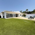 - Introducing this elegant single-level villa, ideally situated in one of the most exclusive areas of San Pedro Alcántara. Designed with a perfect balance of comfort, quality and privacy, it offers refined living in a prime location. Clean architectural lines, abundant natural light and high-standard finishes create a bright, welcoming atmosphere throughout. The villa features three spacious bedrooms, each with its own en-suite bathroom and built-in wardrobes. The living room, complete with a designer fireplace, flows seamlessly into a fully equipped open-plan kitchen — an inviting space for both everyday living and entertaining. Smart home technology allows remote control of lighting and heating, while marble floors and underfloor heating provide comfort year-round. Highlights: - Private 8x4 m swimming pool - Private rooftop terrace for sunbathing & panoramic vistas - Closed garage for two cars Located in a quiet, secure area just minutes from the beach, renowned golf courses and fine restaurants, this villa offers an exceptional opportunity — whether as a main residence or a valuable investment.