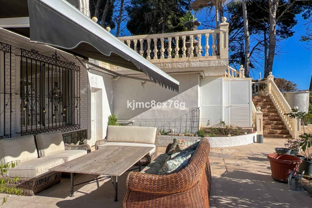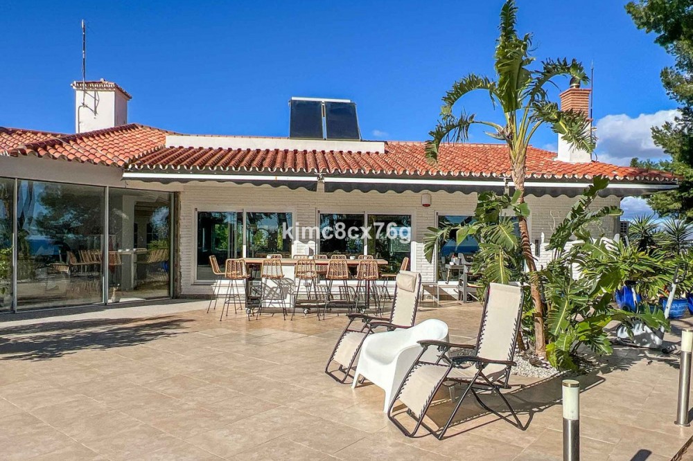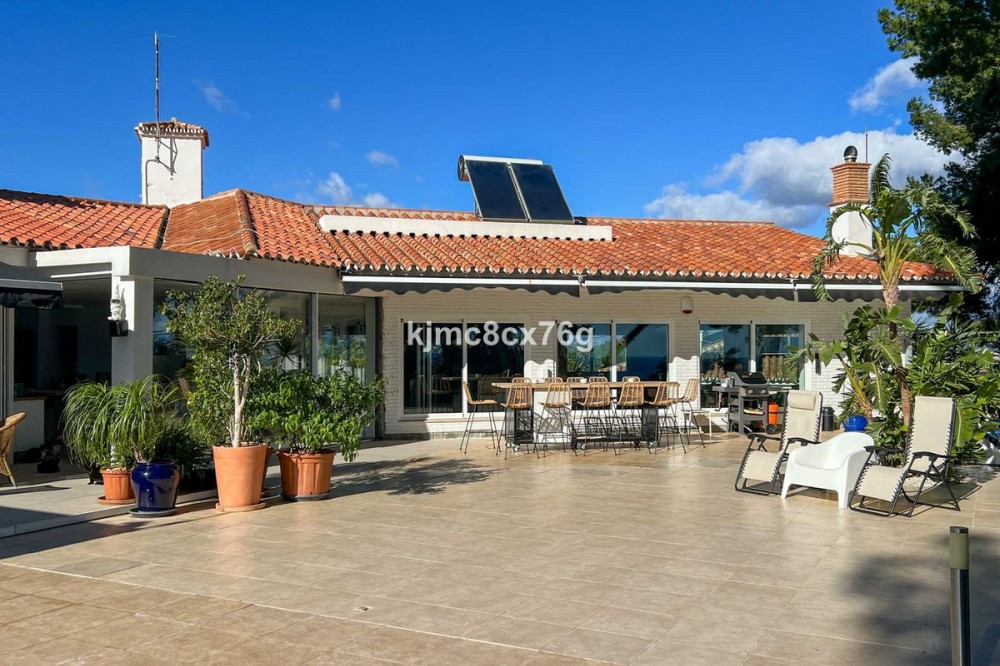 - FOR SALE – EXCLUSIVE VILLA WITH PANORAMIC SEA VIEWS AND TOTAL PRIVACY IN THE HEART OF THE COSTA DEL SOL This elegant villa is located in the elevated residential area of El Pinar, Torremolinos. It offers a rare combination of privacy, space, comfort, and stunning open views of the Mediterranean. The home is part of a quiet and secure community, surrounded by greenery, yet close to all services. The views from every corner of the house are unobstructed, stretching over the coastline and out to sea. The Mediterranean-style architecture has been fully renovated to merge indoor and outdoor spaces, allowing natural light and the landscape to become part of everyday life. On the ground floor, there is a fully independent guest apartment with two bedrooms, a bathroom with walk-in shower, a fully equipped kitchen, and a comfortable living-dining room with fireplace. Large windows open directly onto the garden, enhancing natural light and openness. The main residence welcomes you with a spacious entrance hall leading into a bright, expansive living room with high ceilings, a central fireplace, and panoramic windows. The master bedroom features a walk-in closet and en-suite bathroom with both a jacuzzi and a walk-in shower. There is also a guest toilet on this level. The kitchen is fully equipped and features a central island, opening onto a large terrace through sliding doors. This outdoor space connects seamlessly with the pool, covered porch, and a glazed chill-out area with an outdoor kitchen and barbecue, ideal for use year-round. The opposite wing of the ground floor includes four additional bedrooms with built-in wardrobes, three bathrooms with showers, a laundry room, and a large storage room connected directly to the two-car garage. The villa sits on a plot of nearly 2000 square metres with mature gardens and space for a vegetable garden, sports area or simply relaxing outdoors in complete privacy. Additional features include marble floors throughout the house, ceramic outdoor tiling, sliding PVC windows, several fireplaces, hot and cold air conditioning in all rooms, solar panels, ADSL and wifi, jacuzzi, outdoor kitchen, enclosed garage, and private garden. A home with personality, elegance and unbeatable views in one of the most desirable areas of the Costa del Sol.