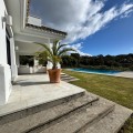 - This stunning villa, built with the finest materials, is set on a spacious 2,120 sq. m. plot. It features a range of high-end amenities including air conditioning, underfloor heating, pre-installation for a premium home automation system, and a fully equipped kitchen. Upon entering, you’re welcomed by a grand entrance hall with expansive double-height ceilings that create a sense of openness and sophistication. Thanks to its perfect southeast orientation, the home is filled with natural light throughout the day. From the hall, a staircase leads to the first floor, where you'll find three beautifully appointed bedrooms, two of which have en-suite bathrooms. The villa includes a complete renovation and interior design project by the renowned Fran Silvestre Arquitectos. The new layout features a fully renovated kitchen seamlessly integrated with an open-plan dining area overlooking the pool. The living room suite boasts breathtaking panoramic views of the lush garden and surrounding oak forest. Additional features include a separate, accessible laundry area, another en-suite bathroom, and a storage room—making this a perfect home for family living. On the ground floor, two more generously sized bedrooms provide comfort and space for residents and guests alike. This villa is a true masterpiece that merges contemporary design with the beauty of nature, offering a luxurious and peaceful lifestyle.