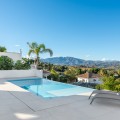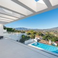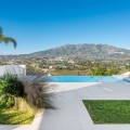 - CONTEMPORARY LUXURY VILLA WITH PANORAMIC VIEWS – BUILT 2024 Welcome to this spectacular newly built contemporary villa, a masterpiece of modern design and comfort completed in 2024. Positioned to capture sweeping panoramic views of the valley, mountains, and the Mediterranean Sea, this residence offers exceptional privacy paired with elegant, light-filled living spaces. MAIN LEVEL – OPEN PLAN LIVING & SEAMLESS INDOOR-OUTDOOR FLOW The entry level features a spacious lounge and an open-plan designer kitchen with floor-to-ceiling windows that frame the stunning mountain scenery. From here, the living spaces extend naturally toward the meticulously landscaped garden and the heated saltwater infinity pool. This level also includes a generous guest suite with an en-suite bathroom, as well as a stylish guest toilet. A private elevator connects all floors of the home. UPPER LEVEL – LUXURY BEDROOM SUITES & PANORAMIC TERRACES Upstairs, you’ll find two expansive bedroom suites, each with its own en-suite bathroom and direct access to a large terrace offering breathtaking views. A separate south-facing terrace leads to a spiral staircase taking you up to the impressive roof terrace. ROOF TERRACE – 360° VIEWS & COMPLETE PRIVACY The spacious rooftop solarium boasts uninterrupted 360-degree views of the valley, mountains, and the sea. It is an ideal space for installing a jacuzzi, creating a chill-out lounge, or simply enjoying peaceful sunsets in total privacy. LOWER LEVEL – FLEXIBLE SPACE & GENEROUS GARAGE The ground floor offers abundant additional space, including storage rooms, a laundry room, utility room, and a large garage accommodating more than four cars. This level also presents exciting possibilities for personalization: transform part of the space into a cinema room, gym, wine cellar, or even an independent guest apartment. OUTDOOR LIVING – DESIGNED FOR SUN, SHADE & RELAXATION The exterior has been thoughtfully planned with multiple areas for dining, relaxing in the shade, or sunbathing by the heated infinity pool. The eco-friendly pool features an electric cover that harnesses solar energy to naturally warm the water. FEATURES – High-quality materials throughout – Smart home system controlled via mobile app – Heated saltwater infinity pool with solar-assisted cover – Elevator to all floors – Extensive terraces including a full 360° roof terrace This villa combines striking contemporary architecture with top-tier functionality, creating a luxurious private retreat designed for modern living at its finest. Distances: Airport 25 min, 30Km Shopping Center Miramar 8 min, 4,4Km Fuengirola 15 min , 6Km Beach 9 min, 5Km Marbella 30 Min, 28Km Malaga Center 40 min, 38Km.