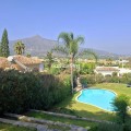 - Nestled in a tranquil spot in the heart of Marbella’s prestigious Golf Valley, this beautifully presented Andalusian-style villa, full of traditional beauty and privacy all around the property. Located in the sought-after area of Las Brisas, Nueva Andalucía, the home boasts breathtaking views of the iconic La Concha Mountain and is just minutes from top standard amenities, golf courses and Marbella’s golden beaches. Set on a generous plot over 1.370sqm with a private garden and swimming pool, this characterful property features a unique layout that floods all the interiors with privacy across its spaces. Exposed wooden beams, a striking double-sided fireplace, and rustic finishes lend the villa a warm, timeless ambiance. The main house comprises five spacious bedrooms and four bathrooms, complemented by multiple terraces perfect for alfresco dining and relaxing under the Mediterranean sun. The inviting living areas include a large lounge, a formal dining room with floor-to-ceiling glass doors opening to the terrace, and a fully equipped kitchen. For added flexibility, the property includes a self-contained one-bedroom guest apartment with a living area and bathroom—ideal for guests, staff, or multi-generational living—as well as a separate studio with an en-suite bathroom that could serve as a home office or creative space. Additional features include a garage, ample outdoor parking, a laundry room, and beautifully landscaped gardens. Whether as a full-time residence, holiday home, or investment, this villa is a true gem in one of Marbella’s most desirable neighbourhoods.