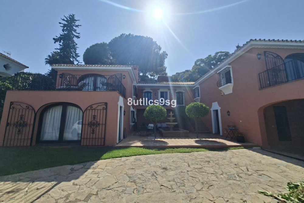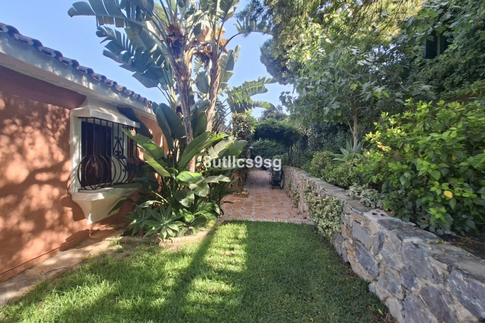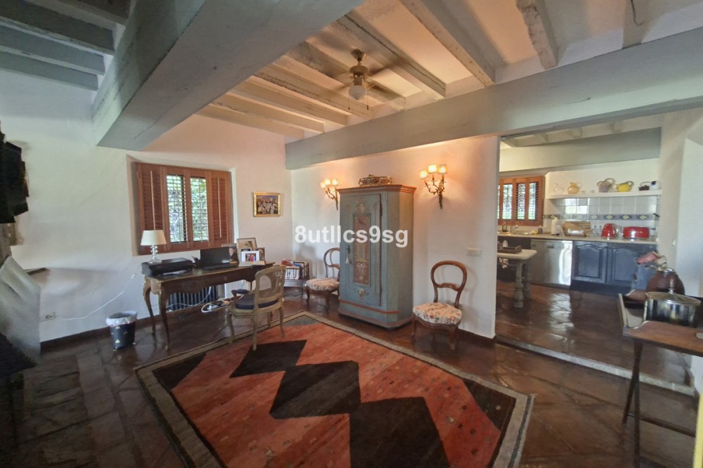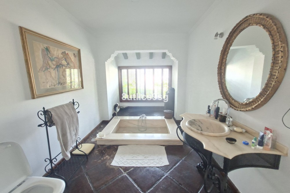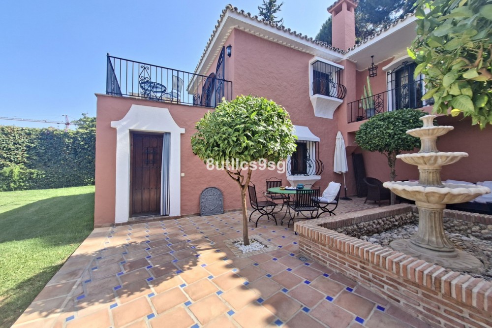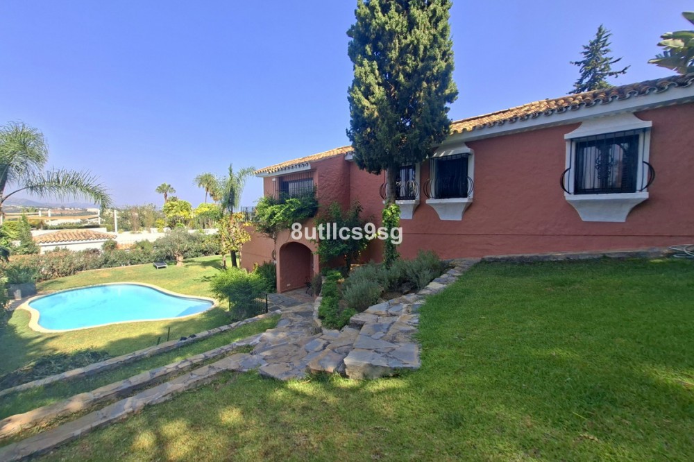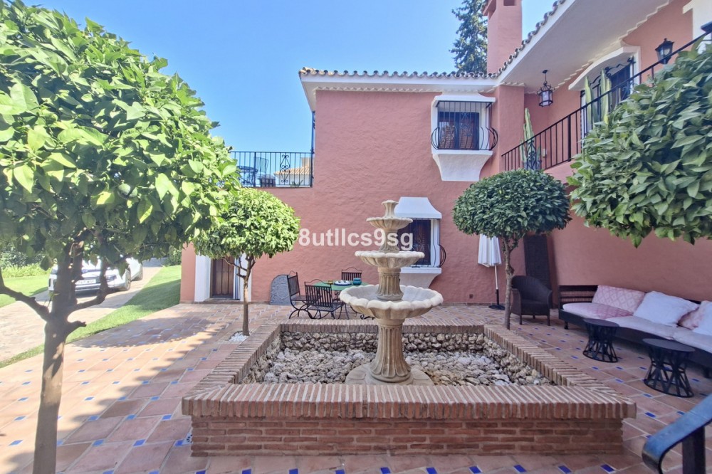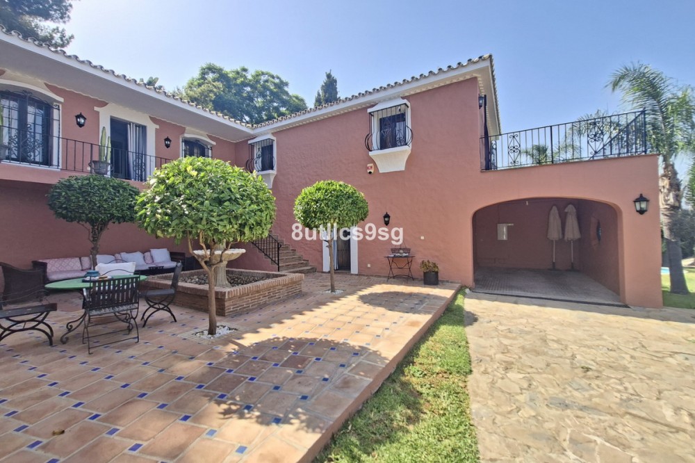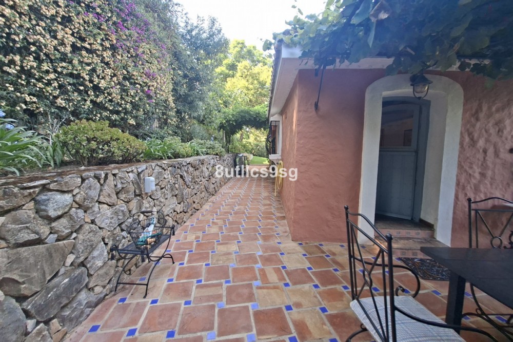 - Nestled in a tranquil spot in the heart of Marbella’s prestigious Golf Valley, this beautifully presented Andalusian-style villa, full of traditional beauty and privacy all around the property. Located in the sought-after area of Las Brisas, Nueva Andalucía, the home boasts breathtaking views of the iconic La Concha Mountain and is just minutes from top standard amenities, golf courses and Marbella’s golden beaches. Set on a generous plot over 1.370sqm with a private garden and swimming pool, this characterful property features a unique layout that floods all the interiors with privacy across its spaces. Exposed wooden beams, a striking double-sided fireplace, and rustic finishes lend the villa a warm, timeless ambiance. The main house comprises five spacious bedrooms and four bathrooms, complemented by multiple terraces perfect for alfresco dining and relaxing under the Mediterranean sun. The inviting living areas include a large lounge, a formal dining room with floor-to-ceiling glass doors opening to the terrace, and a fully equipped kitchen. For added flexibility, the property includes a self-contained one-bedroom guest apartment with a living area and bathroom—ideal for guests, staff, or multi-generational living—as well as a separate studio with an en-suite bathroom that could serve as a home office or creative space. Additional features include a garage, ample outdoor parking, a laundry room, and beautifully landscaped gardens. Whether as a full-time residence, holiday home, or investment, this villa is a true gem in one of Marbella’s most desirable neighbourhoods.