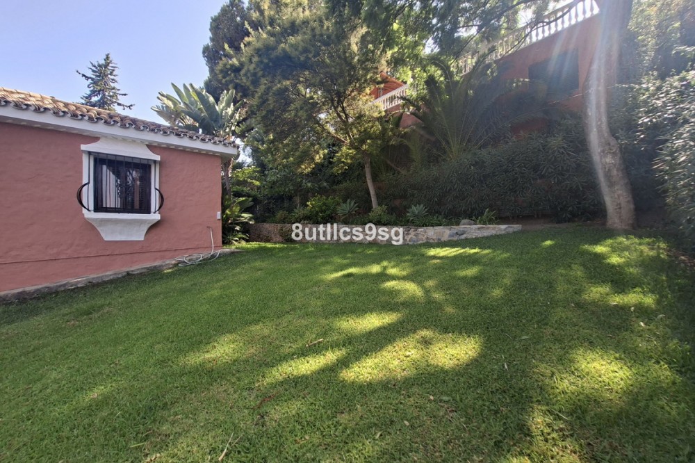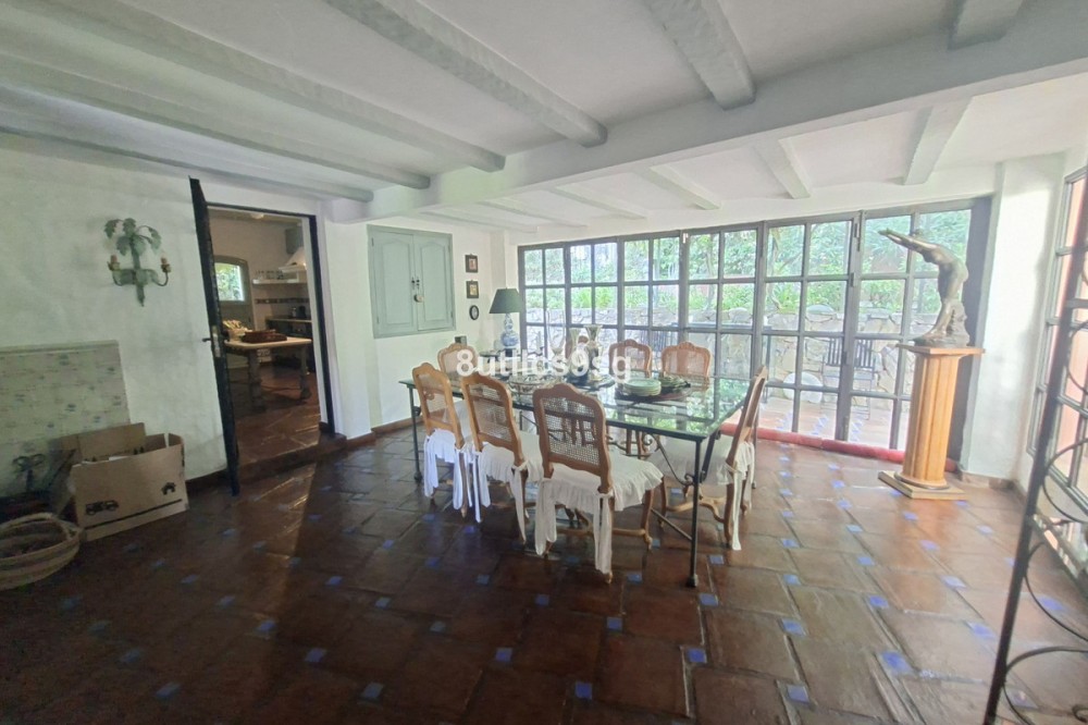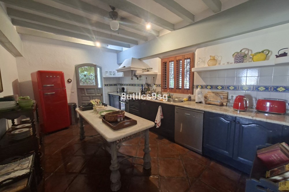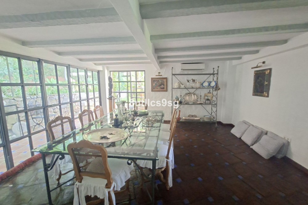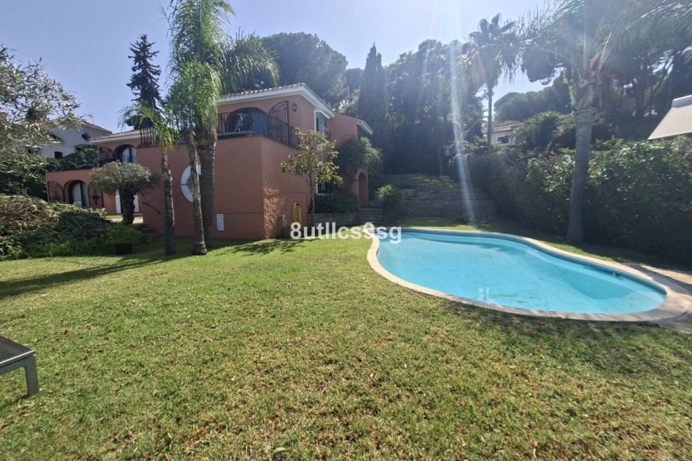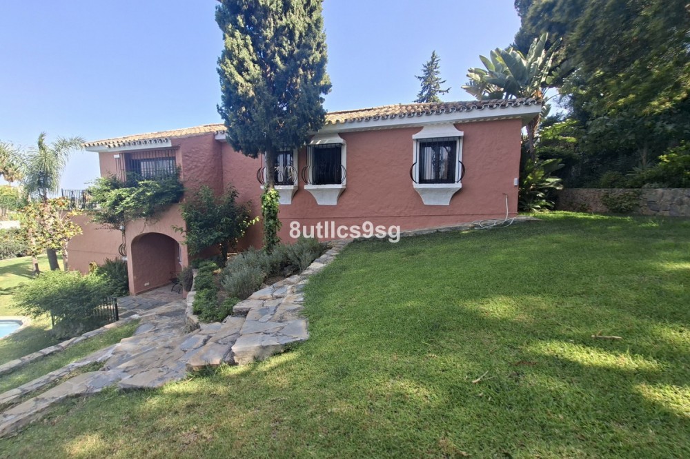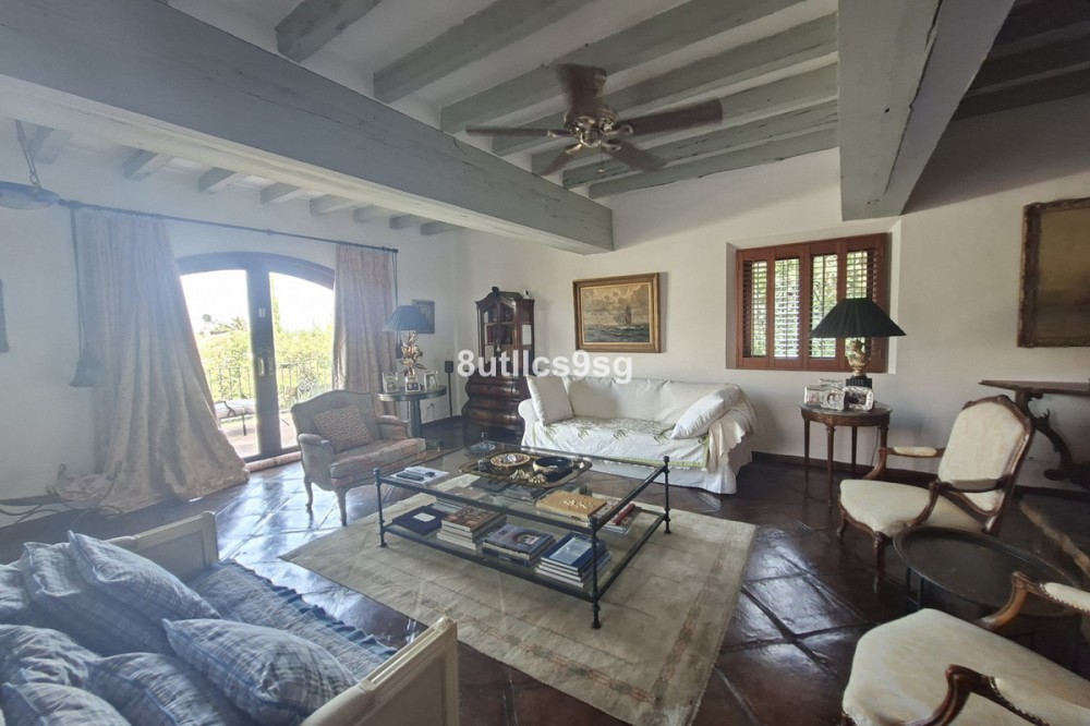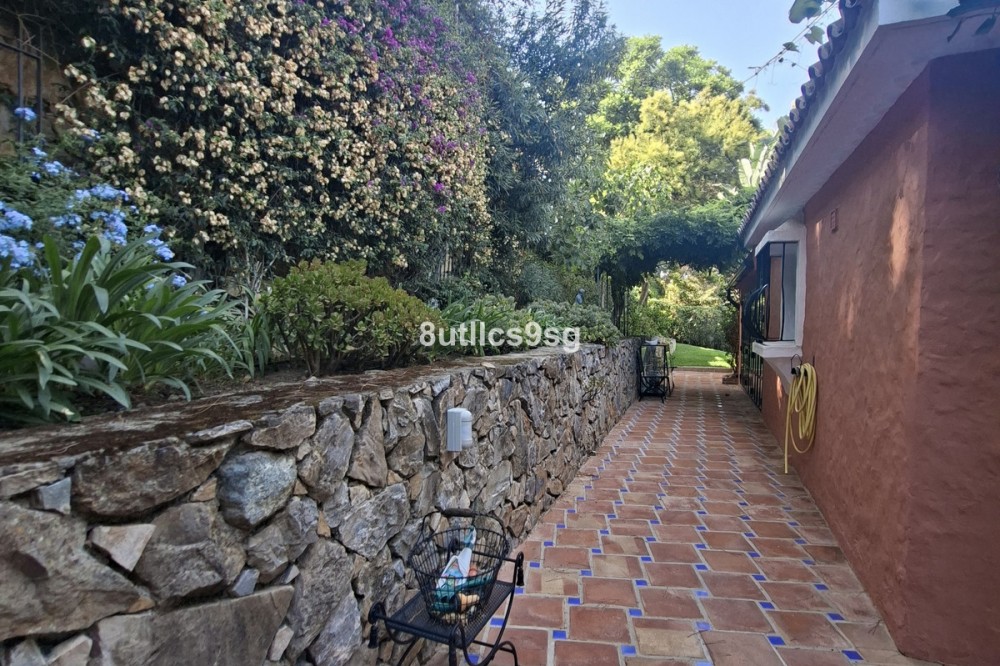 - Nestled in a tranquil spot in the heart of Marbella’s prestigious Golf Valley, this beautifully presented Andalusian-style villa, full of traditional beauty and privacy all around the property. Located in the sought-after area of Las Brisas, Nueva Andalucía, the home boasts breathtaking views of the iconic La Concha Mountain and is just minutes from top standard amenities, golf courses and Marbella’s golden beaches. Set on a generous plot over 1.370sqm with a private garden and swimming pool, this characterful property features a unique layout that floods all the interiors with privacy across its spaces. Exposed wooden beams, a striking double-sided fireplace, and rustic finishes lend the villa a warm, timeless ambiance. The main house comprises five spacious bedrooms and four bathrooms, complemented by multiple terraces perfect for alfresco dining and relaxing under the Mediterranean sun. The inviting living areas include a large lounge, a formal dining room with floor-to-ceiling glass doors opening to the terrace, and a fully equipped kitchen. For added flexibility, the property includes a self-contained one-bedroom guest apartment with a living area and bathroom—ideal for guests, staff, or multi-generational living—as well as a separate studio with an en-suite bathroom that could serve as a home office or creative space. Additional features include a garage, ample outdoor parking, a laundry room, and beautifully landscaped gardens. Whether as a full-time residence, holiday home, or investment, this villa is a true gem in one of Marbella’s most desirable neighbourhoods.