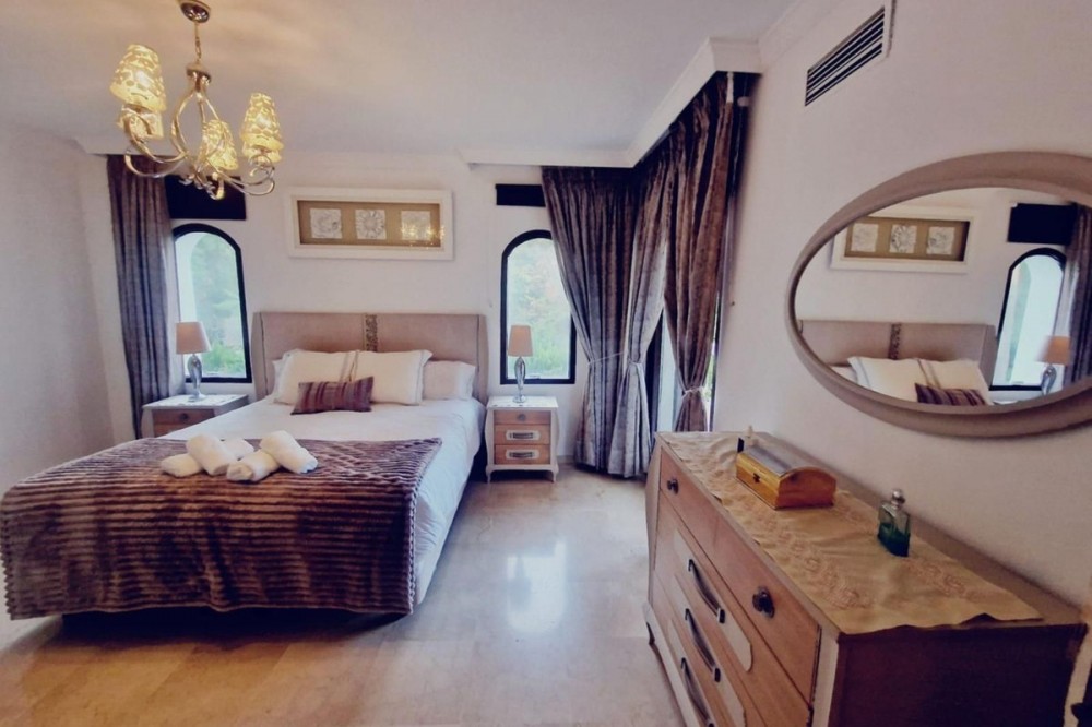 - Discover this spectacular Mediterranean-inspired villa, located in one of the most exclusive and peaceful areas of Benahavís. Surrounded by a lush garden and a charming 2,000 m² orchard, the property offers panoramic views of the golf course, mountains, and sea—creating a unique setting to fully embrace the Mediterranean lifestyle. The villa features 6 bright bedrooms, 4 of them with en-suite bathrooms, providing ideal flexibility both as a family residence and as a rental investment. The 152 m² ground floor includes a spacious living area with an open-plan kitchen, an elegant dining room, and inviting porches perfect for relaxing. Added to this are a refined Turkish hammam and a tastefully decorated covered terrace. The outdoor area is designed for enjoyment and entertaining: a barbecue area by the pool, expansive green spaces, and a serene path leading to the orchard with avocado and lemon trees—perfect for those who value nature and privacy. Located in the prestigious residential district of El Paraíso, this villa is close to renowned international schools and some of the best golf courses on the Costa del Sol. It also offers ample parking and a two-car garage. A peaceful retreat just minutes from the vibrant lifestyle of Puerto Banús and Marbella. A unique opportunity to make this Mediterranean gem your ideal home.