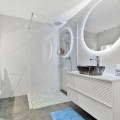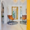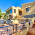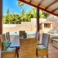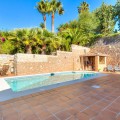 - Charming and well-maintained villa on one level in the quiet area of Campo Mijas only 3 km from the beach in Fuengirola. The villa is very private with a nice pool area with bar and large terrace areas. The garden is easy to maintain as it is mostly paved with stones but with nice flower beds with several fruit trees such as passion fruit, lemon, orange, pomegranate, mango and sweet, Spanish "nisperos". We enter the villa into a welcoming hall with wardrobe. To the left the living room opens up with space for a lounge group, dining table and fireplace and next to it we find the good-sized kitchen with kitchen island and dining area. From the kitchen you can access the social areas by the pool and there is also a back door to the laundry room and the tool shed which is located at the back of the house. The kitchen is fully equipped, also with a wine cooler. If we instead take the right from the hall we find the sleeping area with 2 smaller bedrooms, a bathroom with shower and the large master bedroom with en-suite bathroom and plenty of wardrobe space. The inner hall also has built-in wardrobes. The villa is located one floor up from the street. At street level there is a private garage with space for 1 car. Within walking distance there is a small supermarket, pizzeria, café and pharmacy and between 1.5 -2 km from the house there are several larger supermarkets and more services. It takes about 25 minutes to walk down to the center of Fuengirola. The house is equipped with an alarm and air conditioning in all three bedrooms. Must see! The villa has a registered tourist license.