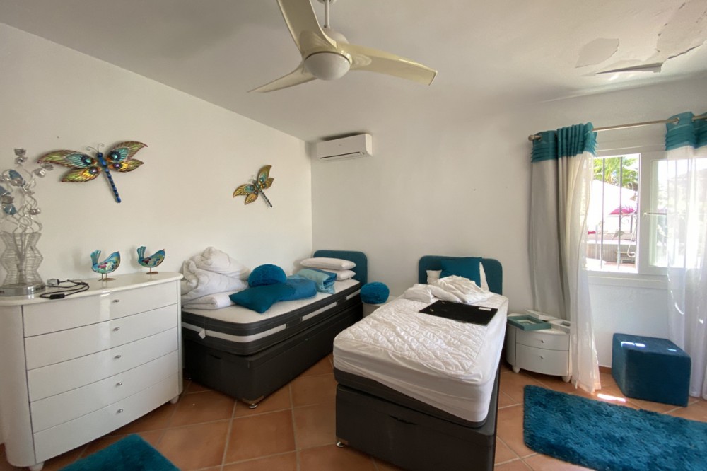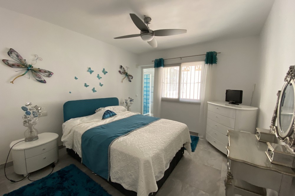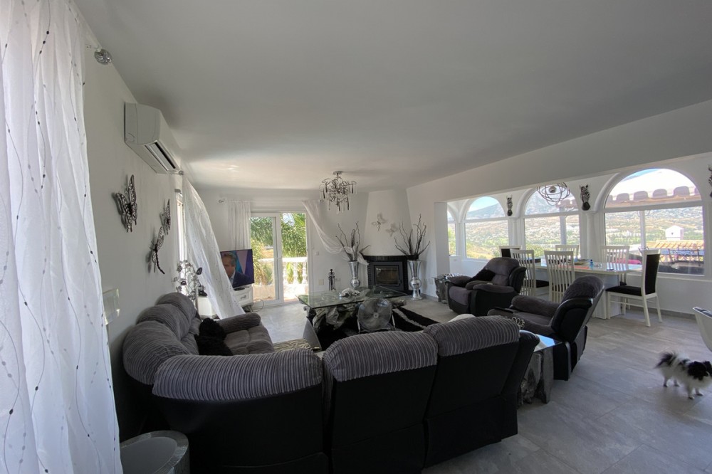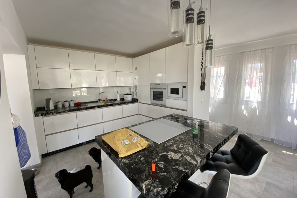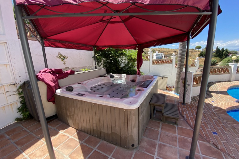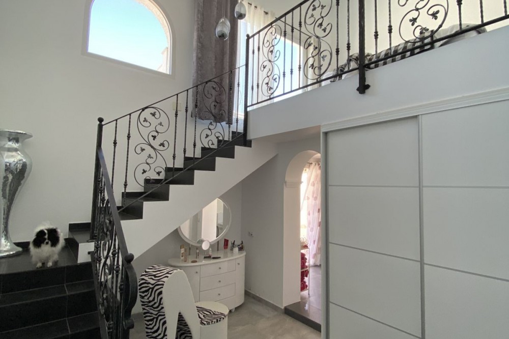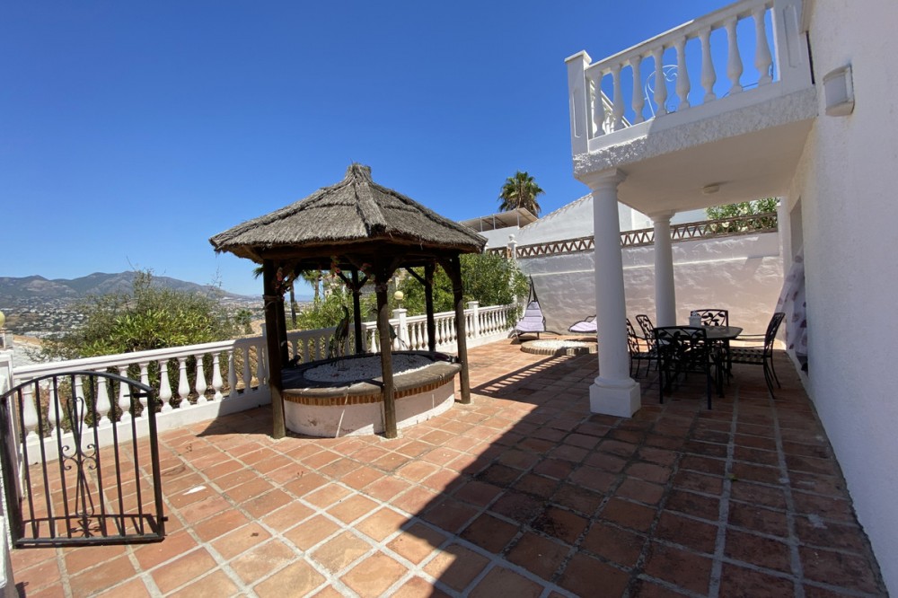 - Absolutely Stunning Villa in Cerros de Aguila on a large 897sqm plot with stunning panoramic views of Mijas Pueblo and surrounding countryside. The house is surrounded by plenty of outside spaces for quality outside living. The house itself has been recently renovated to a very high standard. The living area is open, spacious and bright with and open plan kitchen with easy access to outside dining space. There are two bedrooms also on this floor both ensuite with fitted wardrobes. The master bedroom has the top floor all to itself accessed by an elegant stairway from the spacious walk in wardrobe below. There is a self contained beautiful bright one bedroom apartment below with is own open plan Kitchen, entrance and access to the swimming pool area which has a raised shaded Patio area with Traditional Spanish barbecue area and Pool Table This property really is a must see key ready for holidays or permanent living