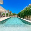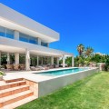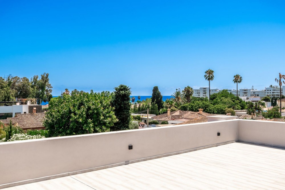- Situated in the coveted San Pedro de Alcántara beachside area in Marbella, this newly built contemporary residence offers an exceptional blend of modern design, privacy, and coastal living. Its south-facing orientation ensures bright interiors throughout the year, while the neighbourhood provides immediate access to the promenade, restaurants, sports clubs, and the vibrant charm of San Pedro. Overview of the Home 5 Bedrooms | 5.5 Bathrooms | 450 m² Interior | 220 m² Terraces | 610 m² Plot Spread across three levels, this modern home is designed to maximize natural light, comfort, and seamless indoor–outdoor living. High-quality finishes, spacious suites, and thoughtfully planned living spaces make it ideal for year-round enjoyment. Main Floor – Elegant Everyday Living The main level serves as the heart of the home, offering 122 m² of bright, open-plan living complemented by 124 m² of generous terraces. A contemporary open living and dining area designed for natural flow and comfort Fully equipped premium kitchen with a separate pantry Floor-to-ceiling sliding glass doors that open the entire space to the terrace and garden Stylish guest bedroom with an adjacent bathroom Elegant guest toilet Direct access to the parking area A sculptural staircase leading to the upper floor This level is defined by light, spaciousness, and effortless connection to the outdoors. First Floor – Private Bedroom Suites The first floor offers 90 m² of tranquil private living, featuring two beautifully appointed bedroom suites: A main suite with a luxurious dressing area and a bathroom finished with refined materials A second en-suite bedroom with spacious wardrobes Both bedrooms open onto a stunning 77 m² terrace, accessed through expansive floor-to-ceiling glass doors Abundant sunlight and serene open views create an atmosphere of quiet relaxation This level is designed for comfort, privacy, and stylish indoor-outdoor living. Garden Level – Versatile Living & Wellness Spaces The garden level provides 239 m² of flexible living areas, perfect for entertainment, wellness, or multi-generational living. Bright lounge and dining area connected to an open kitchen Direct access to a charming patio that flows into the garden and pool area A spacious suite with its own sitting area, dressing room, and elegant bathroom A second en-suite bedroom with ample wardrobe space A large open space ideal for a gym, spa area, cinema room, games room, or studio This floor adapts effortlessly to personal lifestyle needs. Outdoor Spaces – Sun, Privacy & Mediterranean Living Designed for year-round enjoyment, the outdoor areas enhance the home’s warm, modern atmosphere: Landscaped Mediterranean garden with a private swimming pool Multiple sun-drenched terraces ideal for dining, lounging, and entertaining Fluid transition between indoor living areas and garden spaces South-facing orientation for maximum light and warmth The outdoor layout completes the home’s contemporary architecture and offers a peaceful retreat just minutes from the sea.