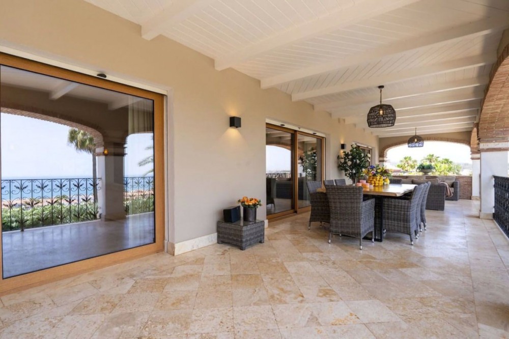 - Do you dream of ultimate luxury on the Costa del Sol? Seize this opportunity now! Welcome to your personal paradise in La Cala de Mijas. This breathtaking, fully renovated villa is not just a house; it is a masterpiece of design, comfort and pure indulgence. Located just a 10-minute walk from the bustling heart of La Cala, a life of sun, sea and unparalleled luxury awaits you here. An entrance that surpasses all expectations. Leave the world behind and step into an oasis of tranquillity. An impressive wooden gate, a serene front garden with a fountain and a majestic hall with a towering ceiling and a magnificent chandelier welcome you. The first thing you see? A panoramic, uninterrupted view of the Mediterranean Sea that takes your breath away. This is coming home. Life without boundaries The light, spacious living room flows seamlessly into a terrace that spans the entire width of the villa. Here, the boundary between indoors and outdoors fades away, and the spectacular sea view becomes your daily painting. The state-of-the-art open kitchen, equipped with high-quality Siemens appliances and a generous cooking island, is the beating heart of the house – a dream for every bon vivant and host. Your own five-star resort This villa is designed for an extraordinary lifestyle. The basement is an entertainment paradise that is second to none: • Your own private bar: Complete with beer tap and coolers, ready for unforgettable evenings. • Heated indoor pool & gym: Stay fit and relaxed all year round. • Separate studio: Perfect for guests or staff, with its own kitchen and entrance. • Garage for 3 cars: Space and security for your fleet. Outside, a beautifully landscaped garden with a stunning saltwater swimming pool awaits. Surrounded by fruit trees and illuminated by atmospheric lighting, this is the perfect place to enjoy the long Spanish summer evenings. Uncompromising perfection in every detail Over the past two years, this villa has been transformed with unprecedented precision. Everything is new, from the plumbing and electrical systems to the seven new sliding doors and electric shutters. Enjoy underfloor heating in every room, a state-of-the-art alarm system and a level of finish that you rarely encounter. This is more than a home; it is a unique opportunity to claim a dream life. A villa of this calibre, in this prime location, rarely comes onto the market. Don't wait any longer and let yourself be seduced by the ultimate combination of luxury, comfort and exclusivity.